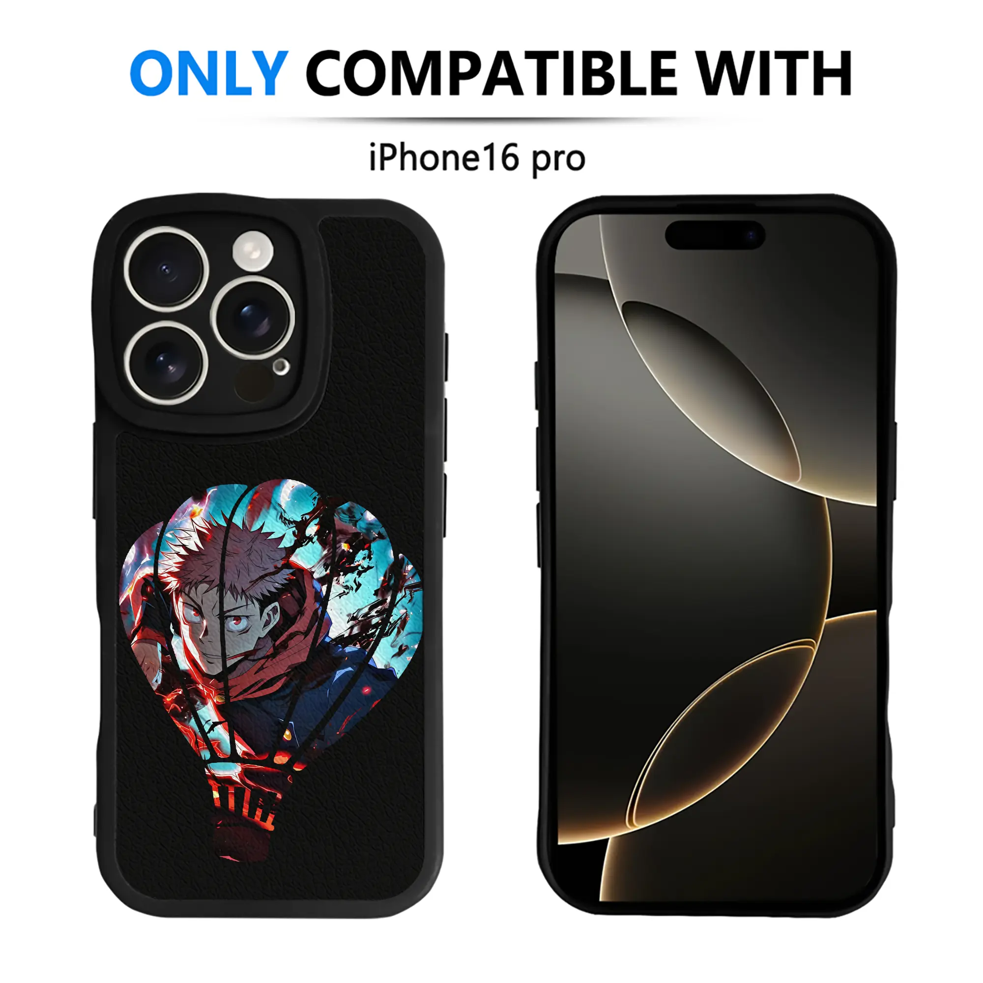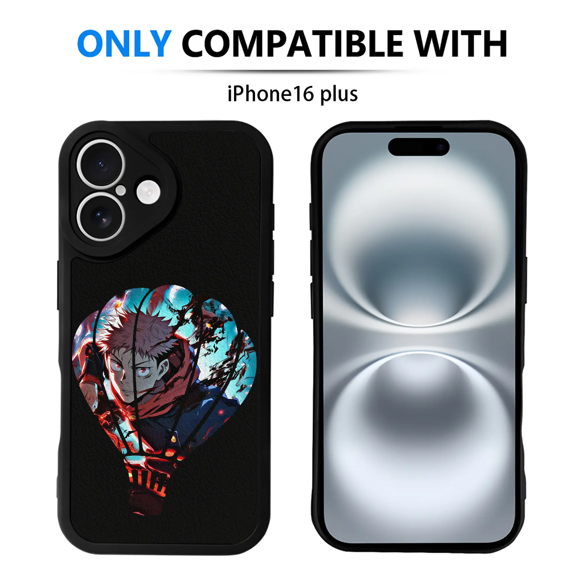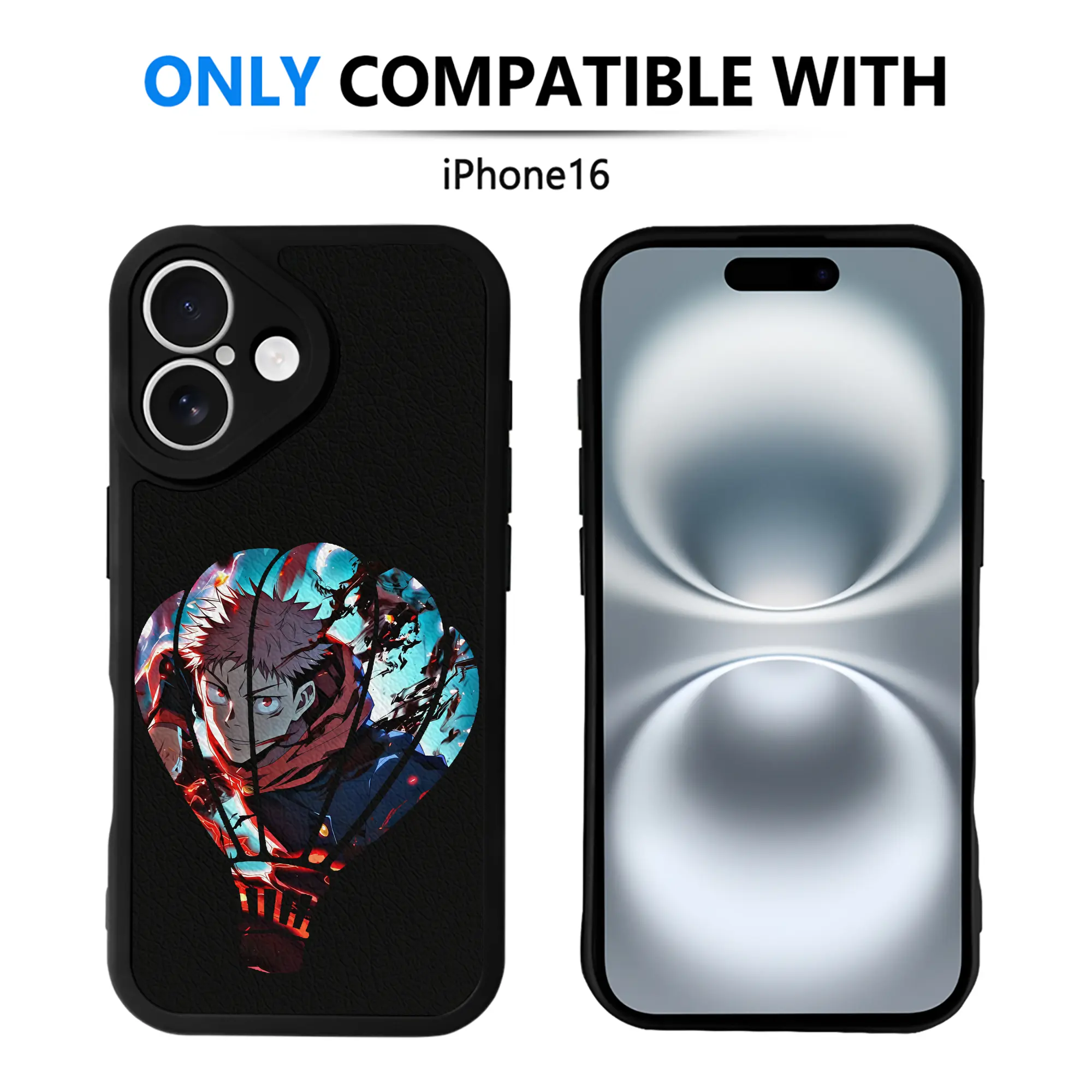 呪術廻戦 グッズ,虎杖 悠仁 - IPhone 16シリーズ対応 ・ シリコンスマホケース ・ レザー調 ・ 高精度フィット ・ 耐衝撃 ・ ワイヤレス充電対応 ・ 精密カット