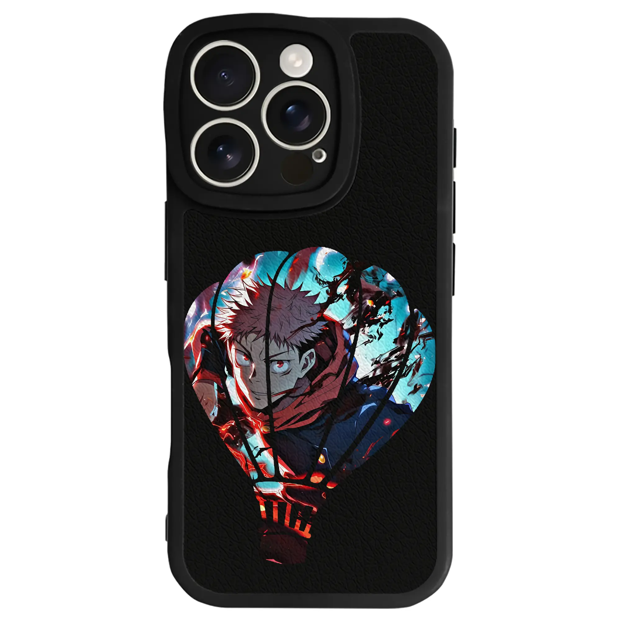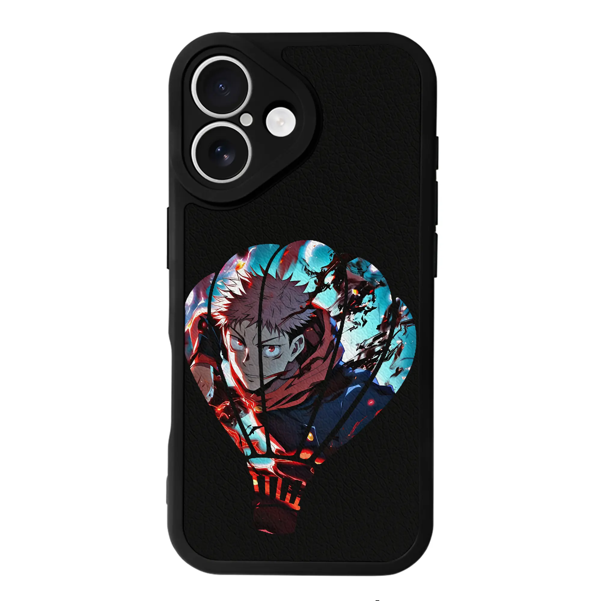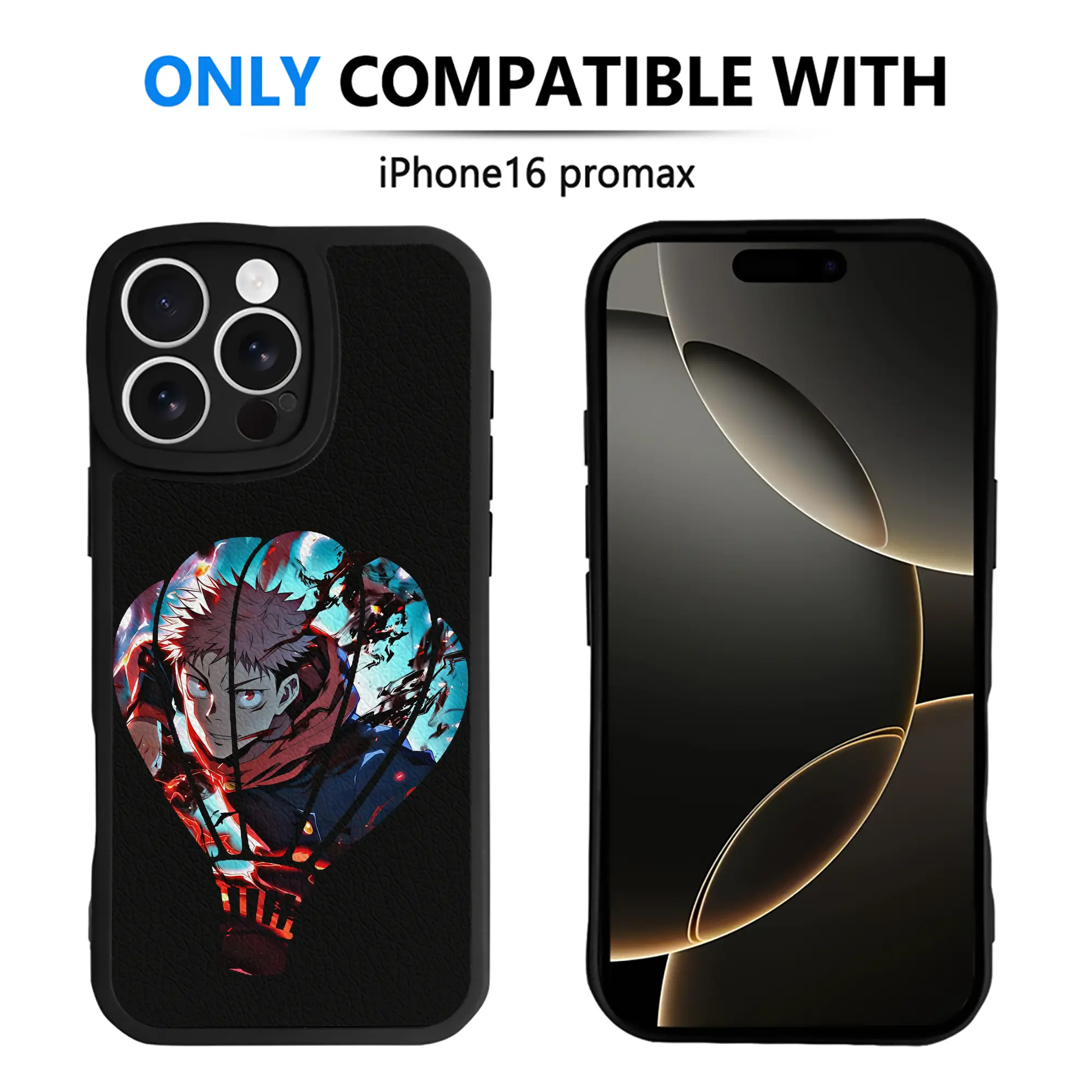 呪術廻戦 グッズ,虎杖 悠仁 - IPhone 16シリーズ対応 ・ シリコンスマホケース ・ レザー調 ・ 高精度フィット ・ 耐衝撃 ・ ワイヤレス充電対応 ・ 精密カット