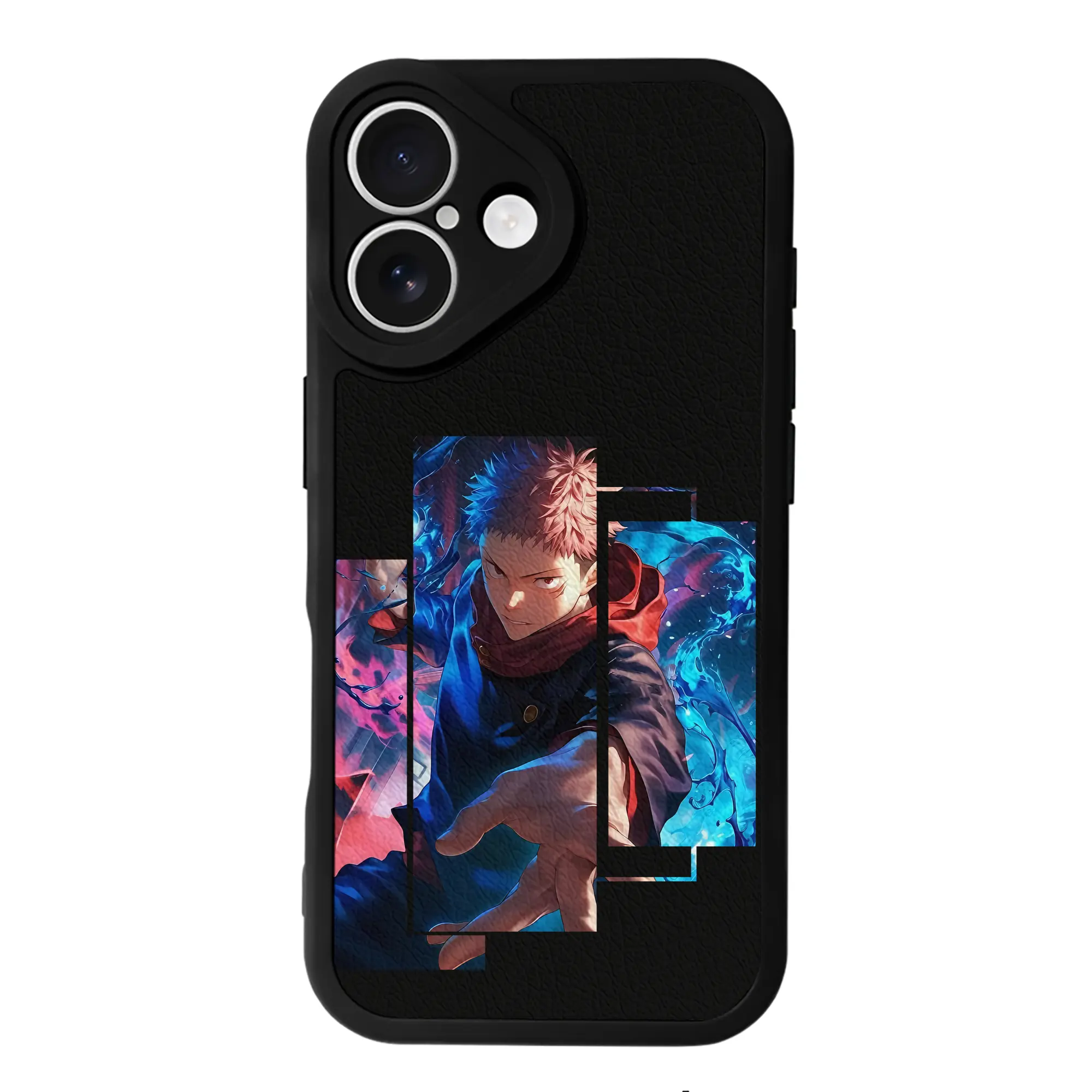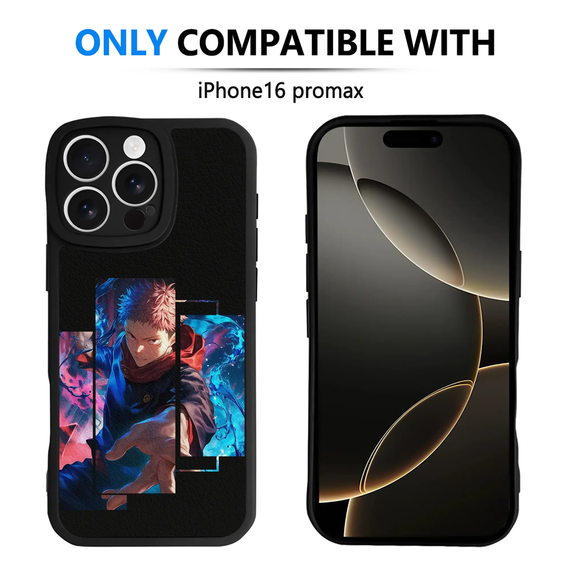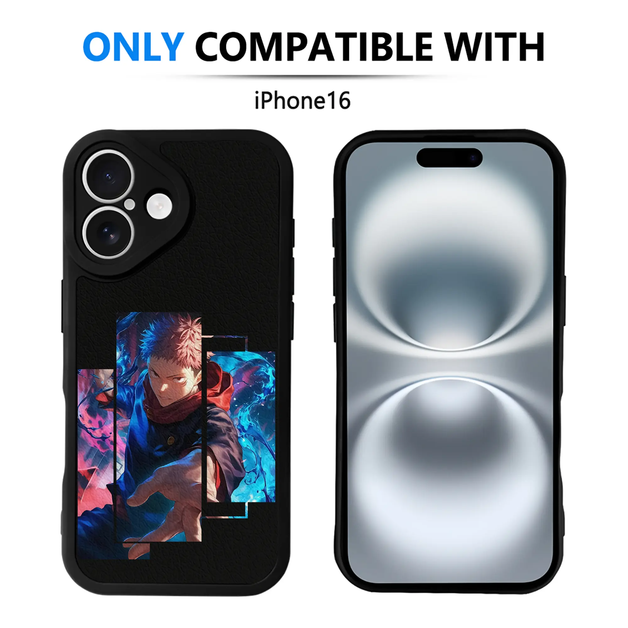 呪術廻戦 グッズ,虎杖 悠仁 - IPhone 16シリーズ対応 ・ シリコンスマホケース ・ レザー調 ・ 高精度フィット ・ 耐衝撃 ・ ワイヤレス充電対応 ・ 精密カット