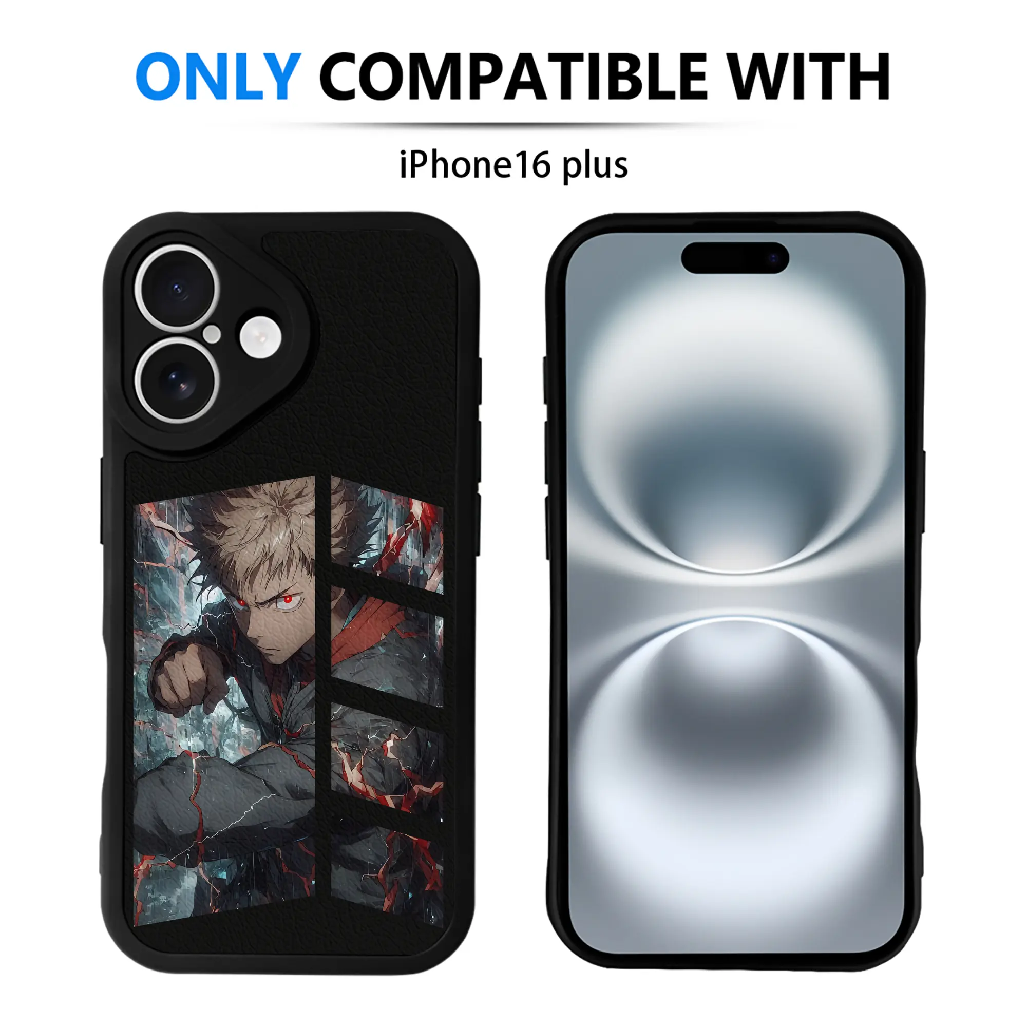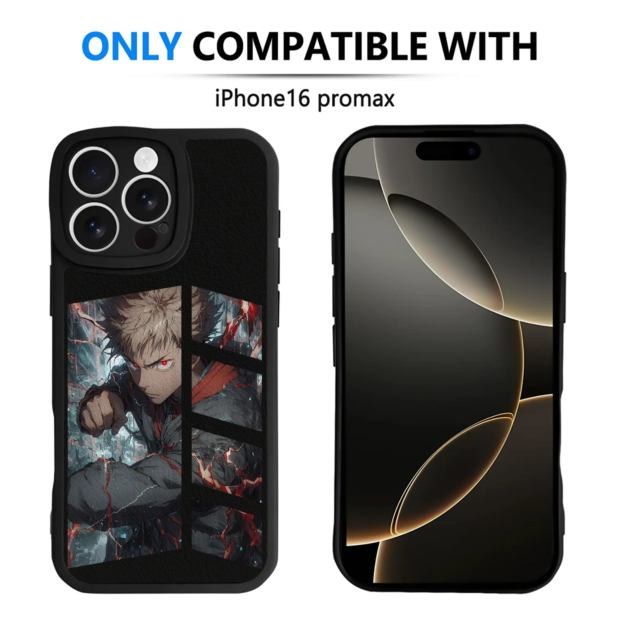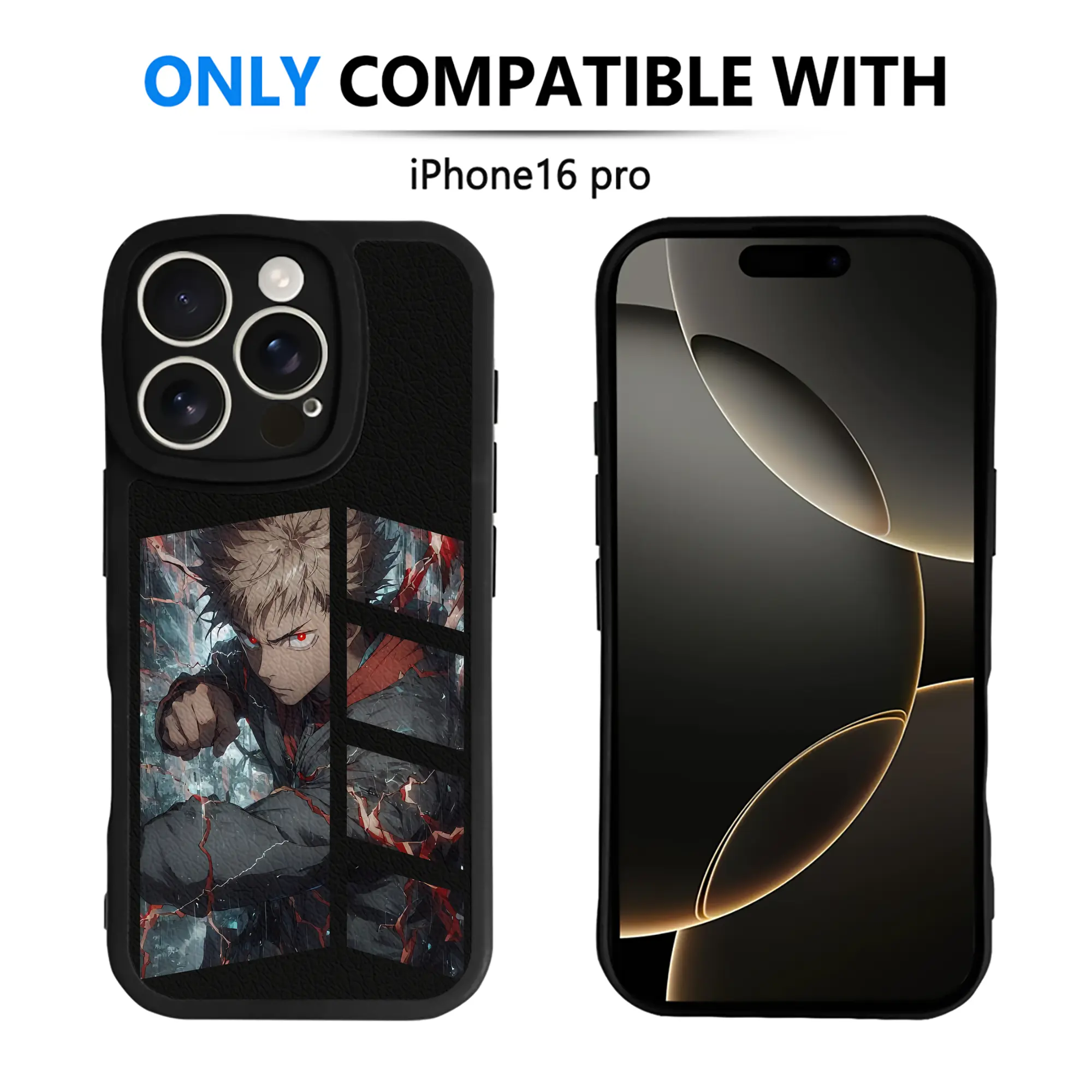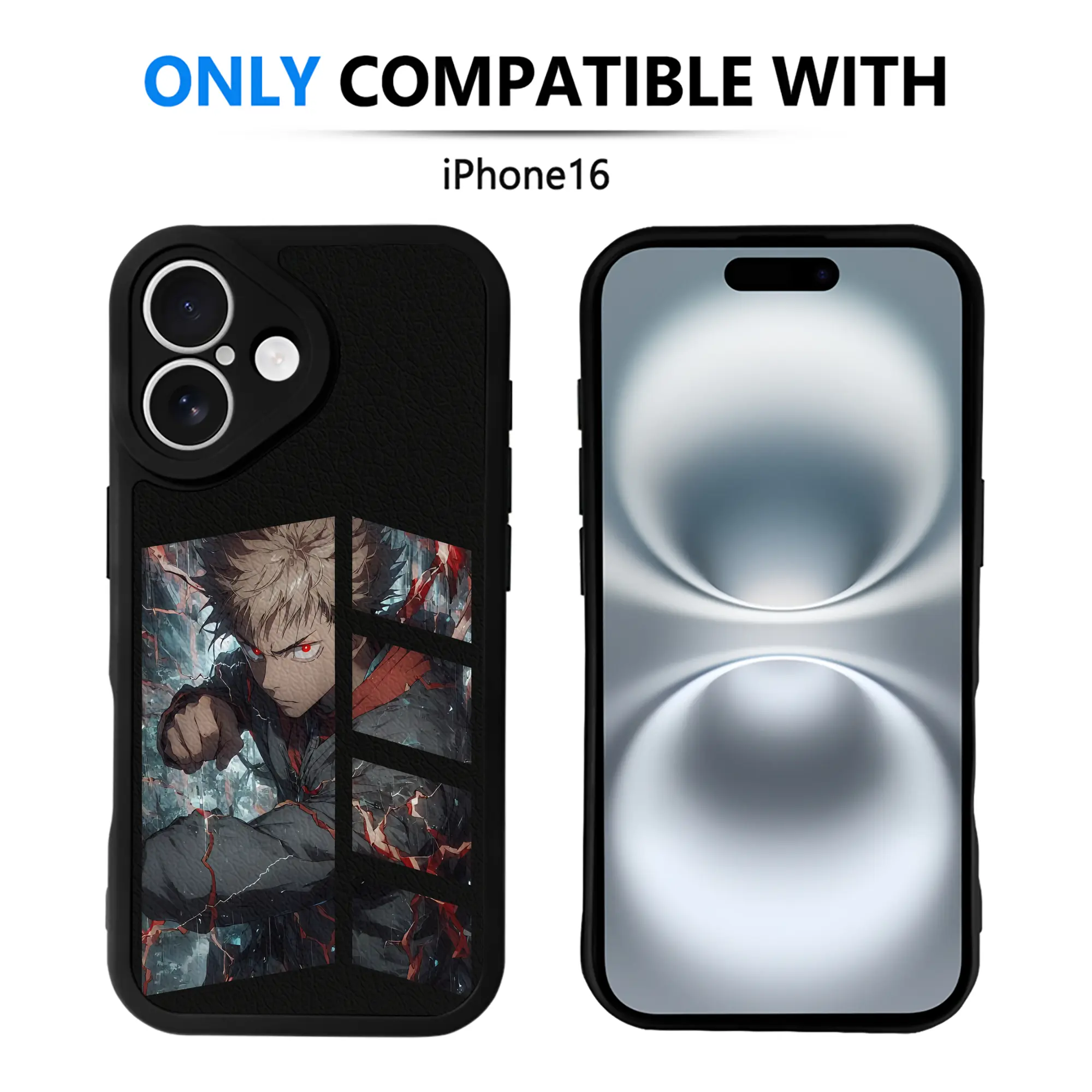呪術廻戦 グッズ,虎杖 悠仁 - IPhone 16シリーズ対応 ・ シリコンスマホケース ・ レザー調 ・ 高精度フィット ・ 耐衝撃 ・ ワイヤレス充電対応 ・ 精密カット