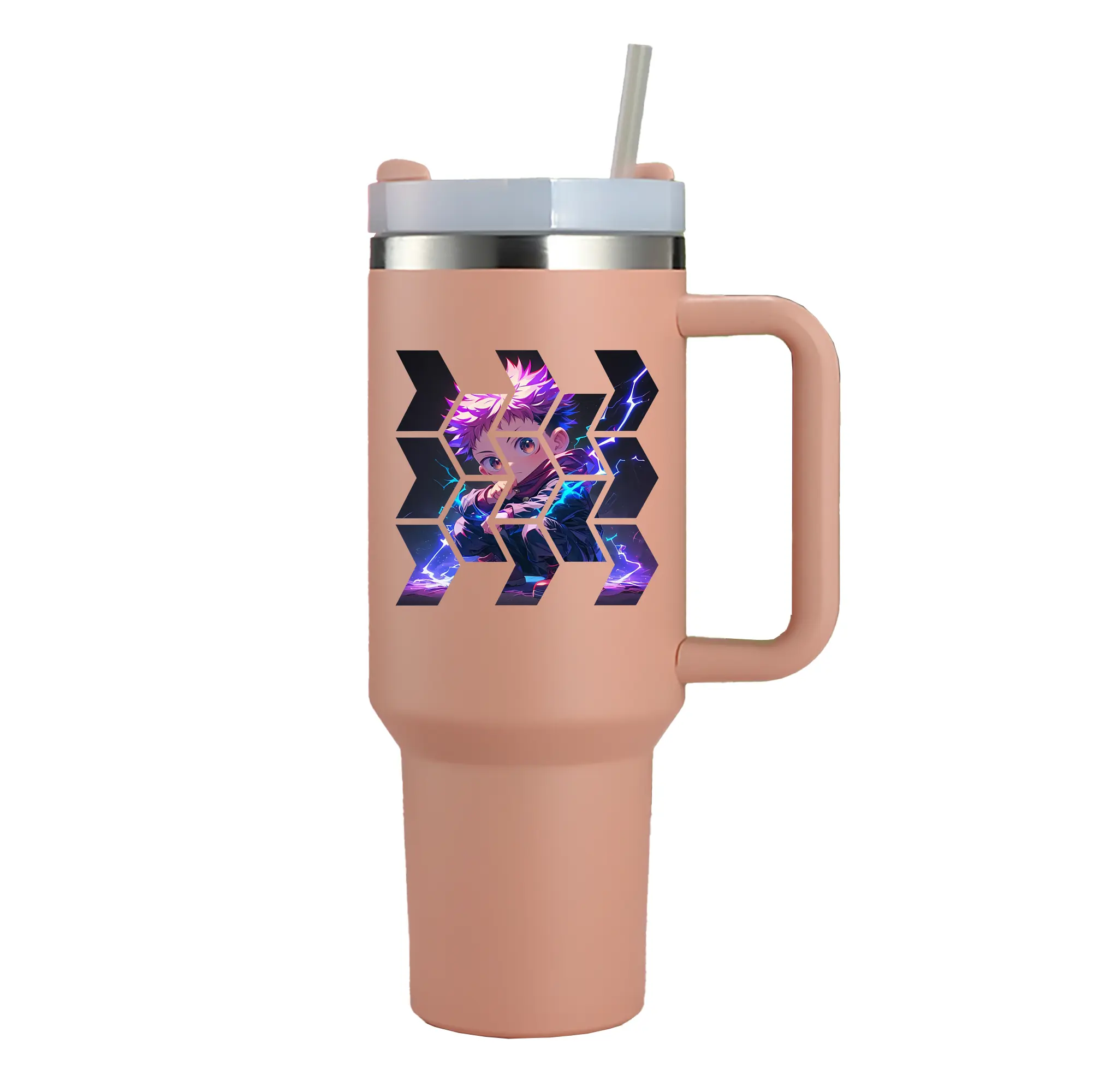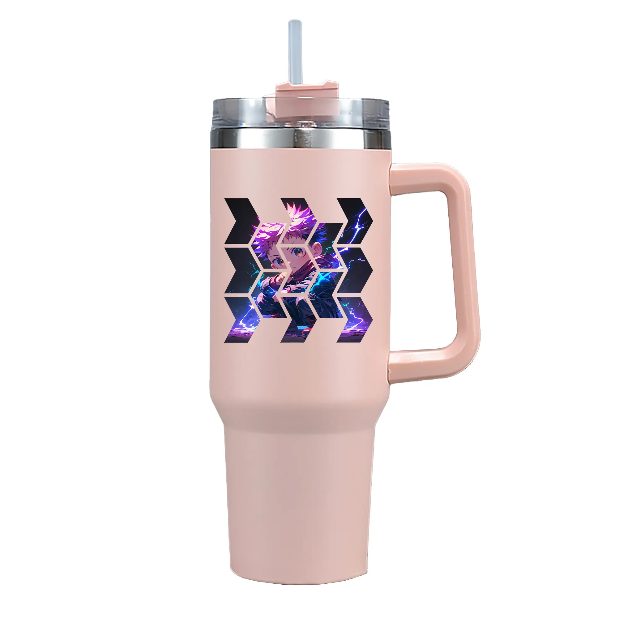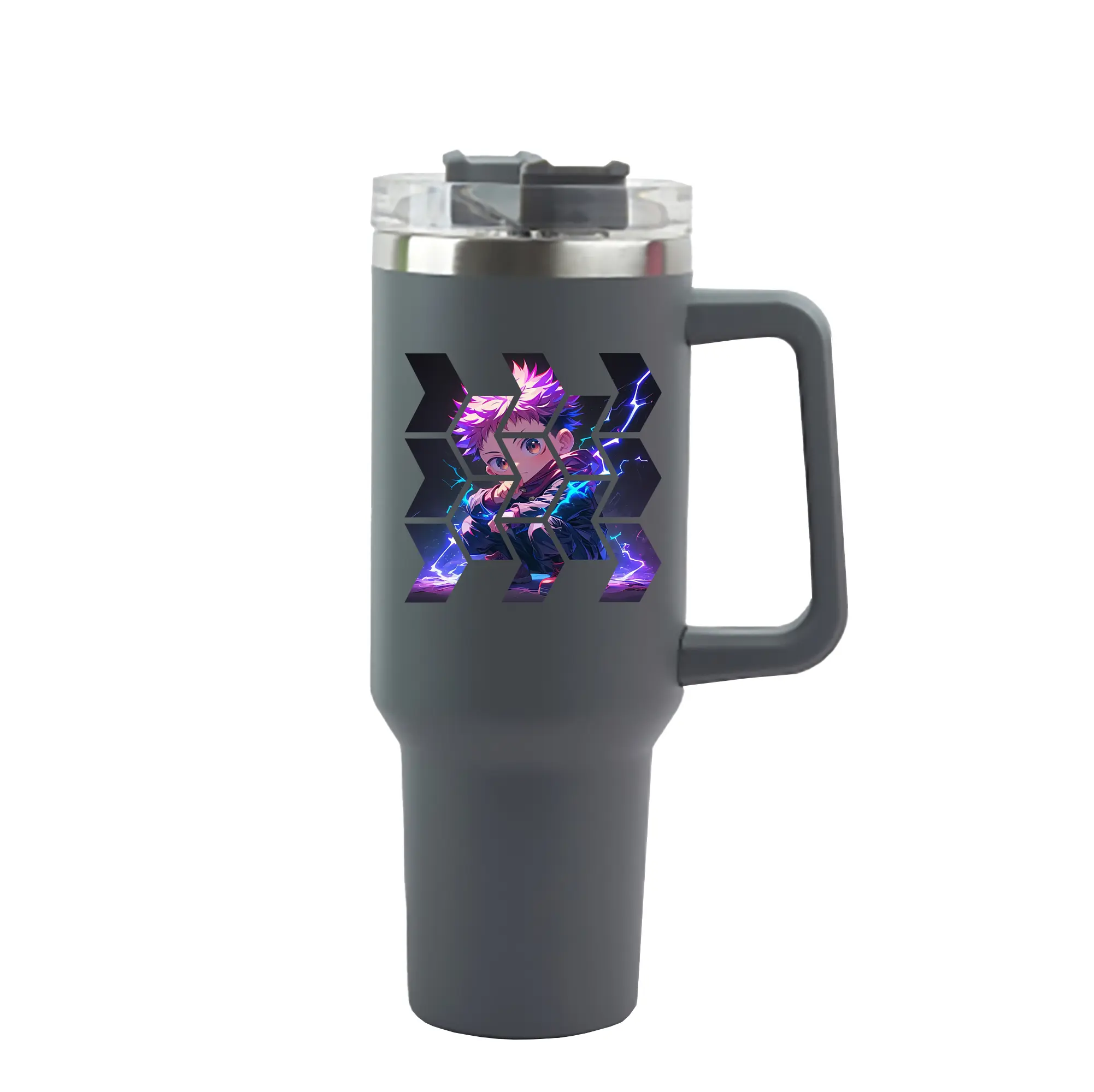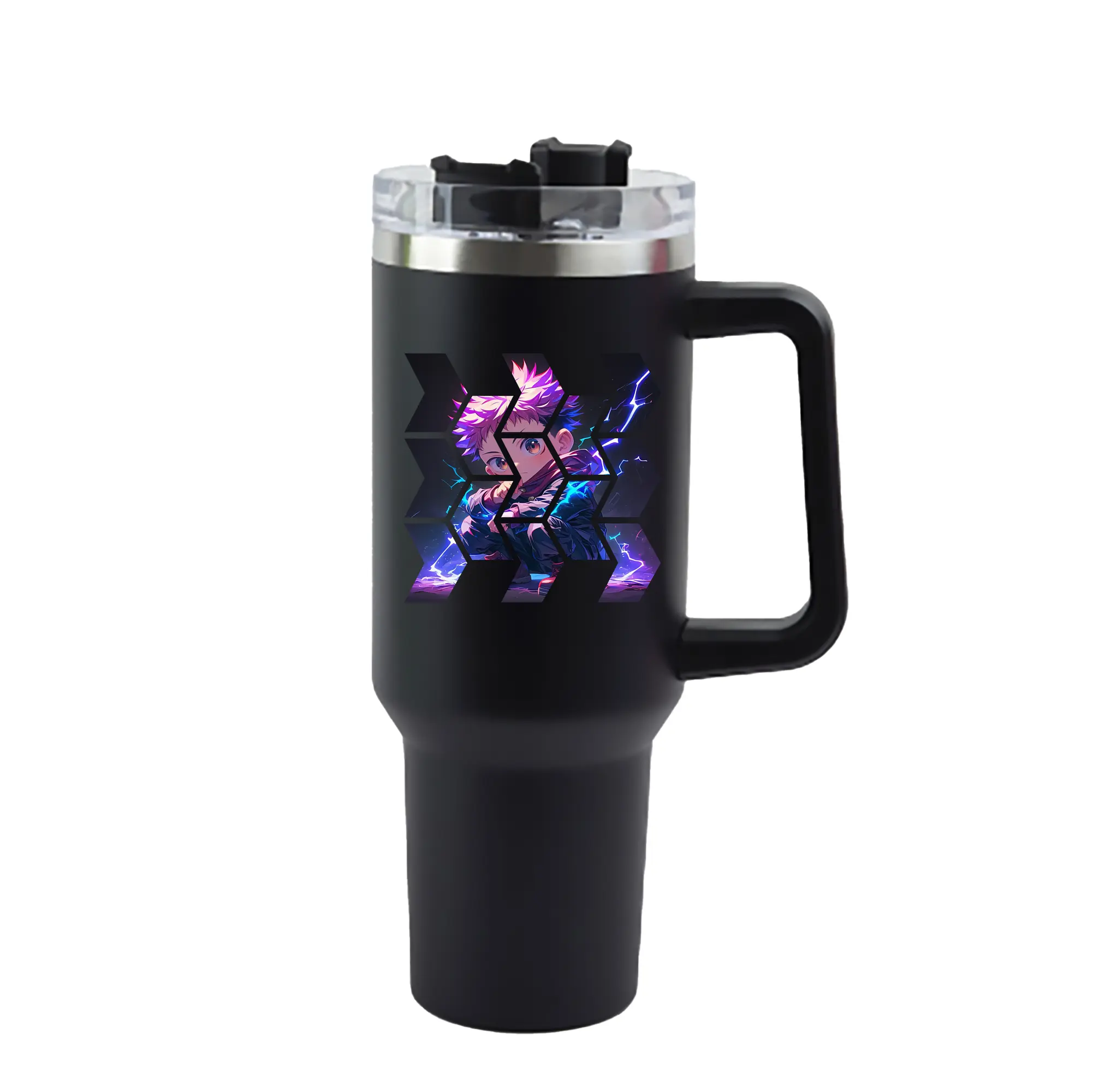 呪術廻戦 グッズ,虎杖 悠仁 - 1200mL 車用タンブラー ・ クリスタルステッカー ・ 304ステンレス 内側 ・ 201ステンレス 外側 ・ 保温 保冷 ・ ハンドル&ストロー付き ・ 通勤 ドライブ アウトドア用