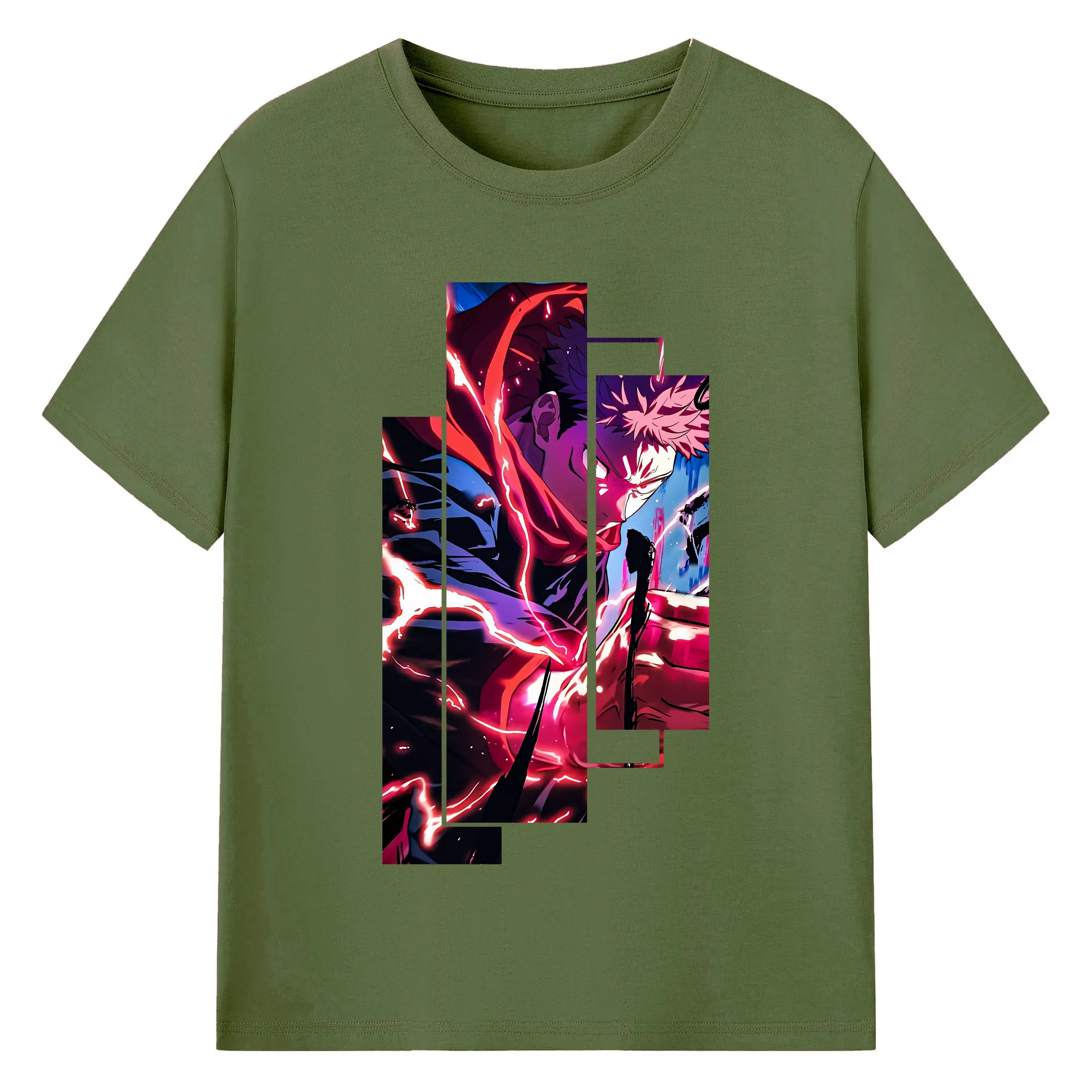 呪術廻戦 グッズ,虎杖 悠仁 - 綿100% 半袖Tシャツ ・ バックプリント ・ 快適 通気性 ・ 日常使い 散歩 スポーツ用