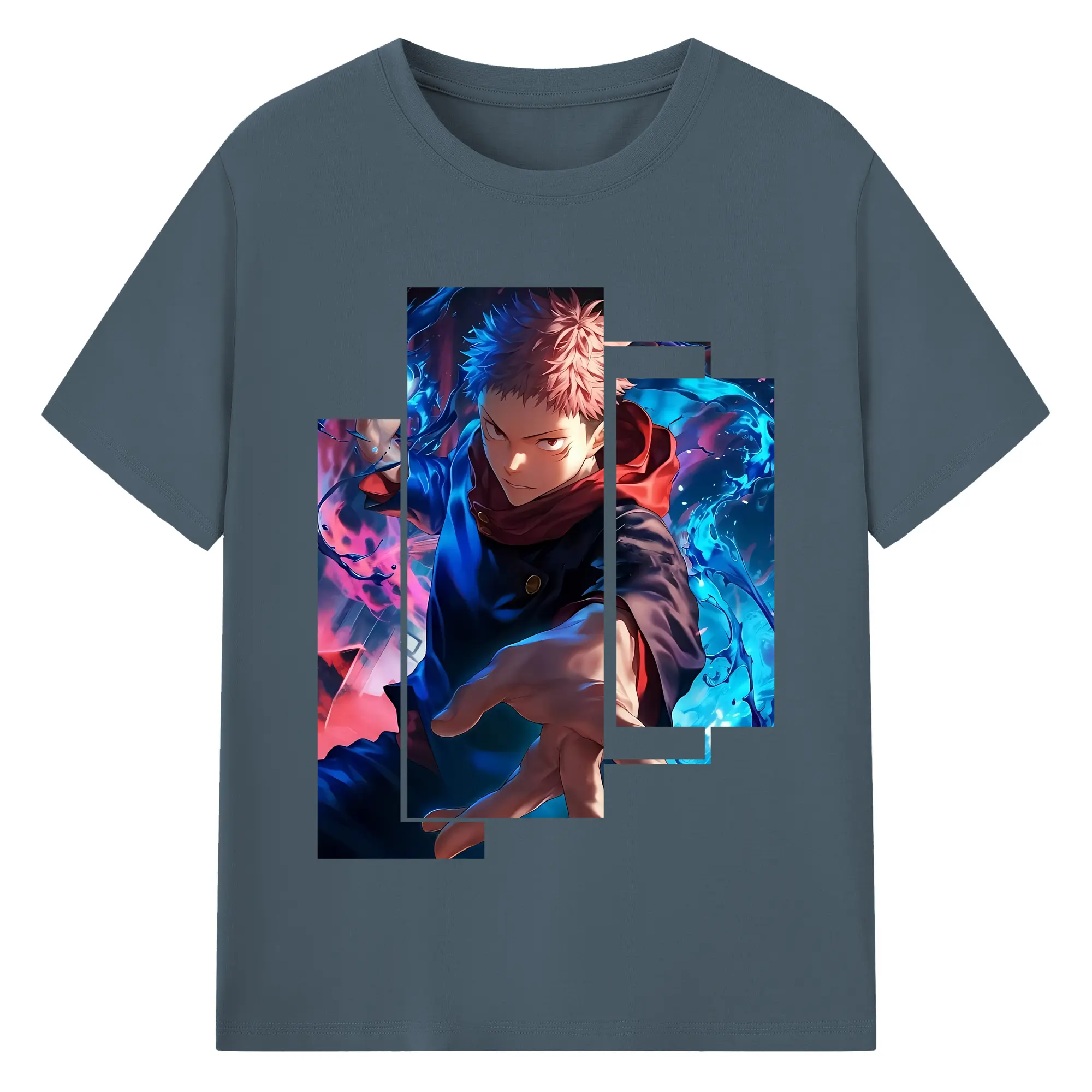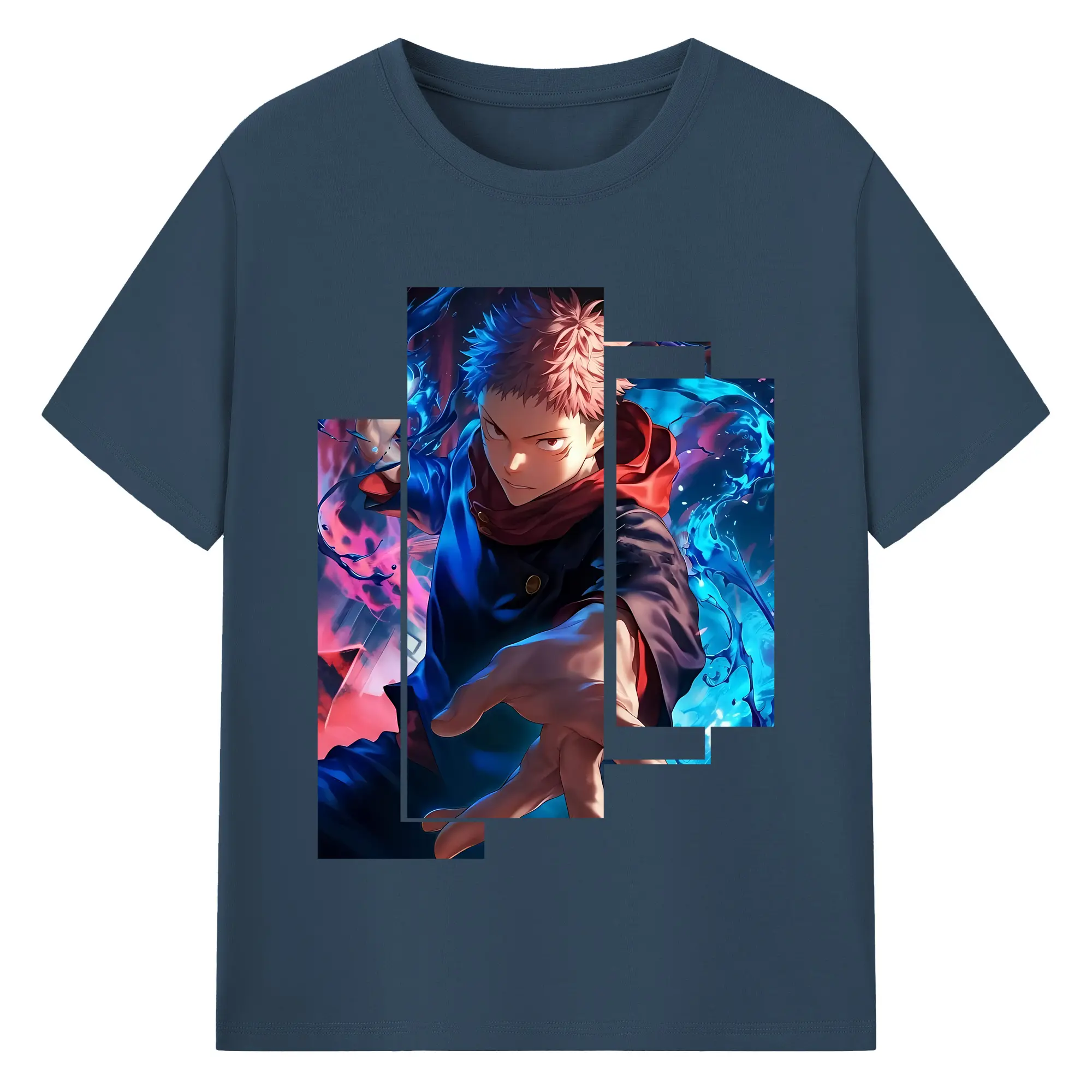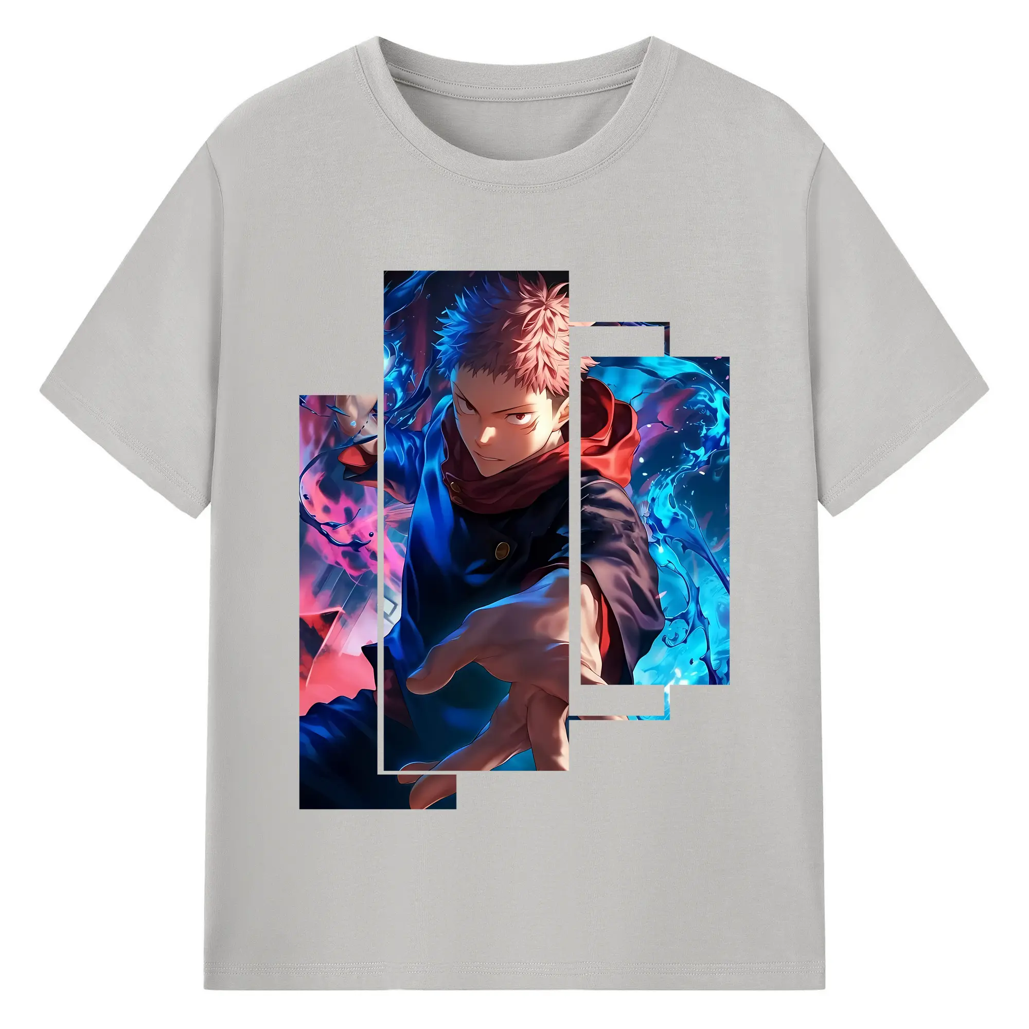 呪術廻戦 グッズ,虎杖 悠仁 - 綿100% 半袖Tシャツ ・ バックプリント ・ 快適 通気性 ・ 日常使い 散歩 スポーツ用