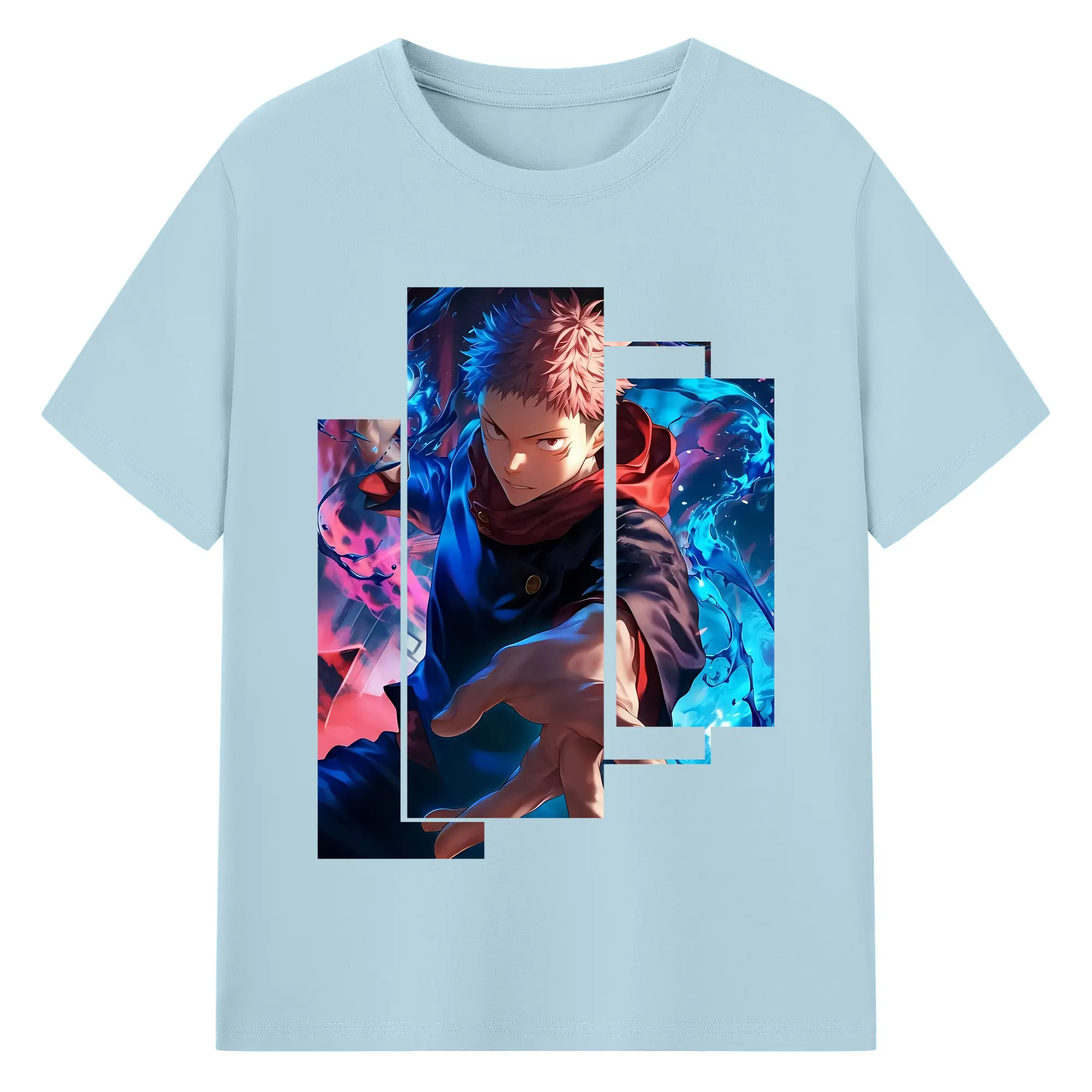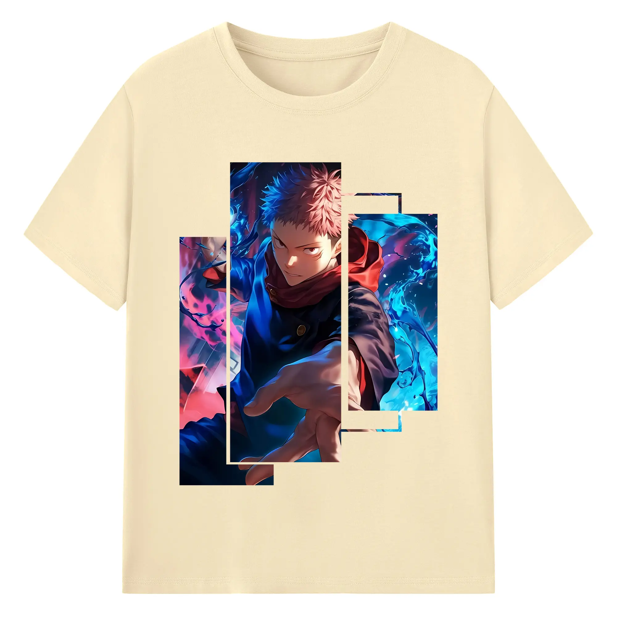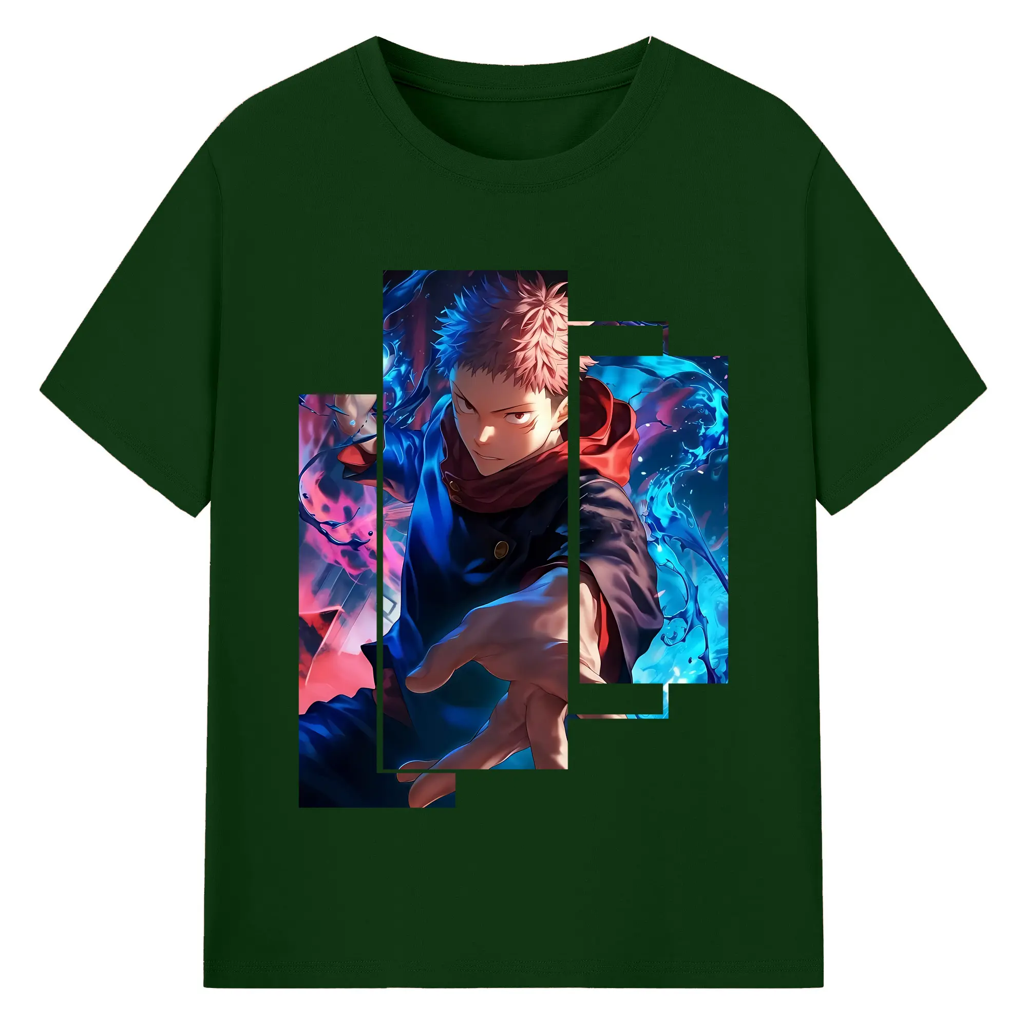 呪術廻戦 グッズ,虎杖 悠仁 - 綿100% 半袖Tシャツ ・ バックプリント ・ 快適 通気性 ・ 日常使い 散歩 スポーツ用