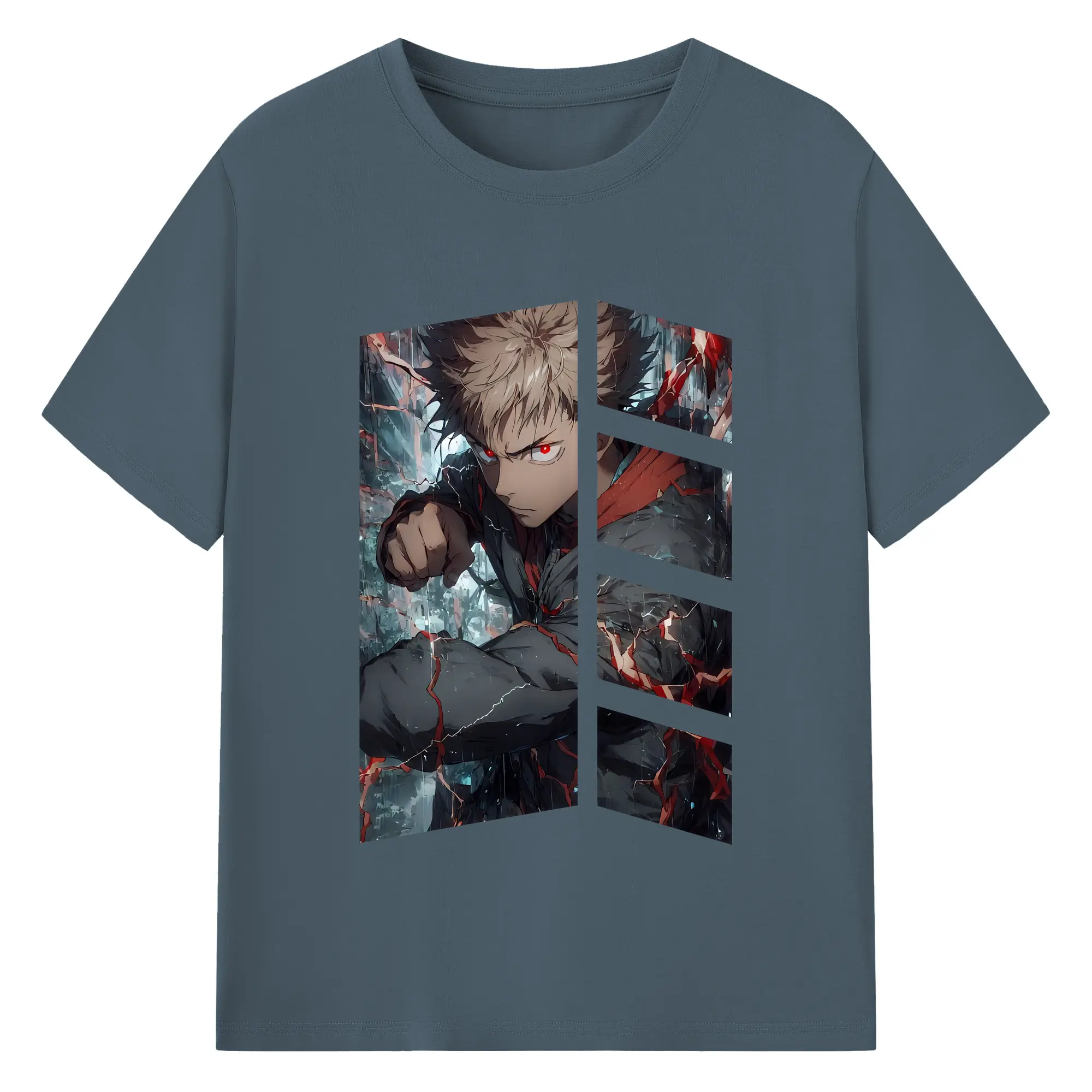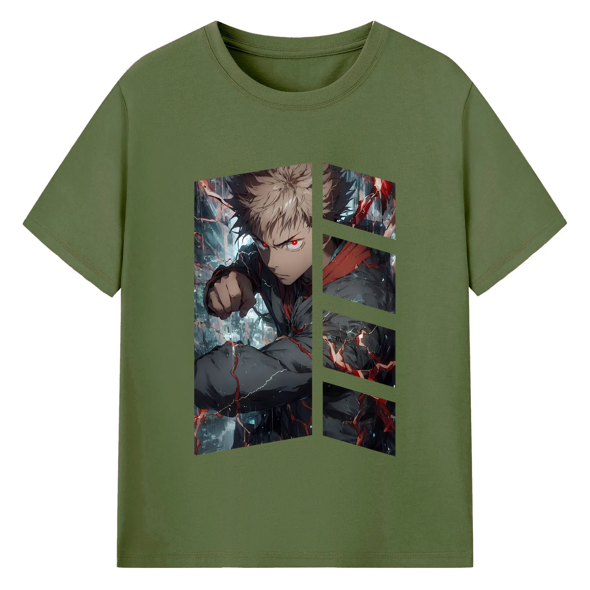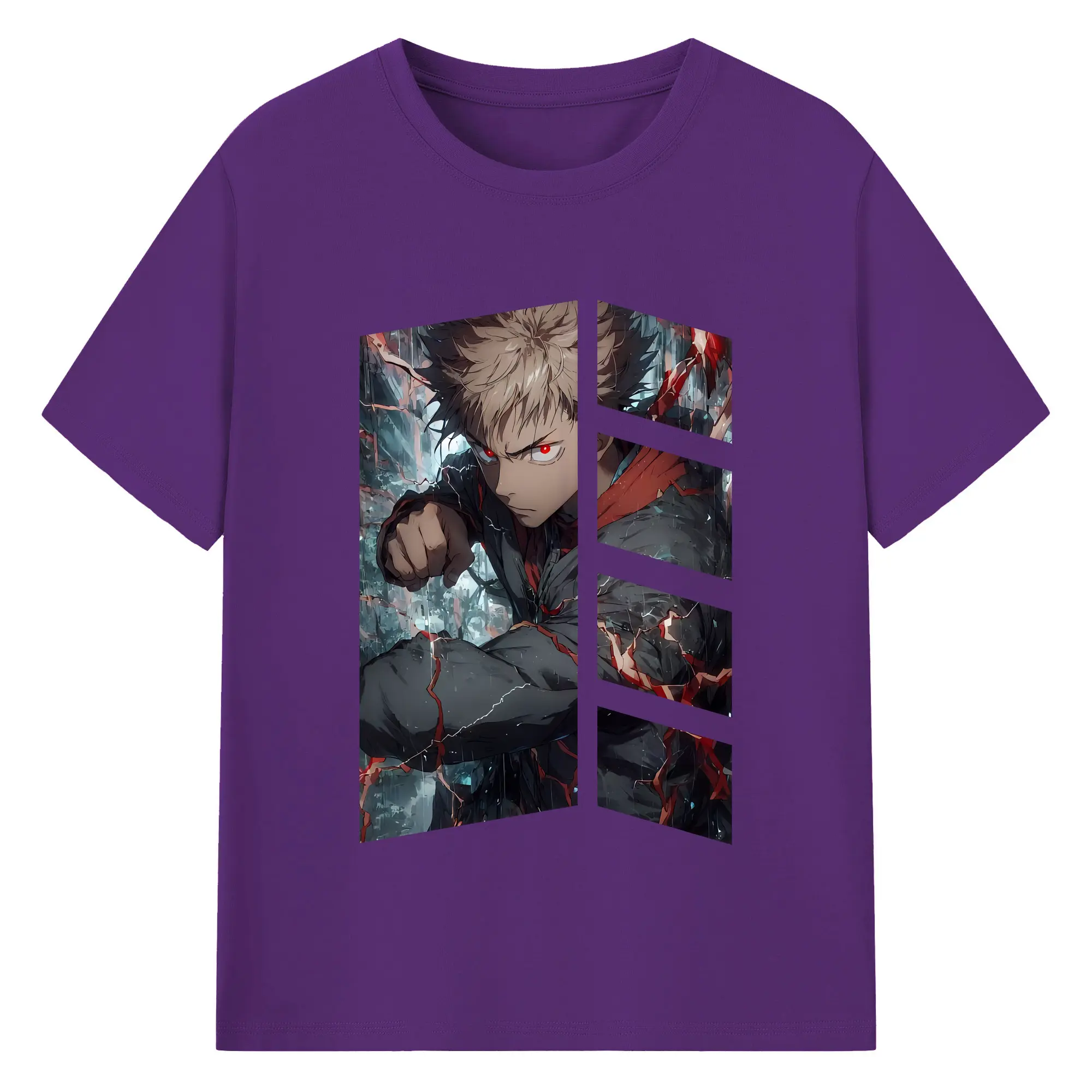 呪術廻戦 グッズ,虎杖 悠仁 - 綿100% 半袖Tシャツ ・ バックプリント ・ 快適 通気性 ・ 日常使い 散歩 スポーツ用