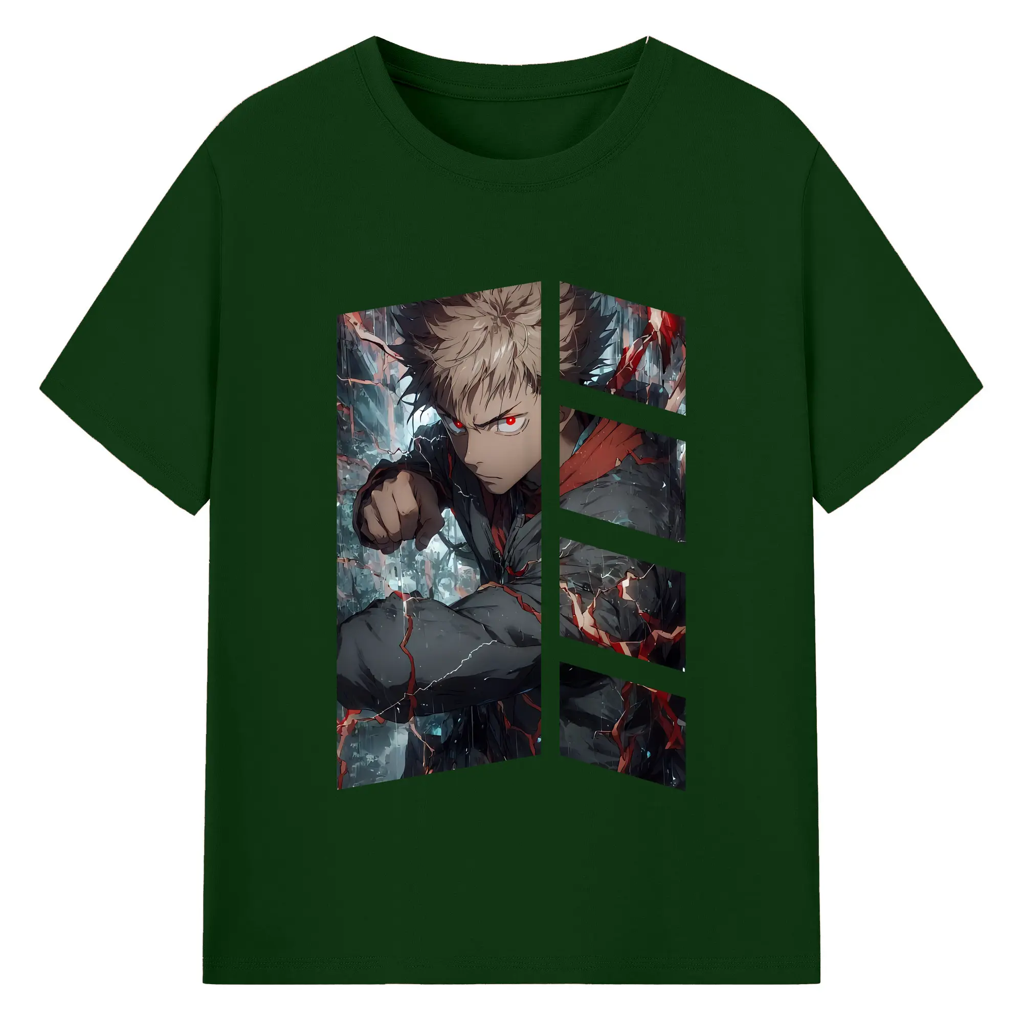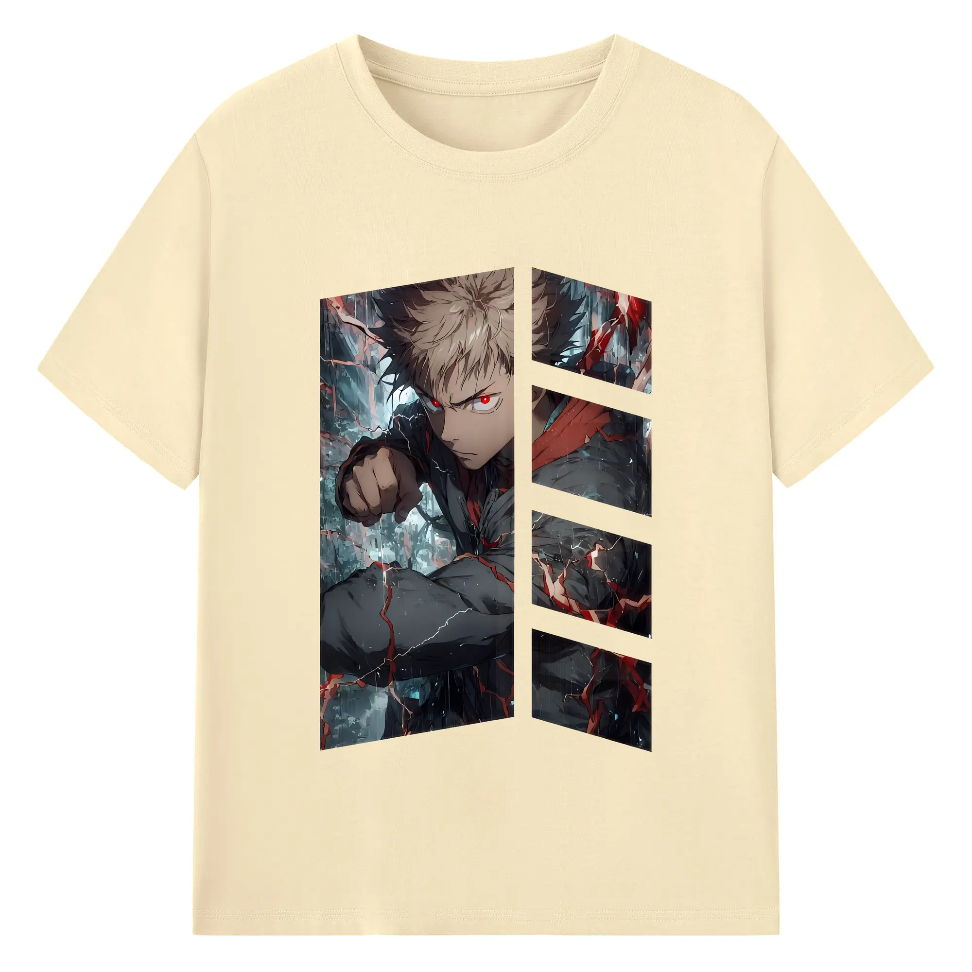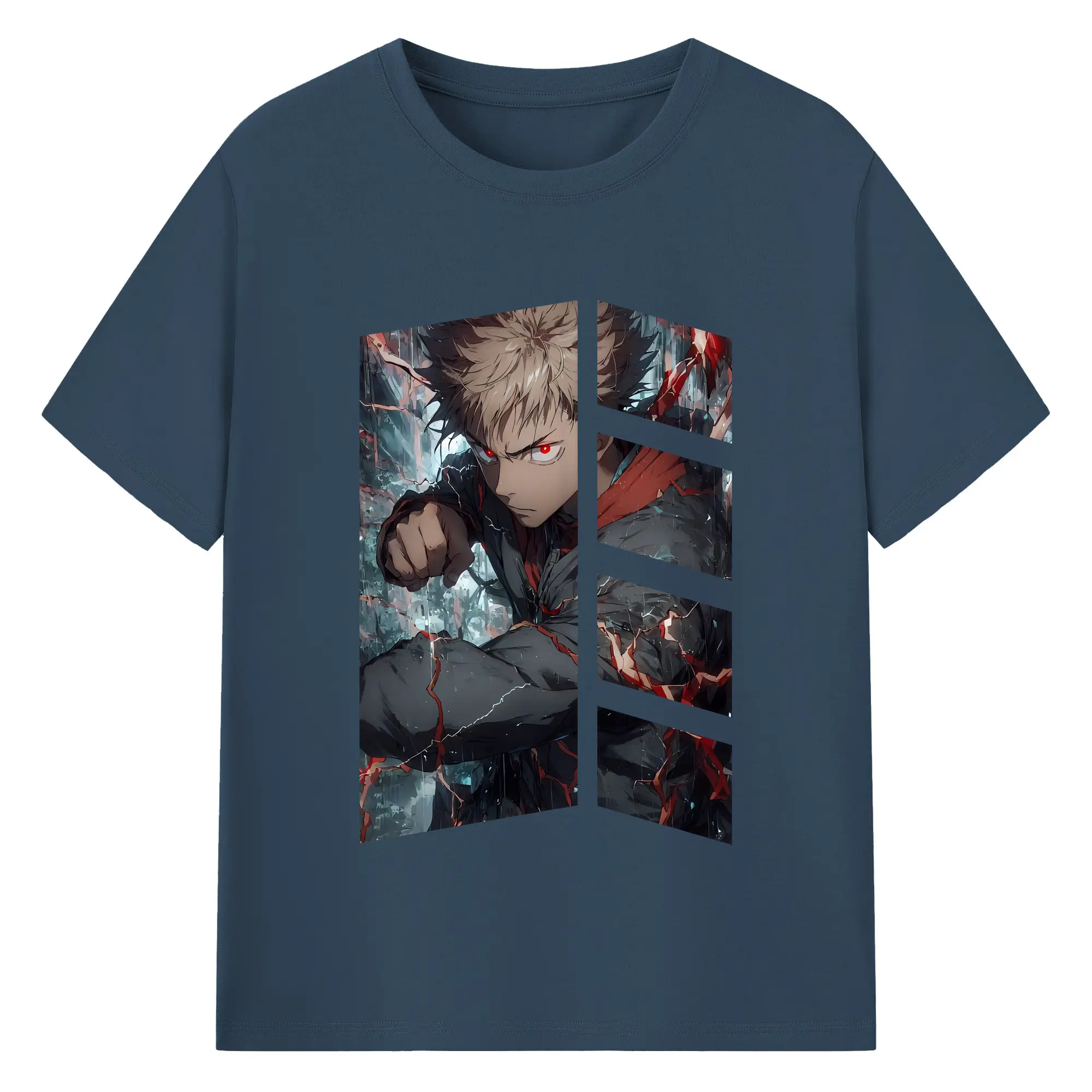 呪術廻戦 グッズ,虎杖 悠仁 - 綿100% 半袖Tシャツ ・ バックプリント ・ 快適 通気性 ・ 日常使い 散歩 スポーツ用