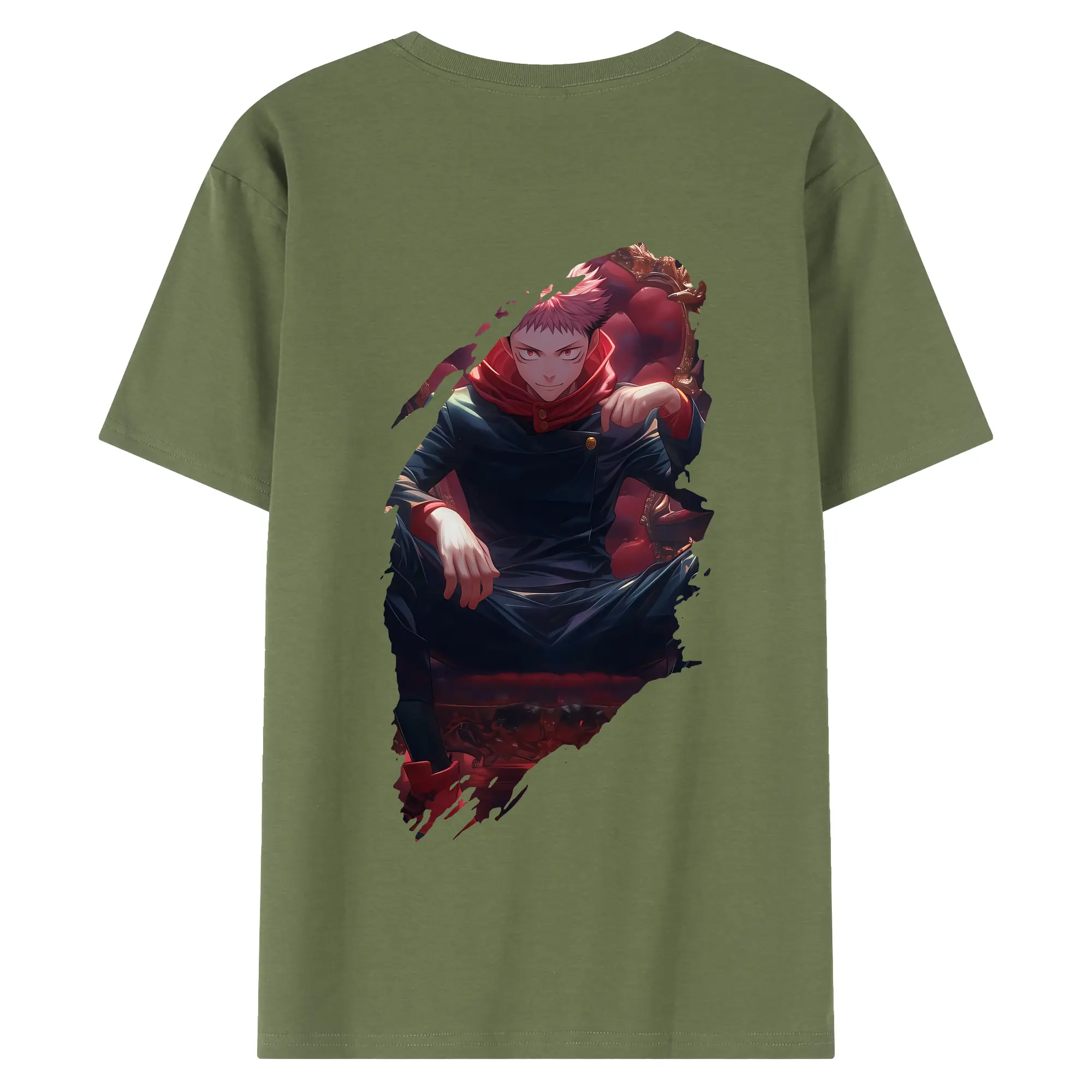 呪術廻戦 グッズ,虎杖 悠仁 - 綿100% 半袖Tシャツ ・ フロントプリント ・ 快適 通気性 ・ 日常使い 散歩 スポーツ用