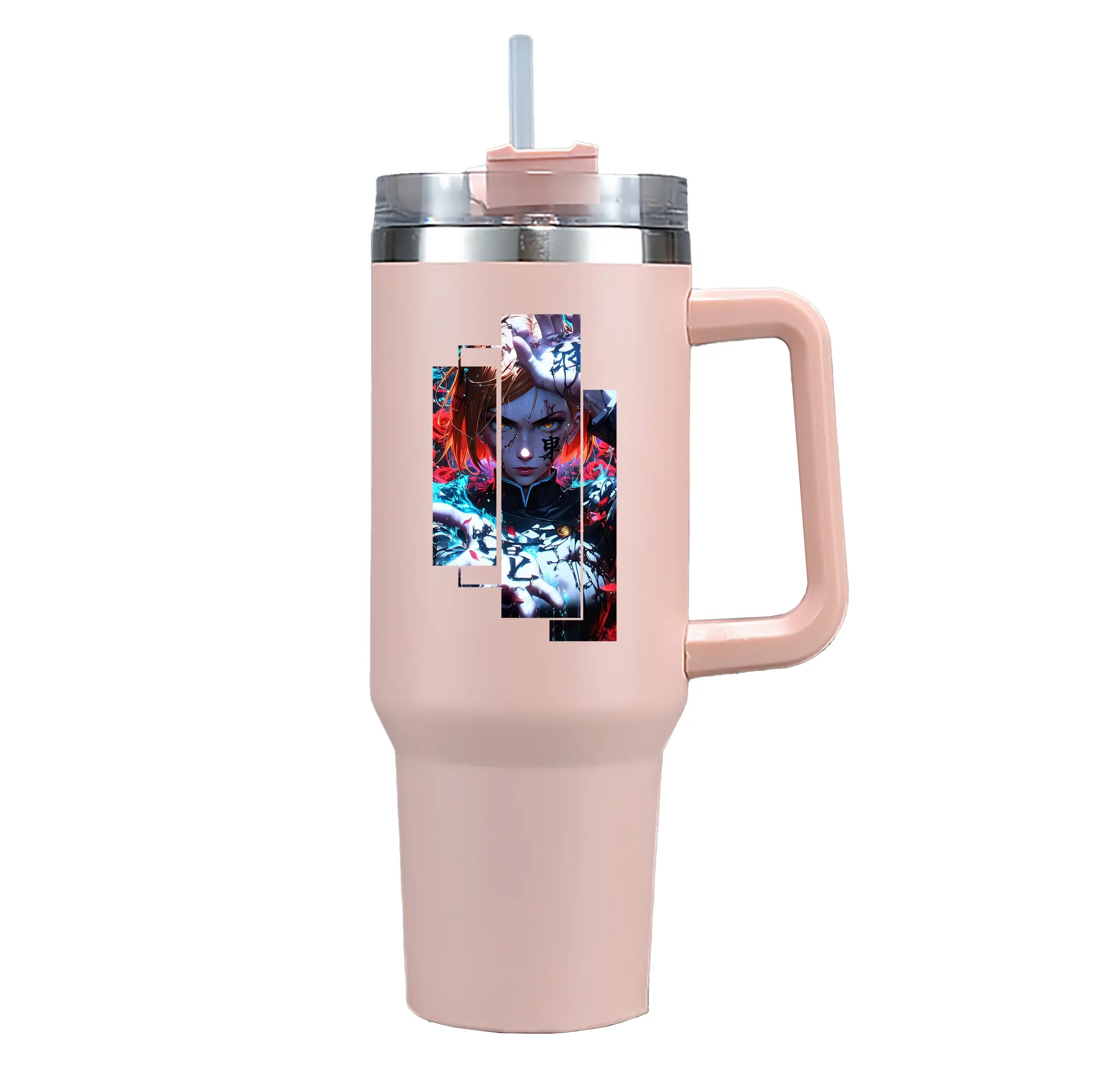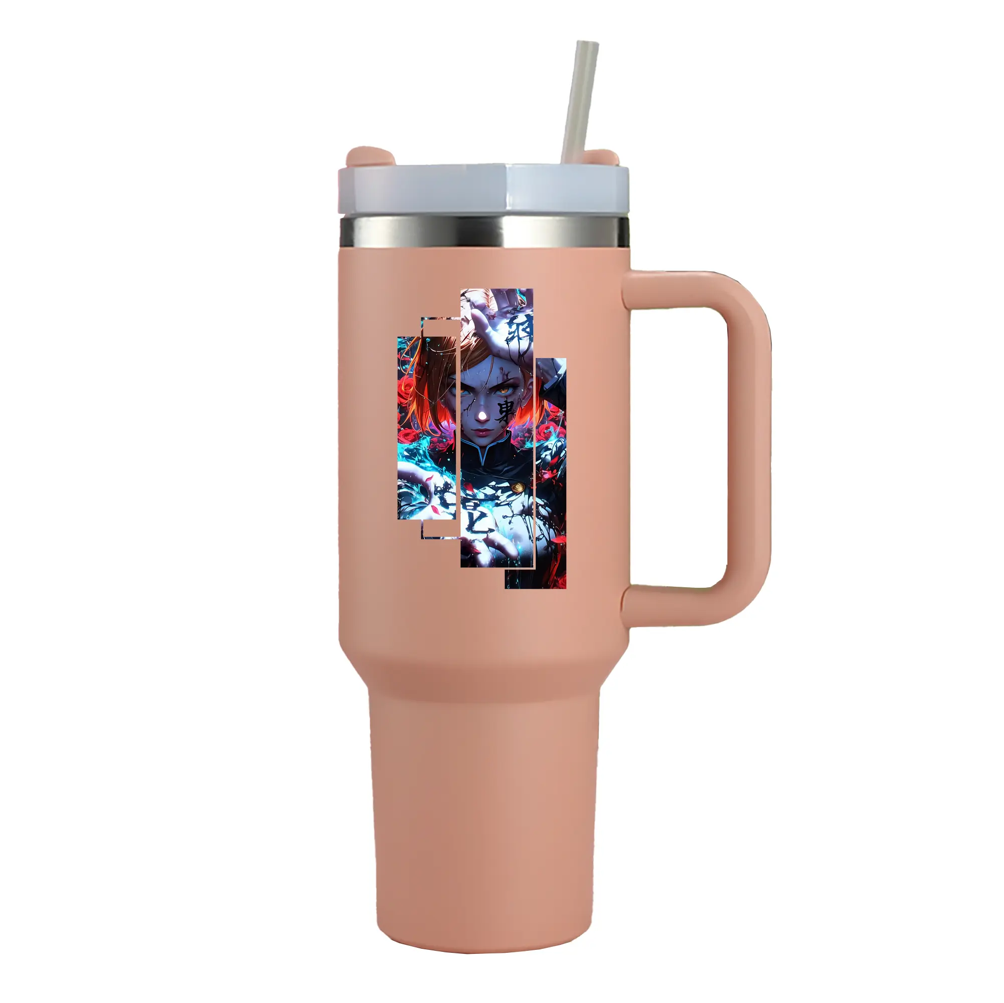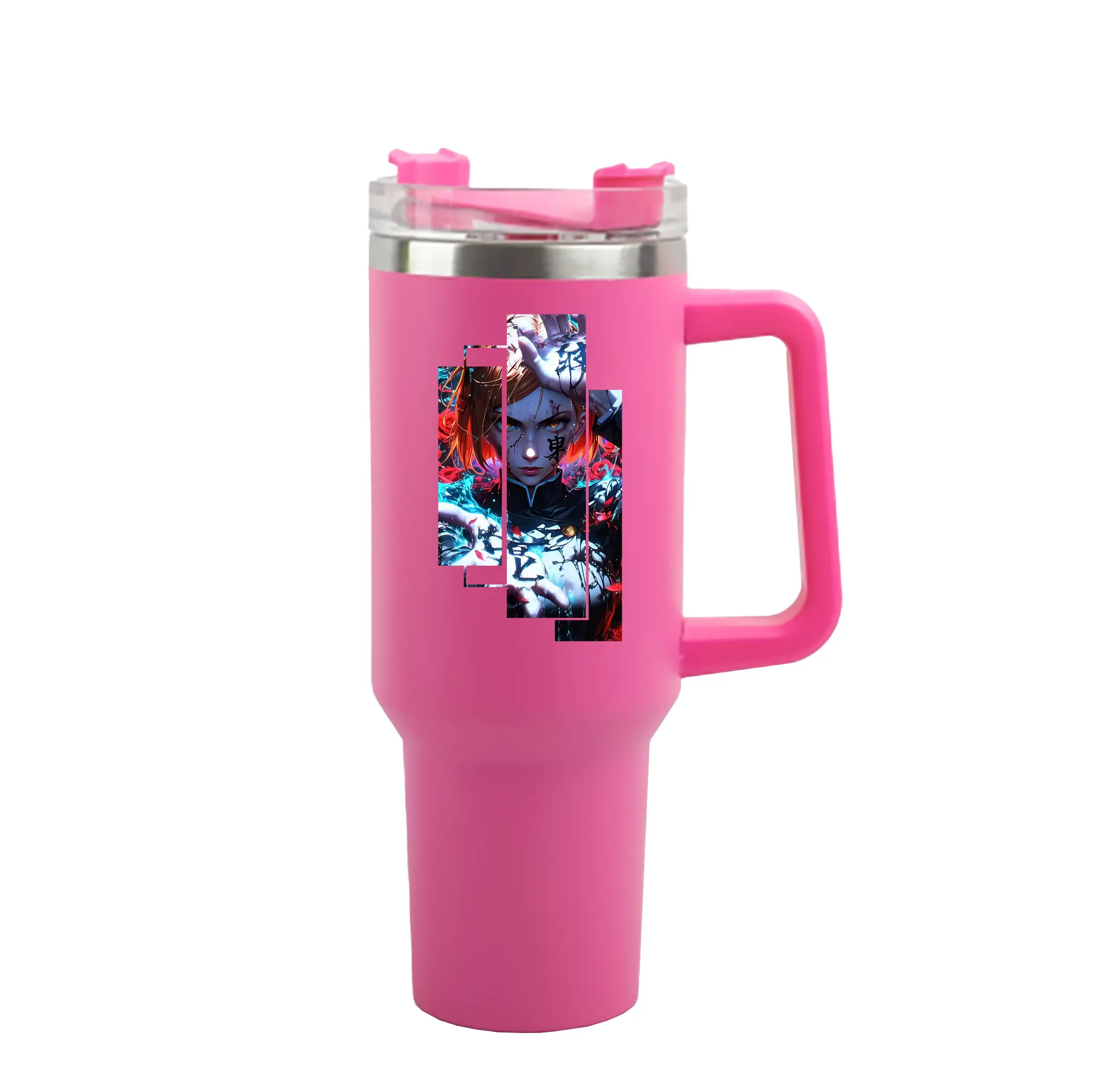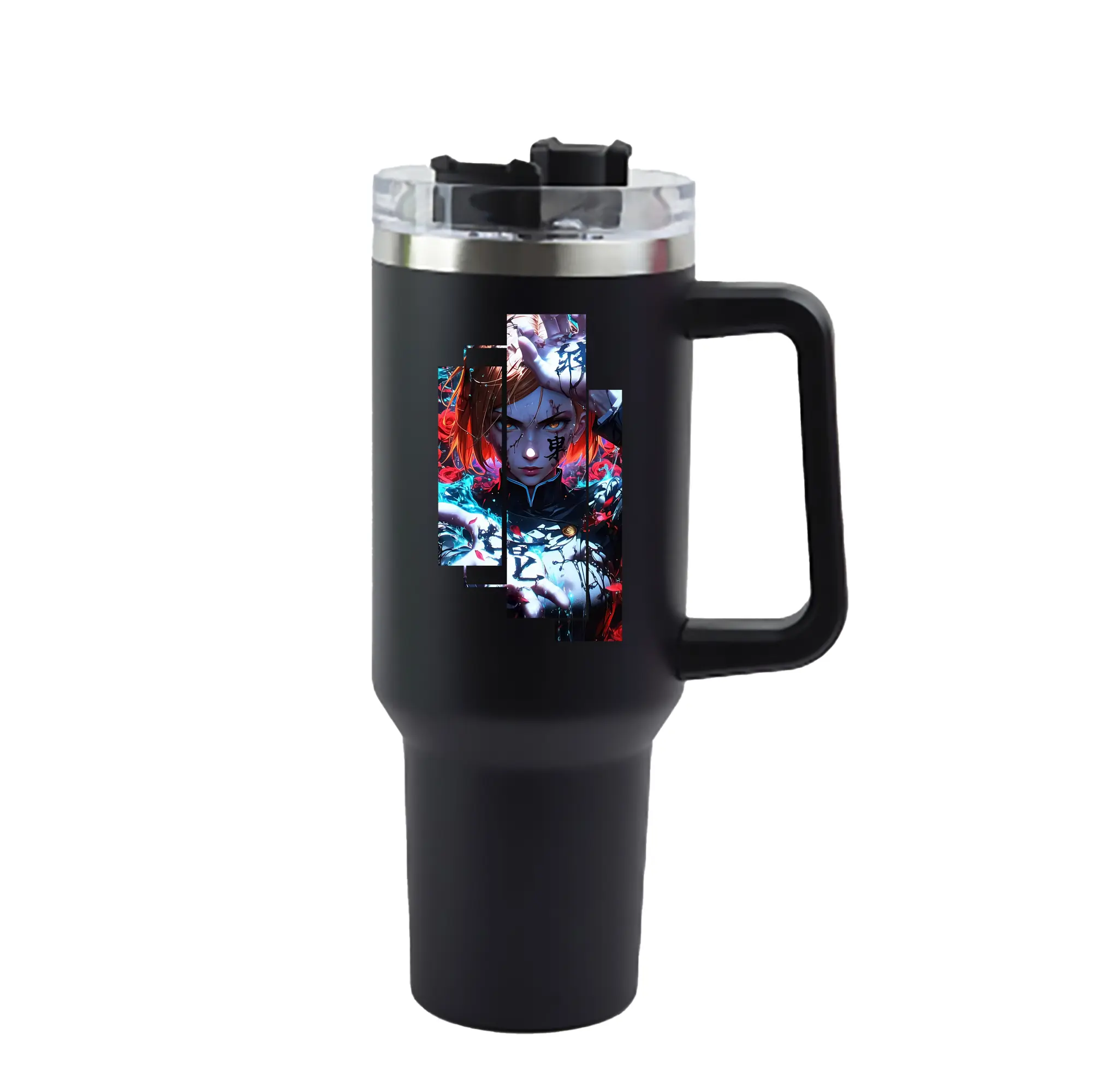 呪術廻戦 グッズ,釘崎 野薔薇 - 1200mL 車用タンブラー ・ クリスタルステッカー ・ 304ステンレス 内側 ・ 201ステンレス 外側 ・ 保温 保冷 ・ ハンドル&ストロー付き ・ 通勤 ドライブ アウトドア用