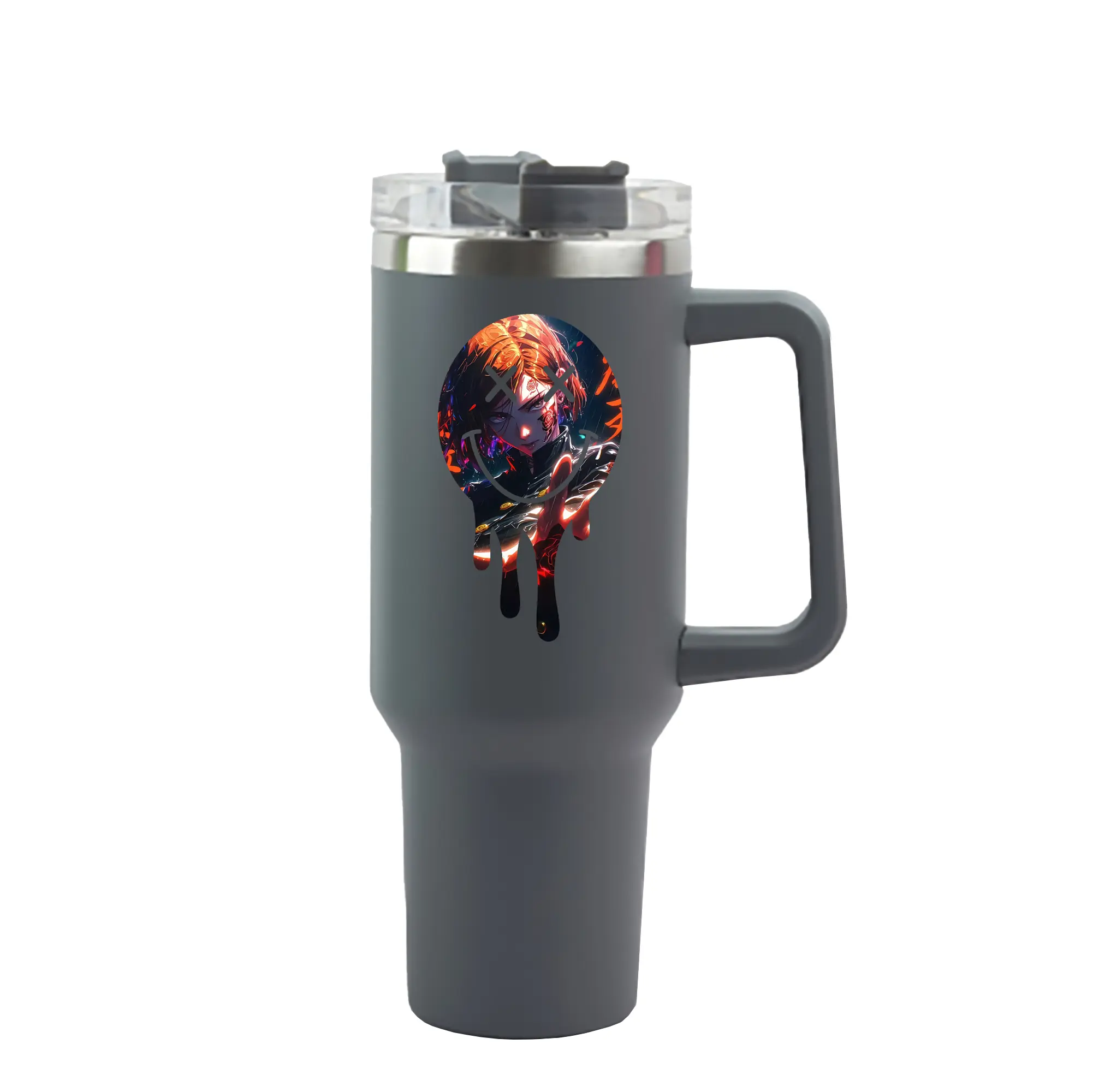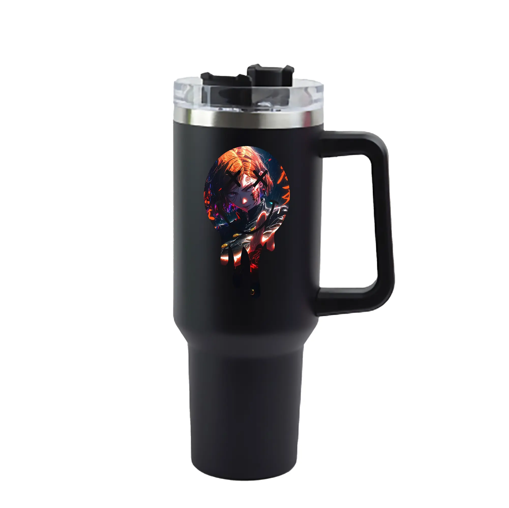 呪術廻戦 グッズ,釘崎 野薔薇 - 1200mL 車用タンブラー ・ クリスタルステッカー ・ 304ステンレス 内側 ・ 201ステンレス 外側 ・ 保温 保冷 ・ ハンドル&ストロー付き ・ 通勤 ドライブ アウトドア用