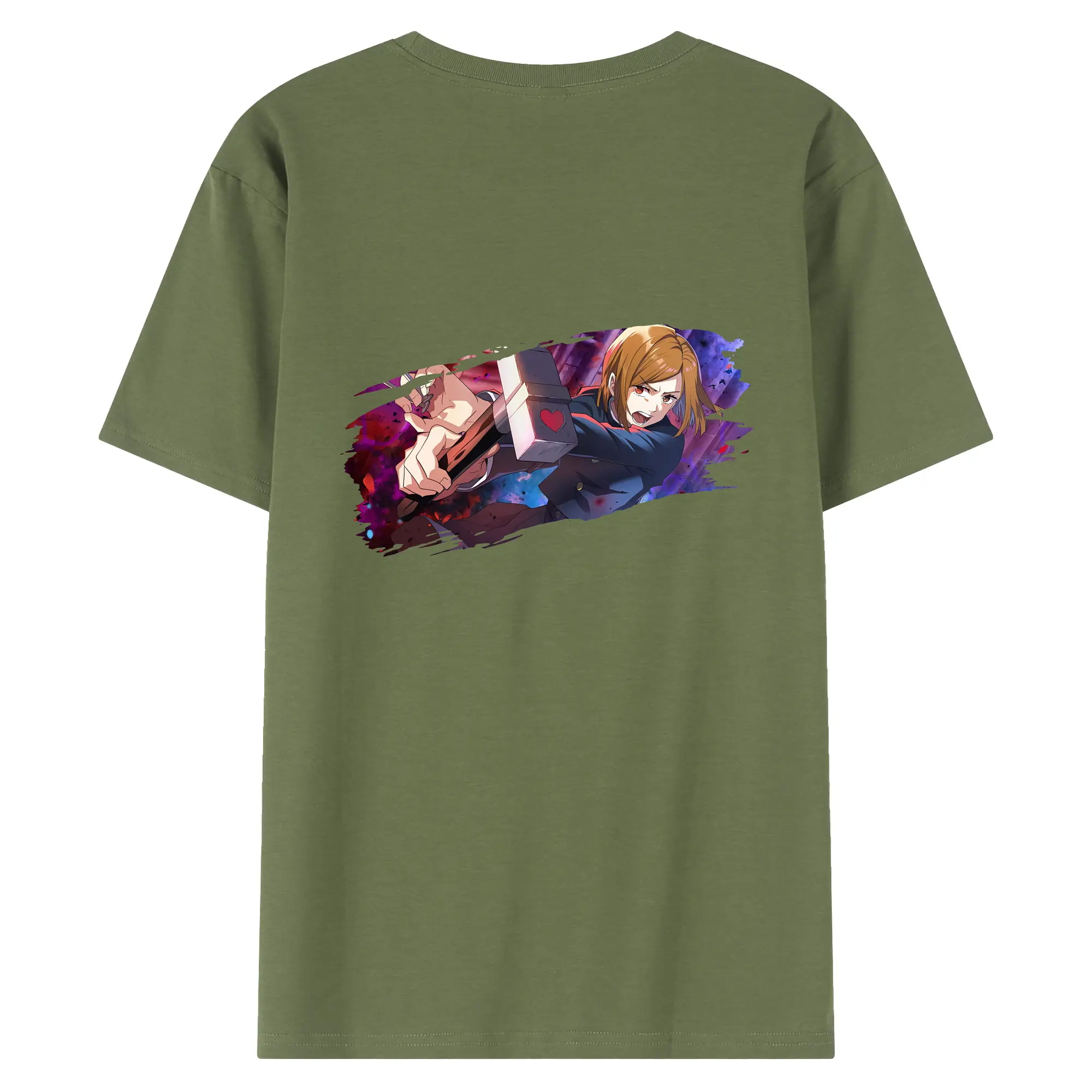 呪術廻戦 グッズ,釘崎 野薔薇 - 綿100% 半袖Tシャツ ・ フロントプリント ・ 快適 通気性 ・ 日常使い 散歩 スポーツ用
