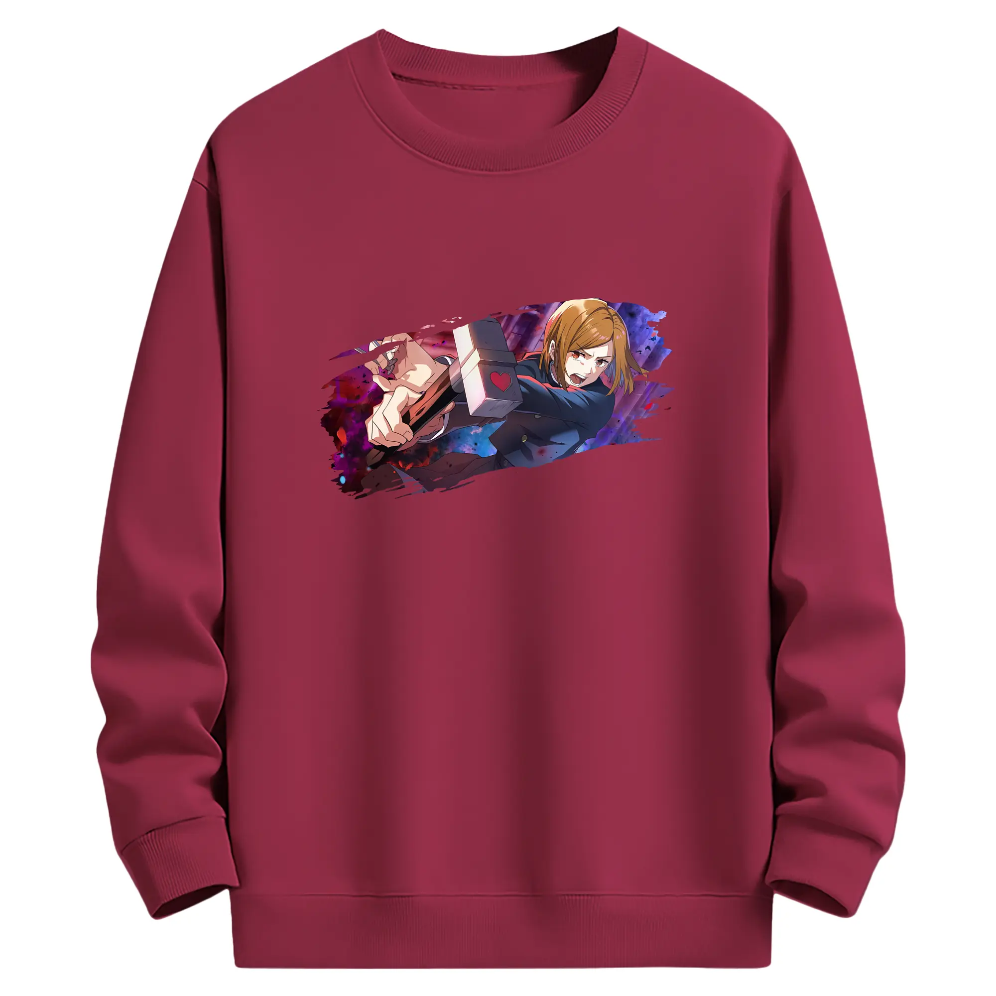 呪術廻戦 グッズ,釘崎 野薔薇 - 薄手 クルーネック スウェット 裏毛260g · ポリエステル 春秋向け カジュアル 男女兼用 · トレーナー デイリー スポーツ 散歩に最適