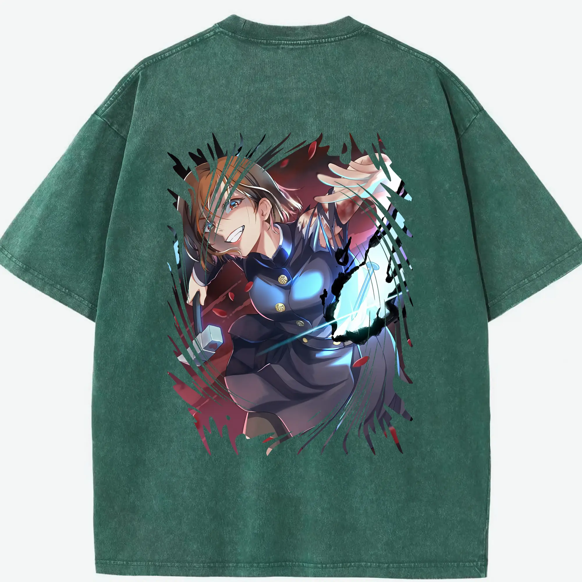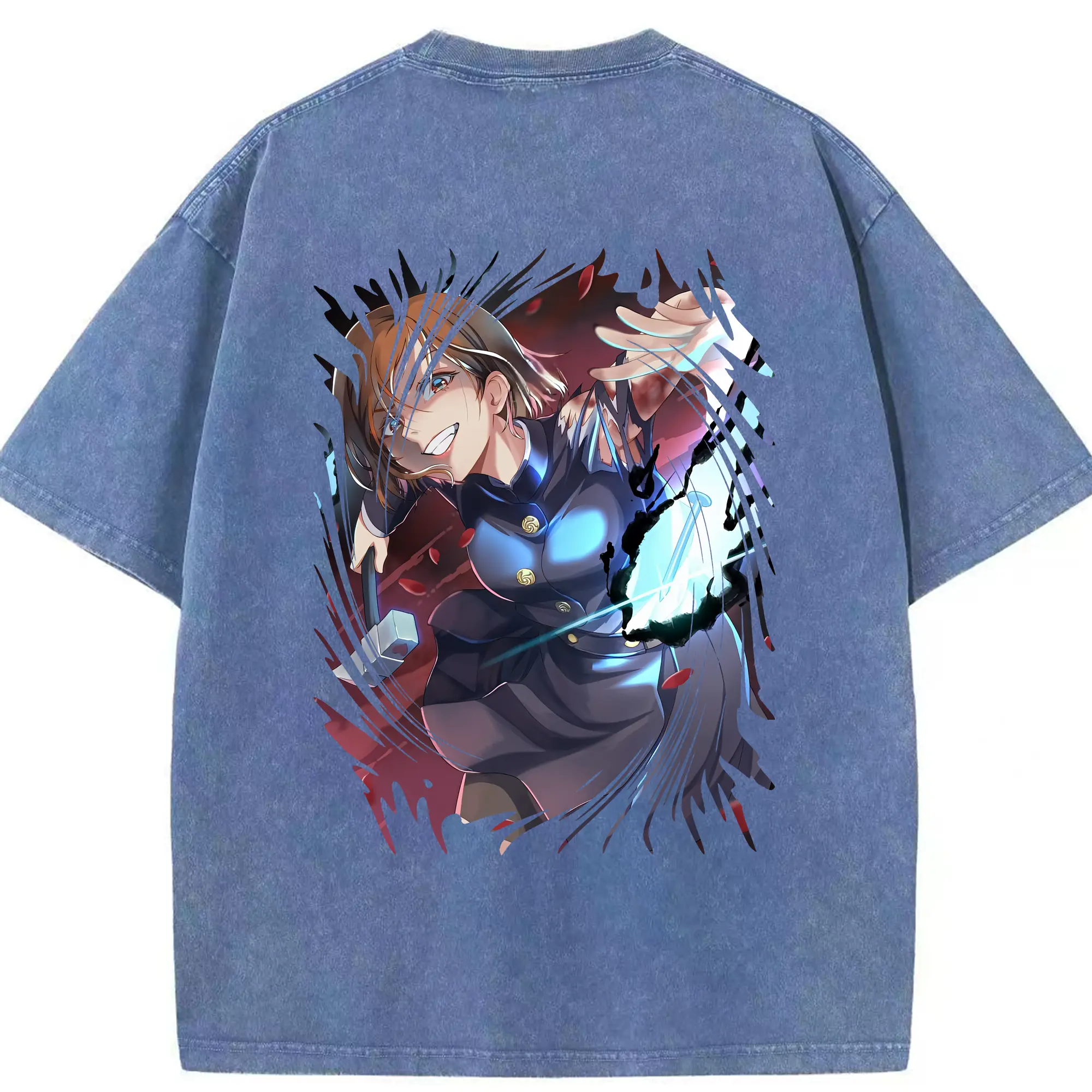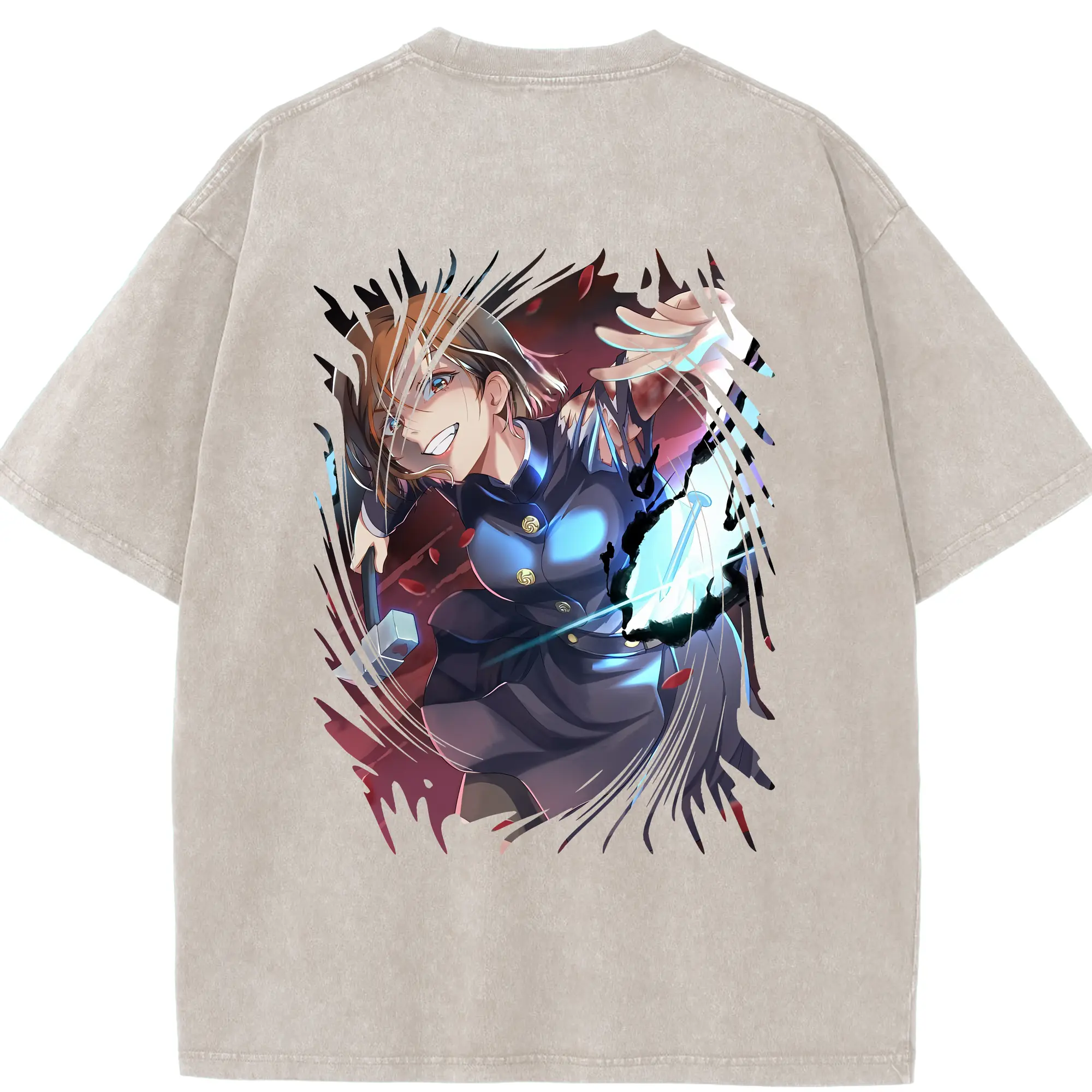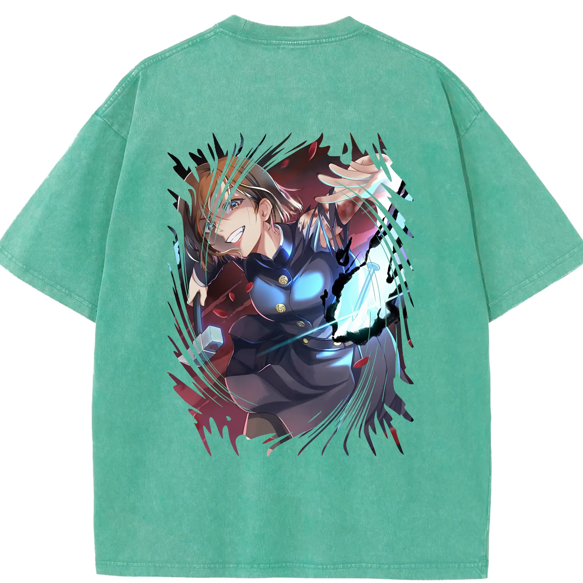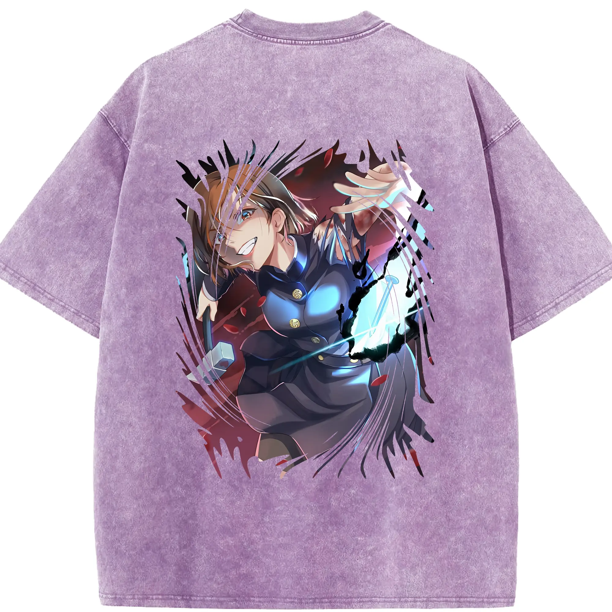 呪術廻戦 グッズ,花御 - 綿100% ヴィンテージ風 半袖Tシャツ ・ 背面プリント ・ 柔らか肌触り ・ 通気性 快適 ・ スポーツ カジュアル 外出用
