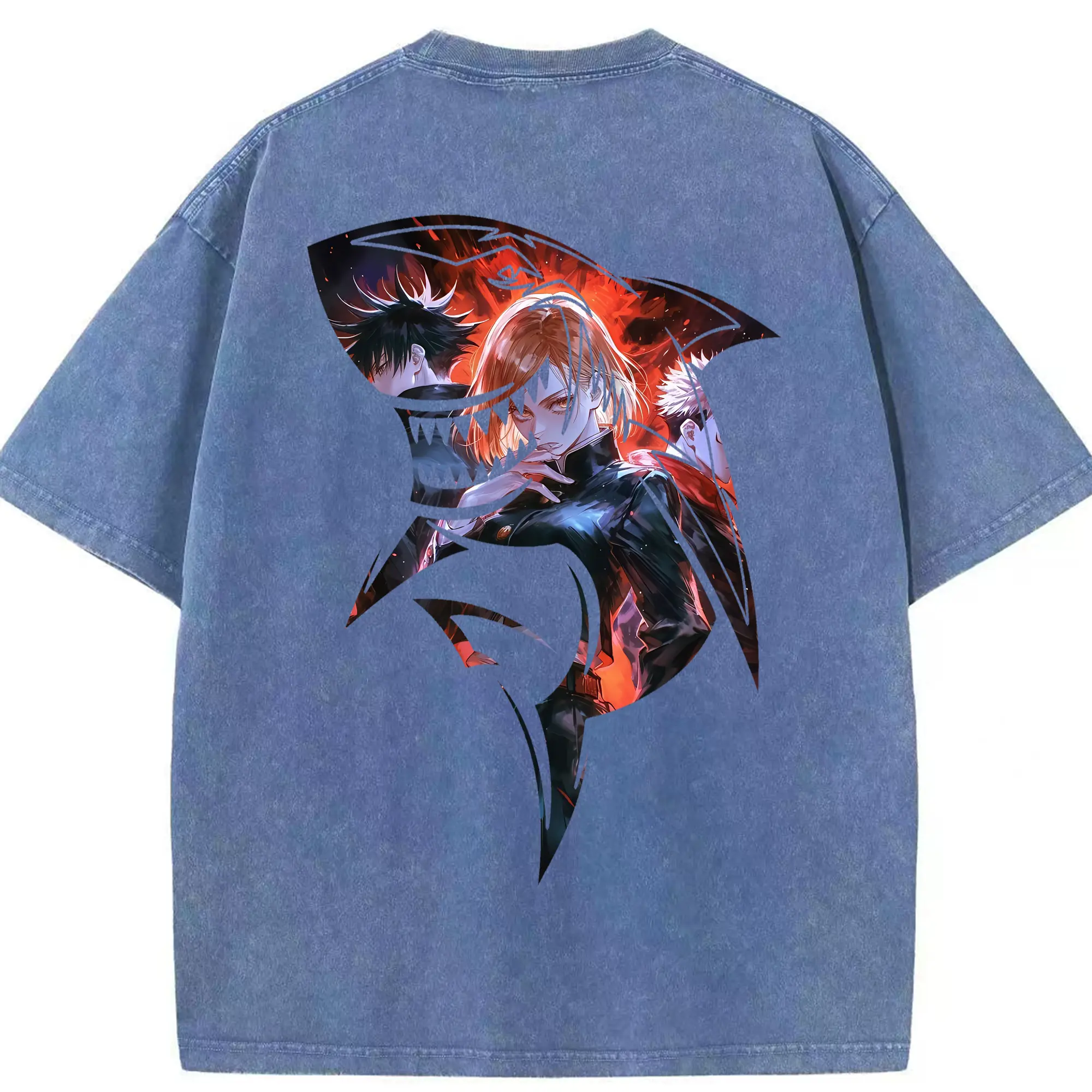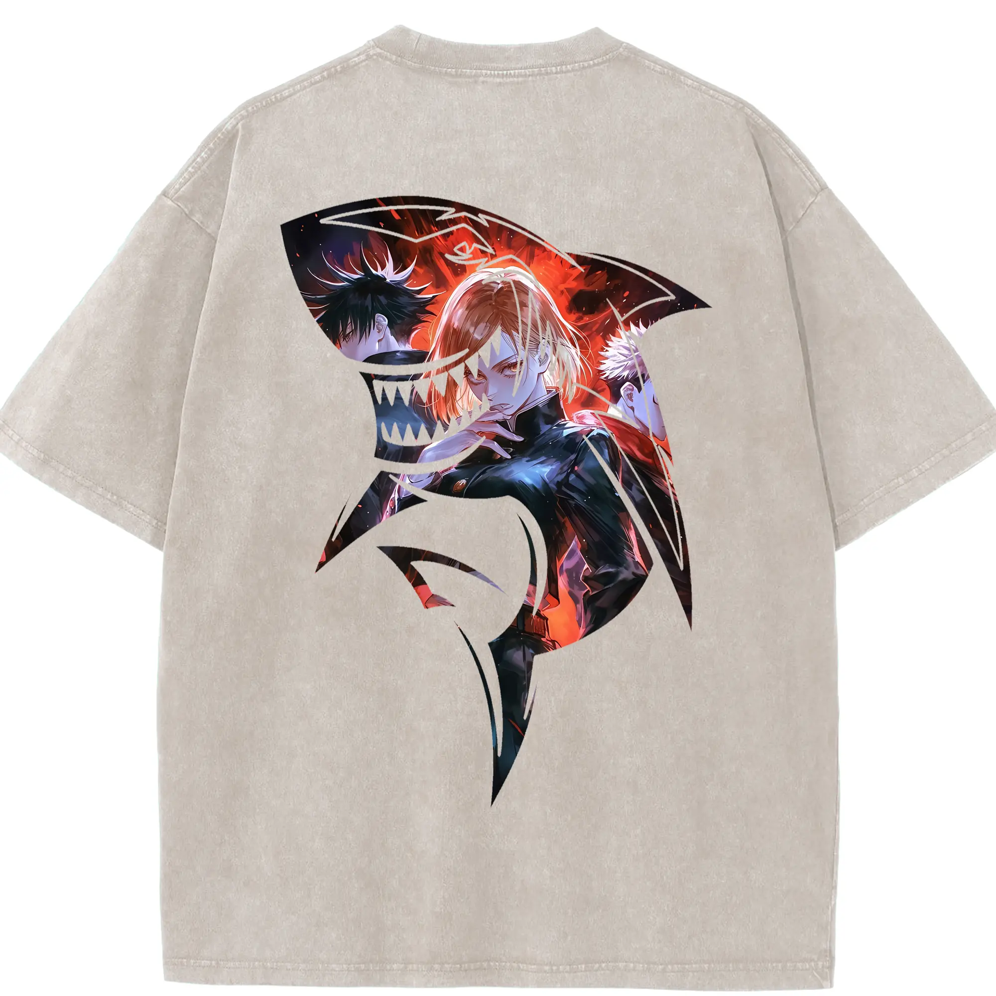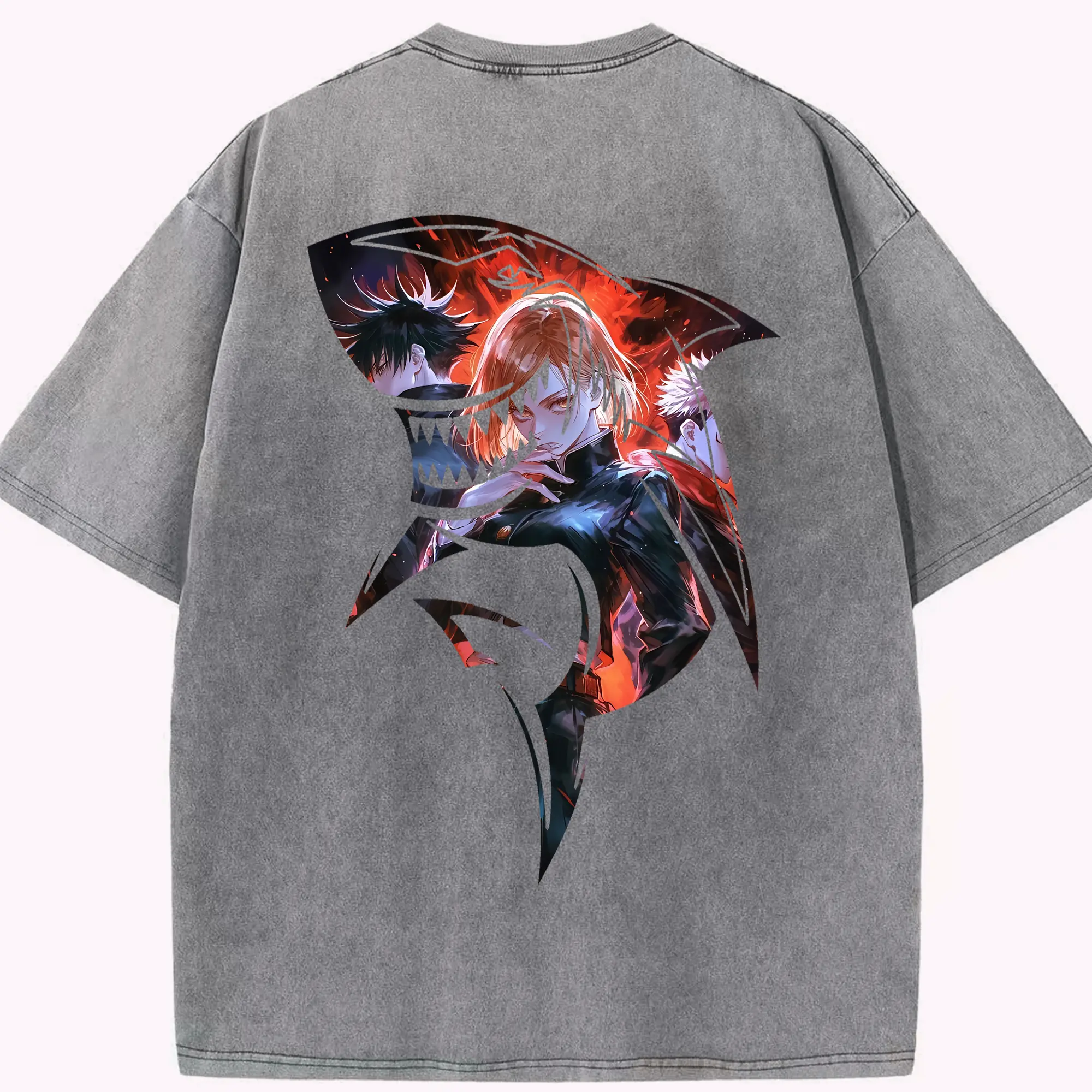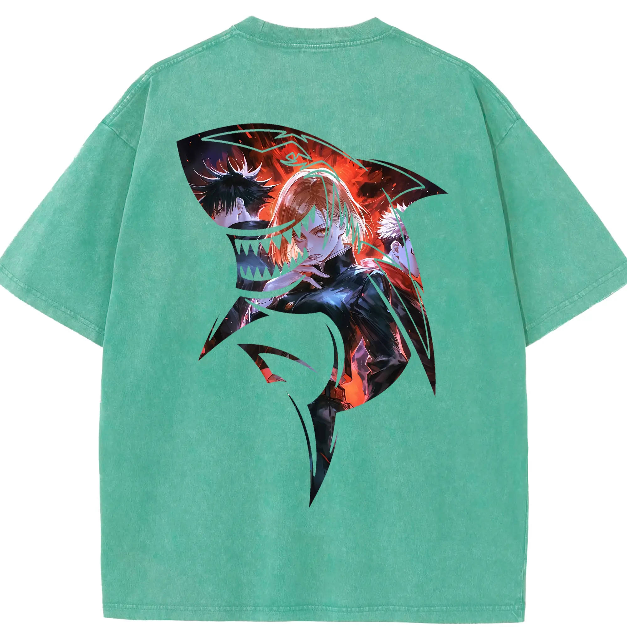 ワンパンマン グッズ ジェノス - 綿100% ヴィンテージ風 半袖Tシャツ ・ 背面プリント ・ 柔らか肌触り ・ 通気性 快適 ・ スポーツ カジュアル 外出用