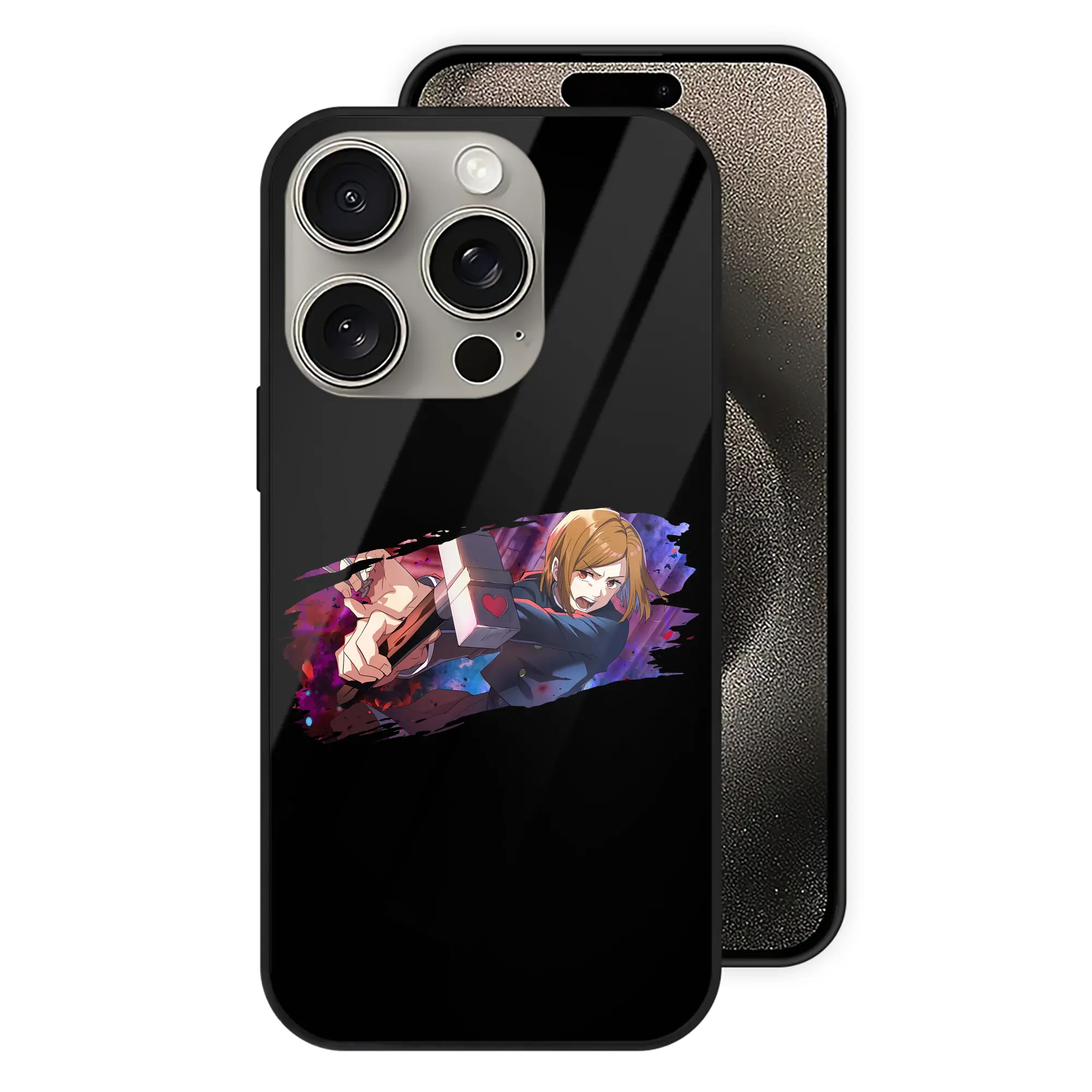 呪術廻戦 グッズ,釘崎 野薔薇 - IPhone15Pro対応 ・ スマホケース ・ 背面ガラス ・ TPU+強化ガラス ・ 耐衝撃 ・ 黄変防止 ・ ワイヤレス充電対応 ・ 3D立体ボタン