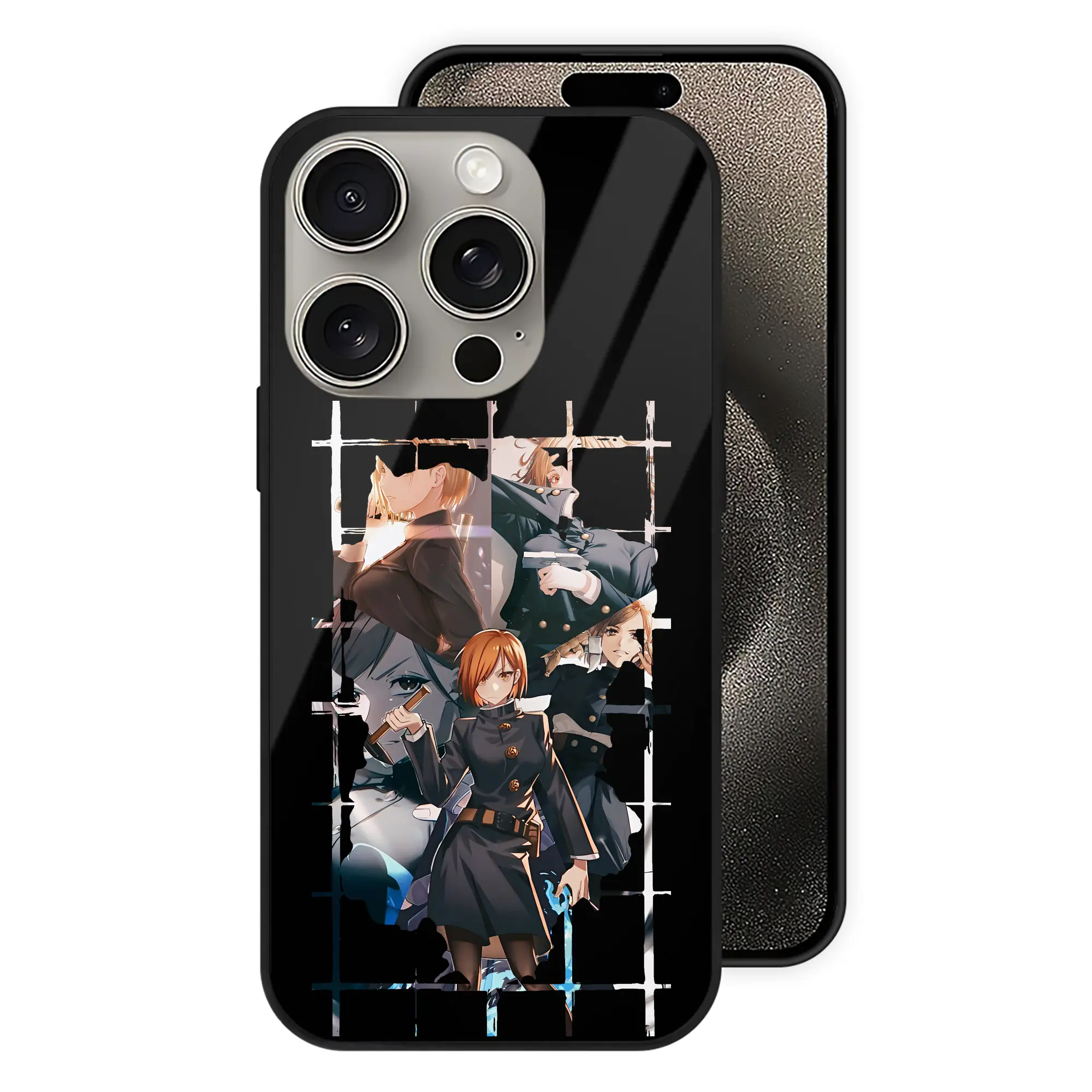 呪術廻戦 グッズ,釘崎 野薔薇 - IPhone15Pro対応 ・ スマホケース ・ 背面ガラス ・ TPU+強化ガラス ・ 耐衝撃 ・ 黄変防止 ・ ワイヤレス充電対応 ・ 3D立体ボタン