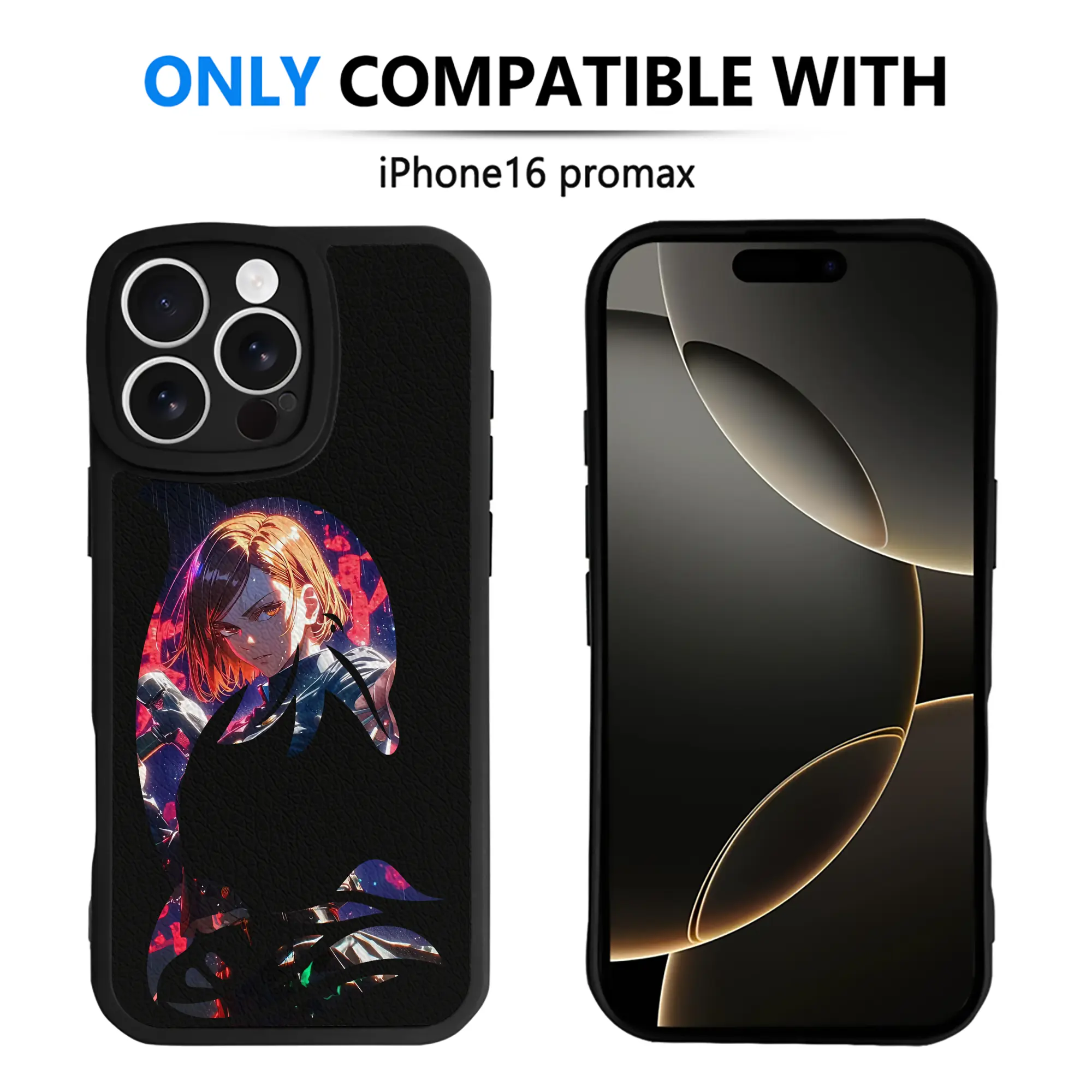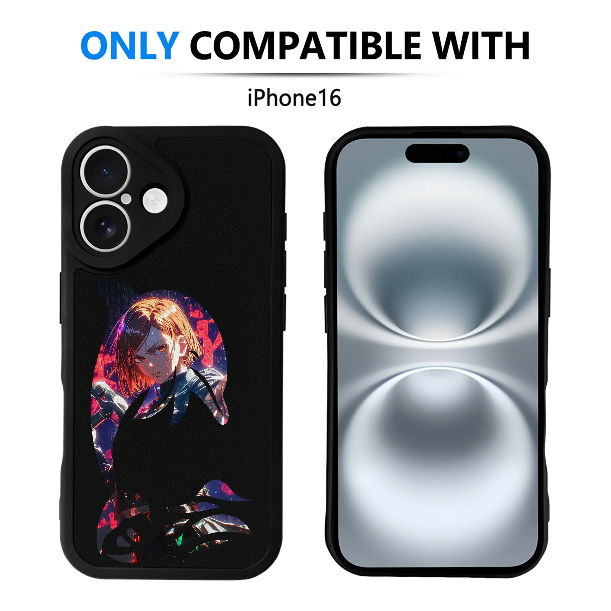呪術廻戦 グッズ,釘崎 野薔薇 - IPhone 16シリーズ対応 ・ シリコンスマホケース ・ レザー調 ・ 高精度フィット ・ 耐衝撃 ・ ワイヤレス充電対応 ・ 精密カット