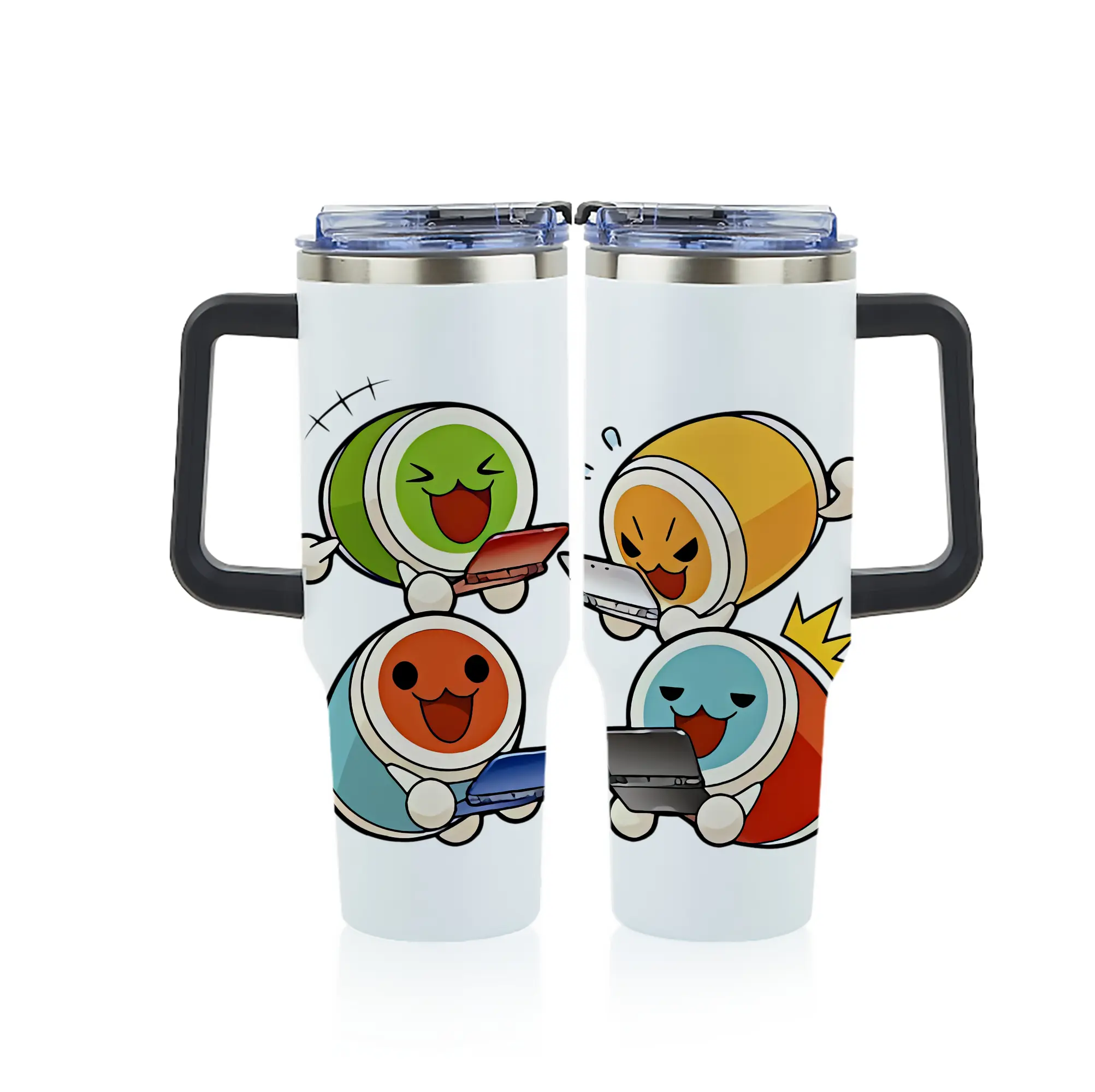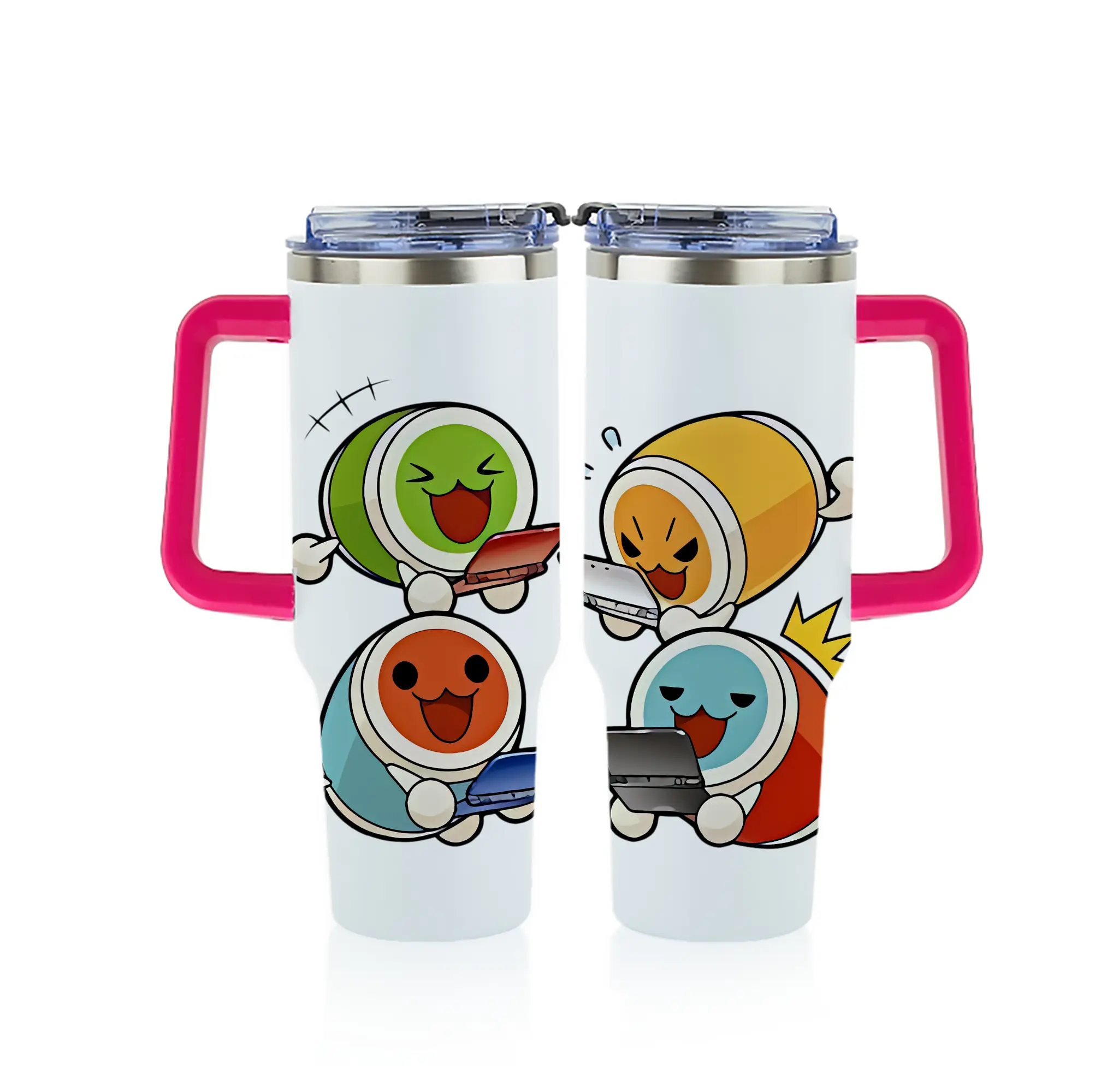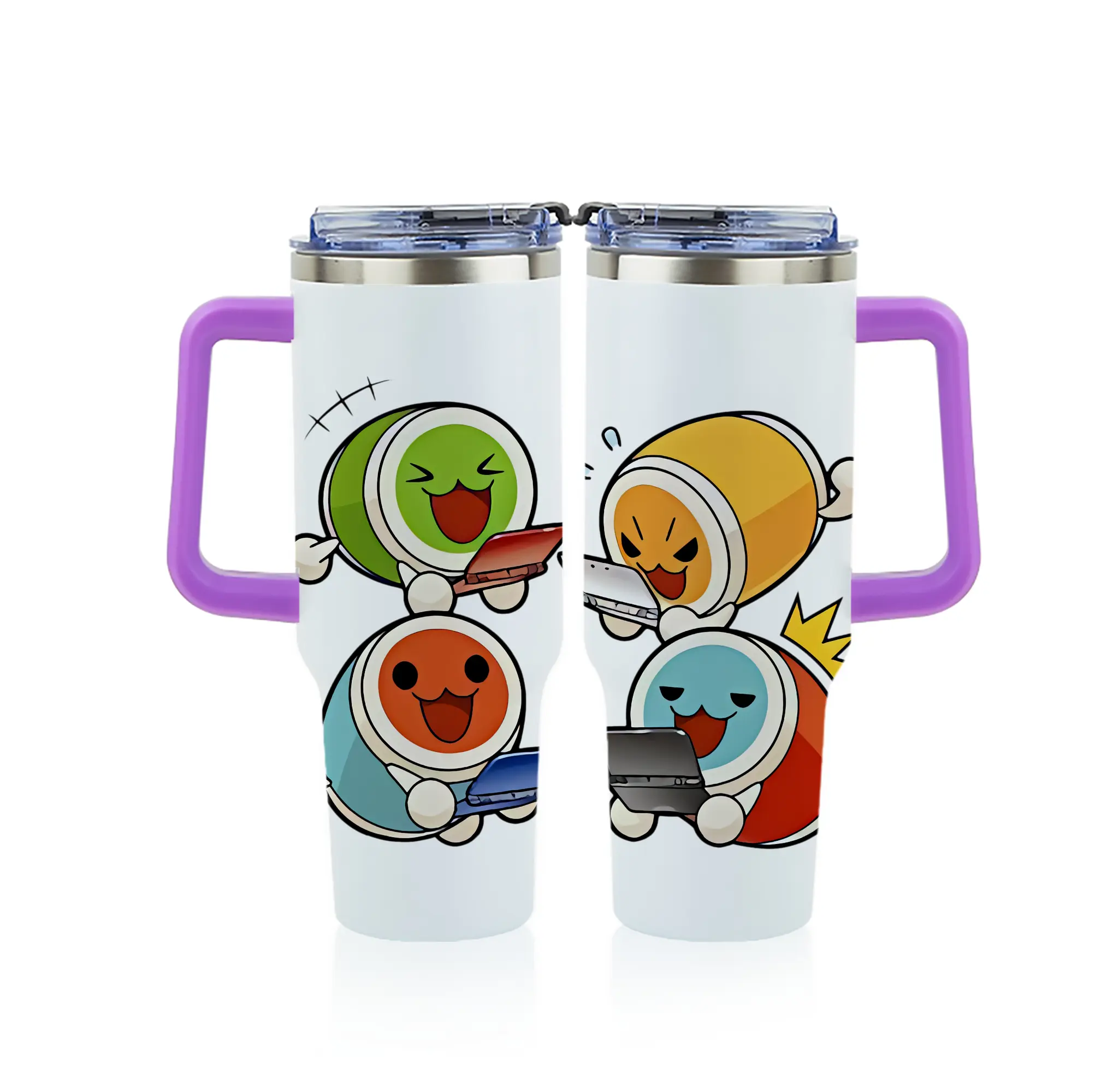 太鼓の達人 グッズ - 1200mL フルプリント車用タンブラー ・ 304ステンレス 内側 ・ 201ステンレス 外側 ・ 保温 保冷 ・ 通勤 ドライブ アウトドア用