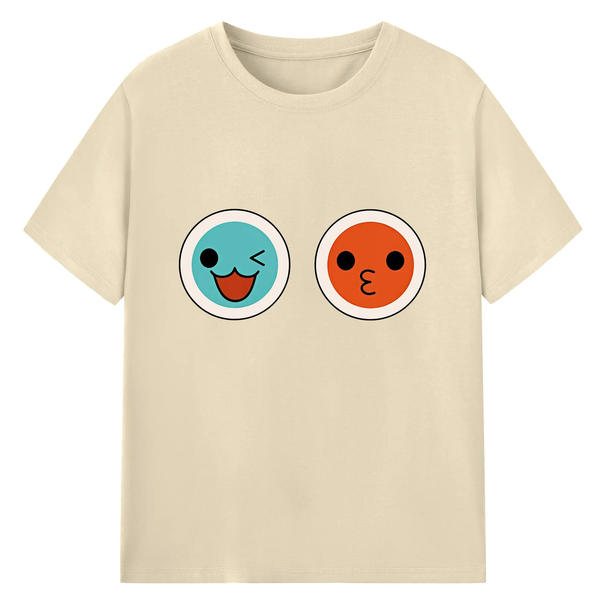 太鼓の達人 グッズ - 綿100% ヴィンテージ風 半袖Tシャツ ・ フロントプリント ・ 柔らか肌触り ・ 通気性 快適 ・ スポーツ カジュアル 外出用