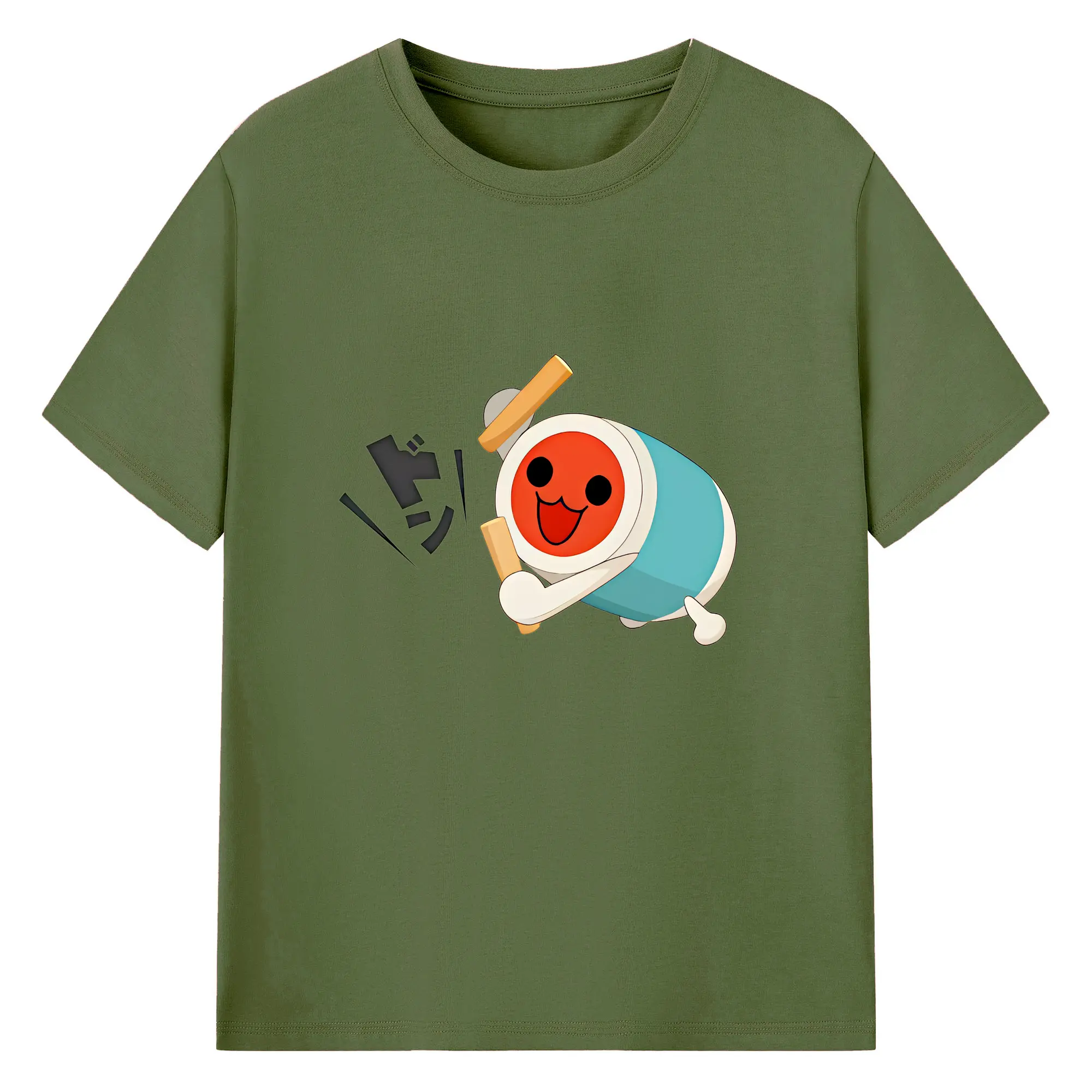 太鼓の達人 グッズ - 綿100% ヴィンテージ風 半袖Tシャツ ・ フロントプリント ・ 柔らか肌触り ・ 通気性 快適 ・ スポーツ カジュアル 外出用