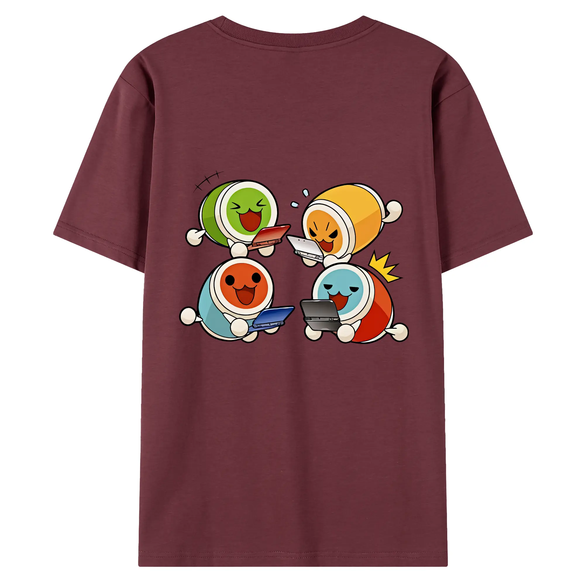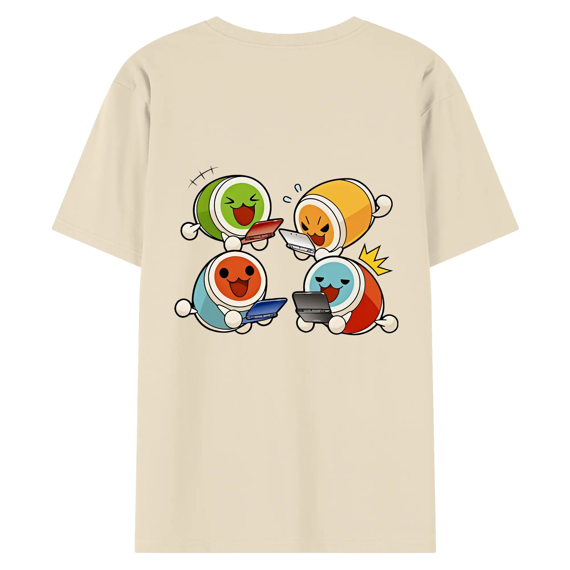 太鼓の達人 グッズ - 綿100% ヴィンテージ風 半袖Tシャツ ・ 背面プリント ・ 柔らか肌触り ・ 通気性 快適 ・ スポーツ カジュアル 外出用