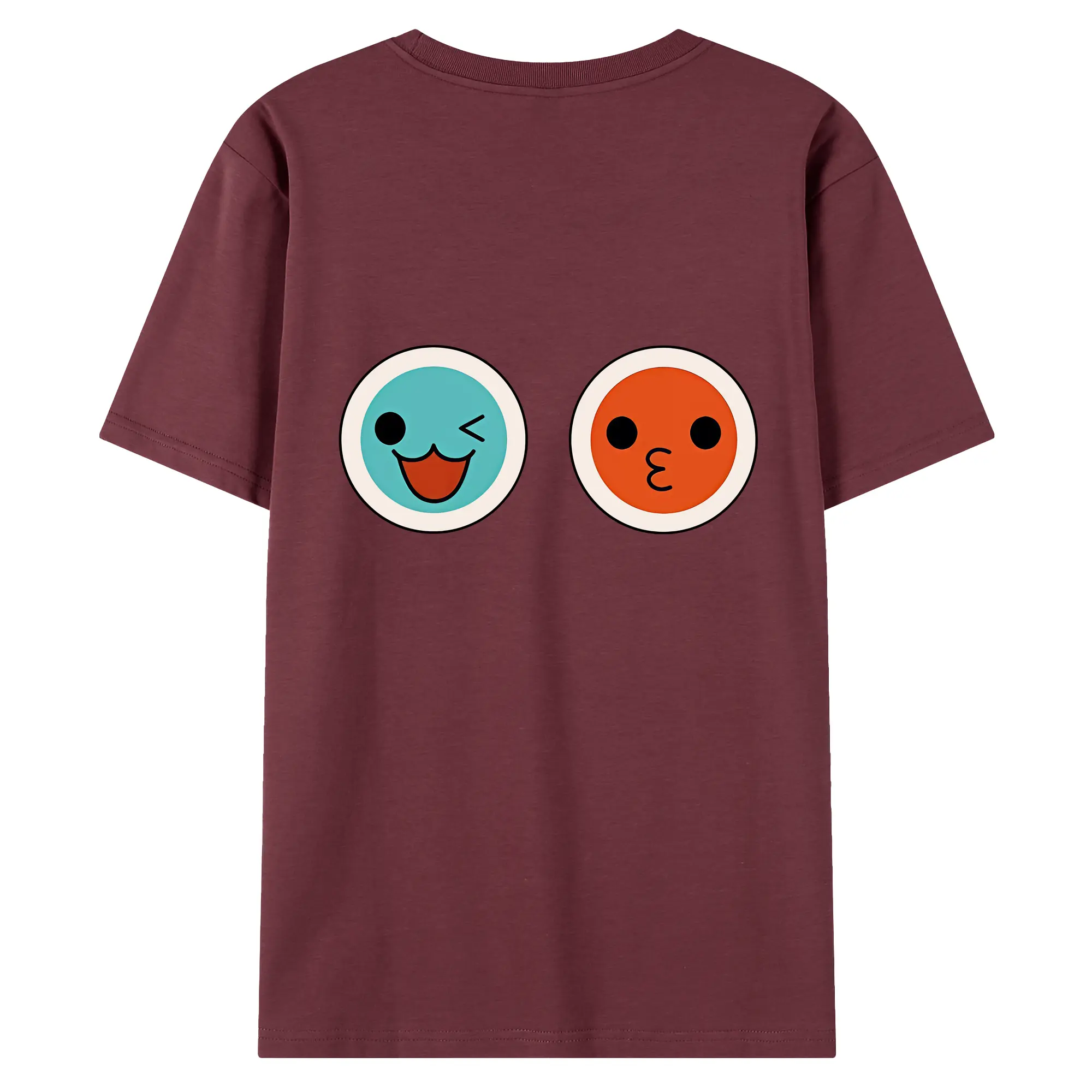 太鼓の達人 グッズ - 綿100% 半袖Tシャツ ・ フロントプリント ・ 快適 通気性 ・ 日常使い 散歩 スポーツ用