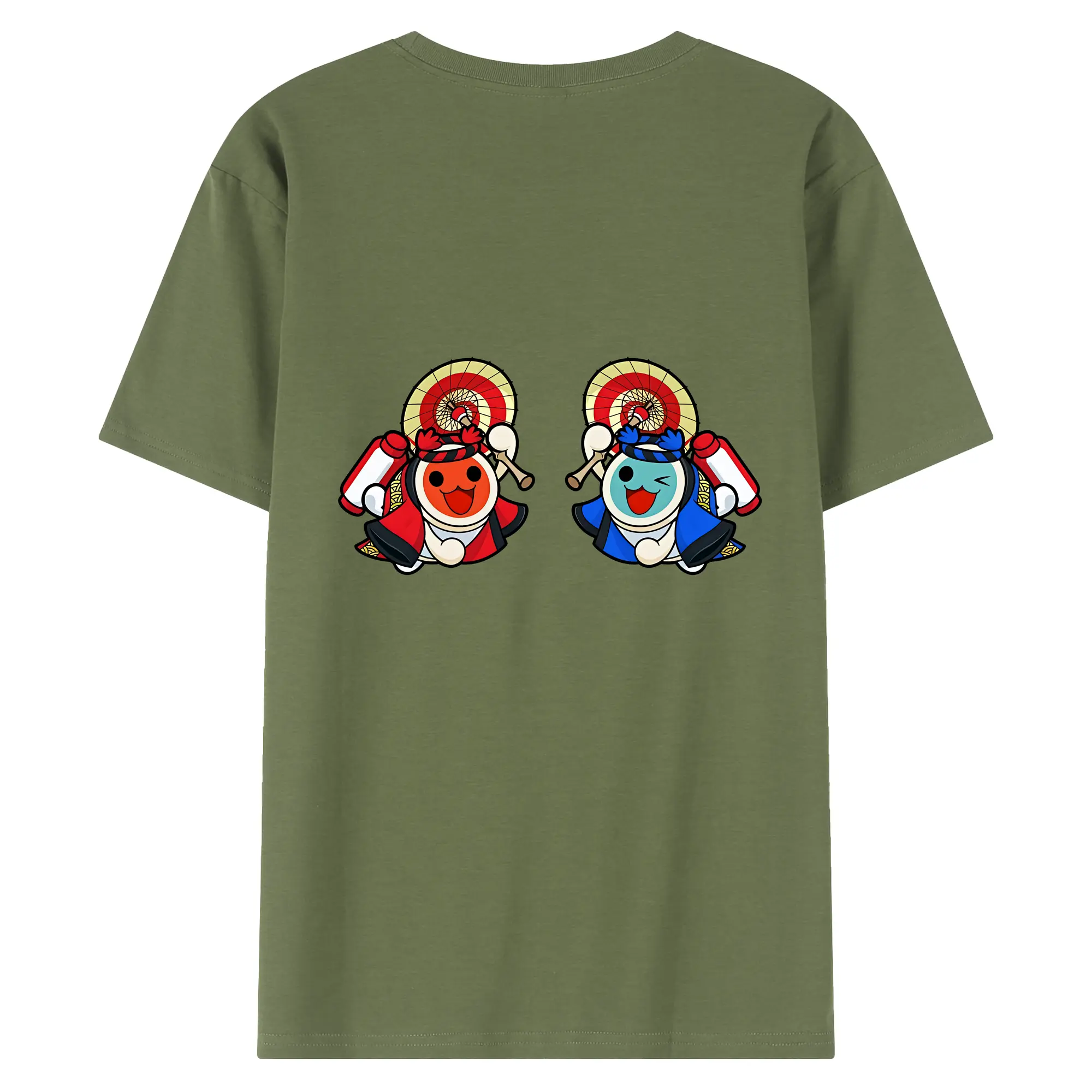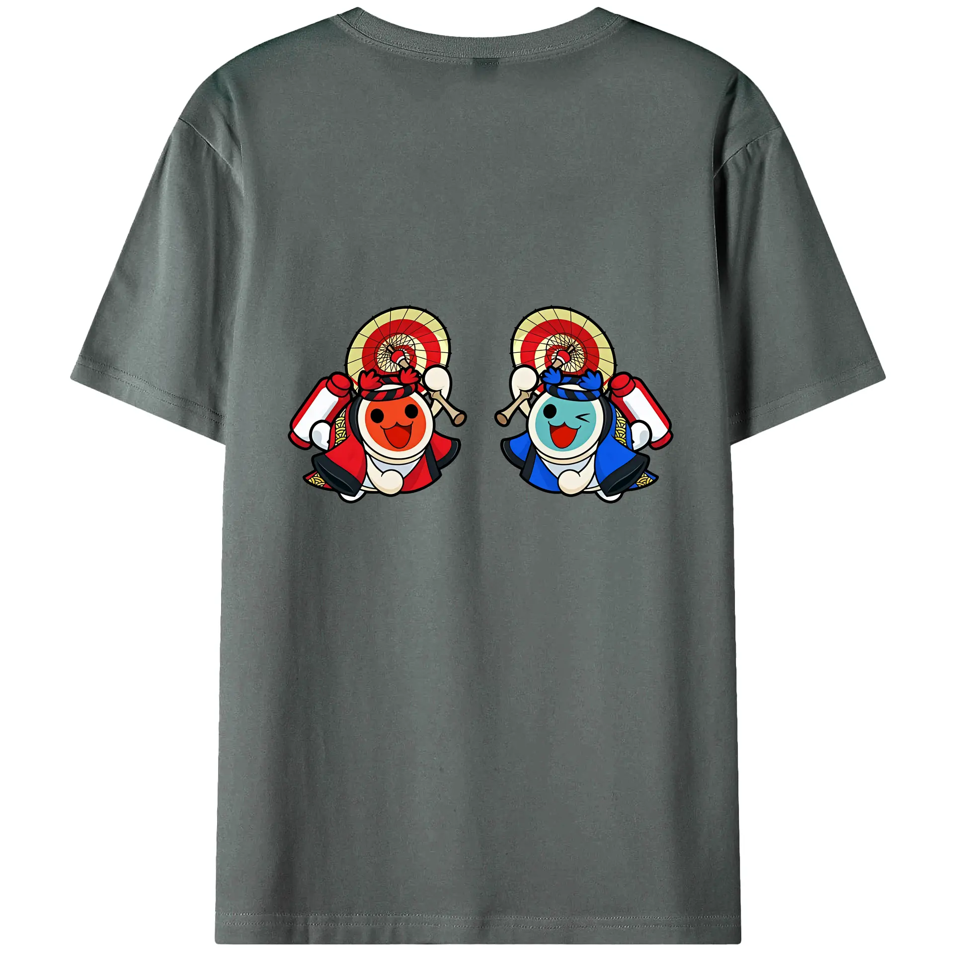 太鼓の達人 グッズ - 綿100% 半袖Tシャツ ・ フロントプリント ・ 快適 通気性 ・ 日常使い 散歩 スポーツ用