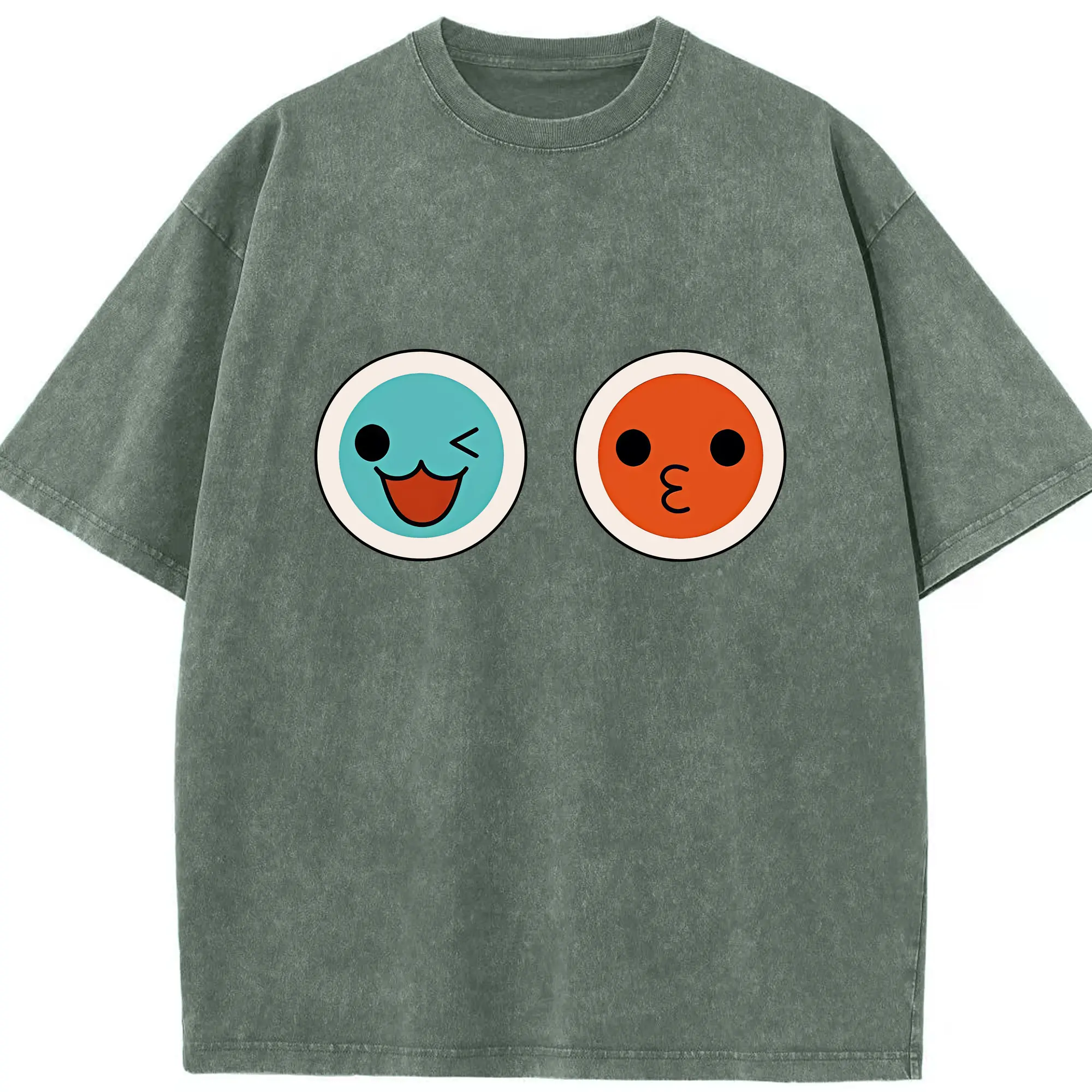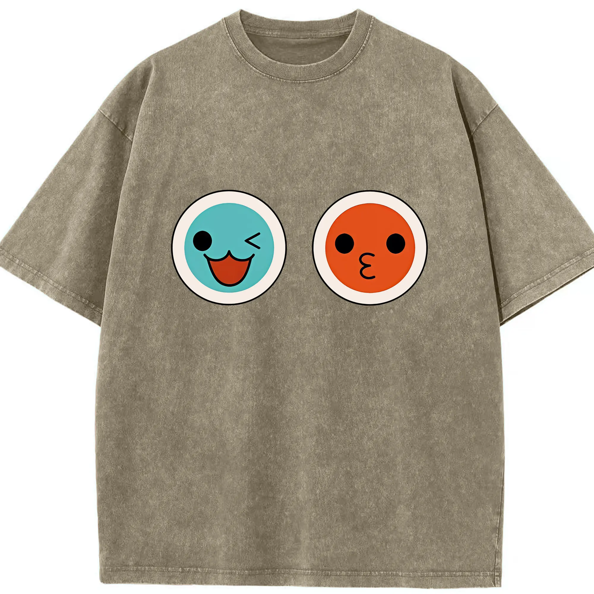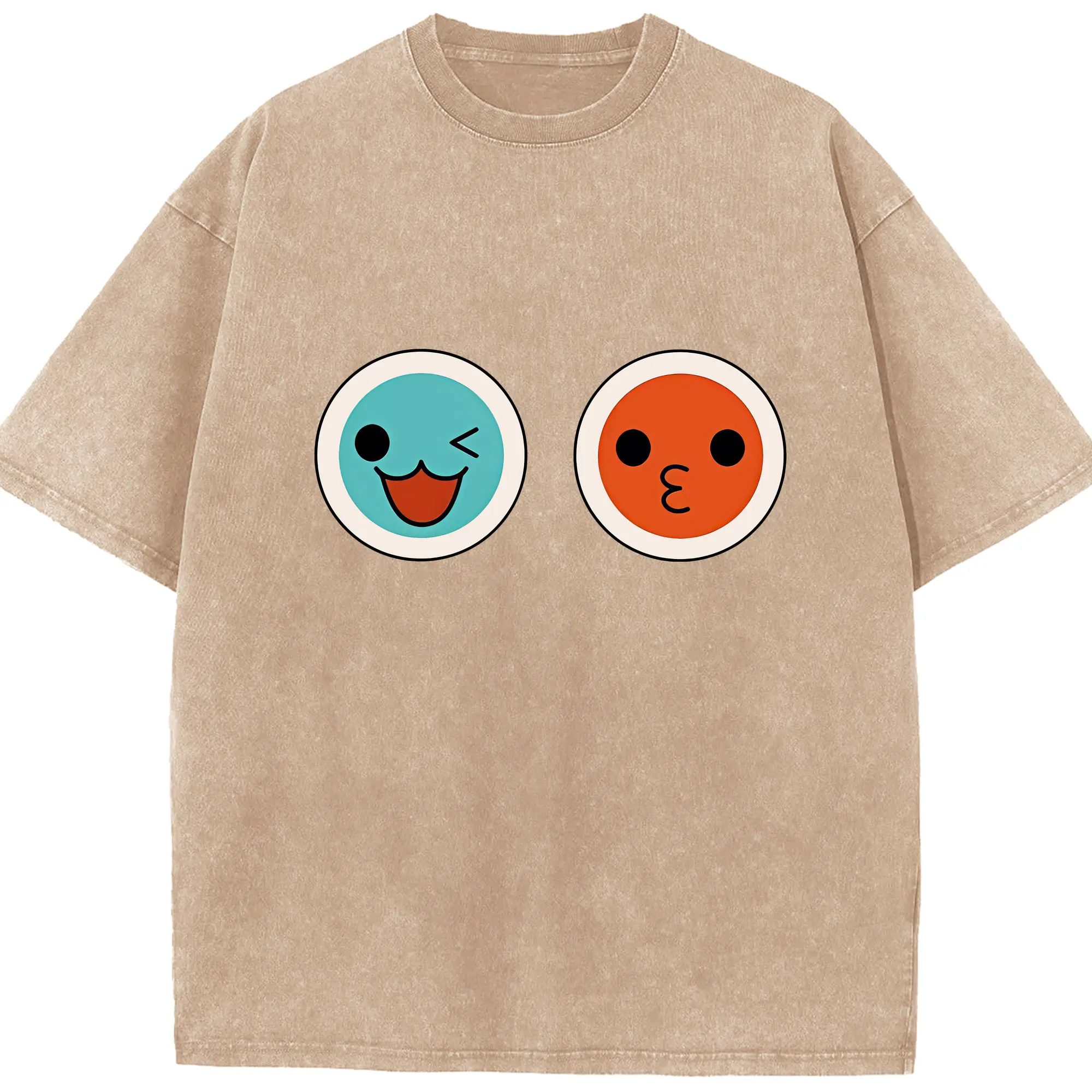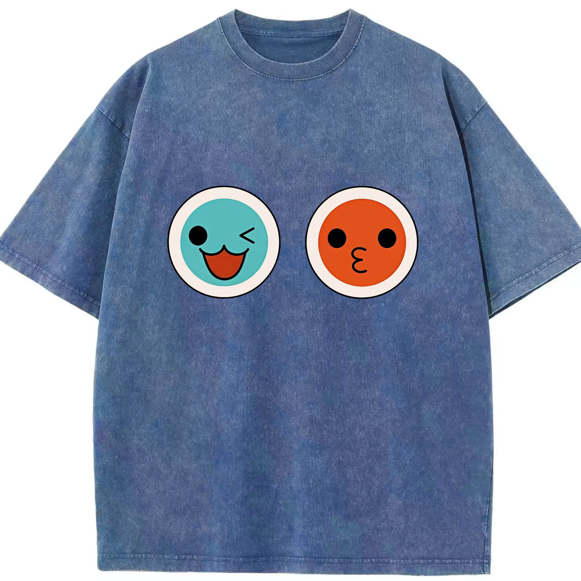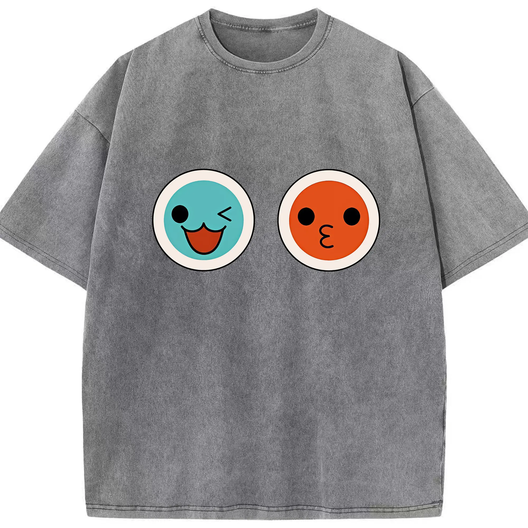 太鼓の達人 グッズ - 綿100% ヴィンテージ風 半袖Tシャツ ・ 背面プリント ・ 柔らか肌触り ・ 通気性 快適 ・ スポーツ カジュアル 外出用