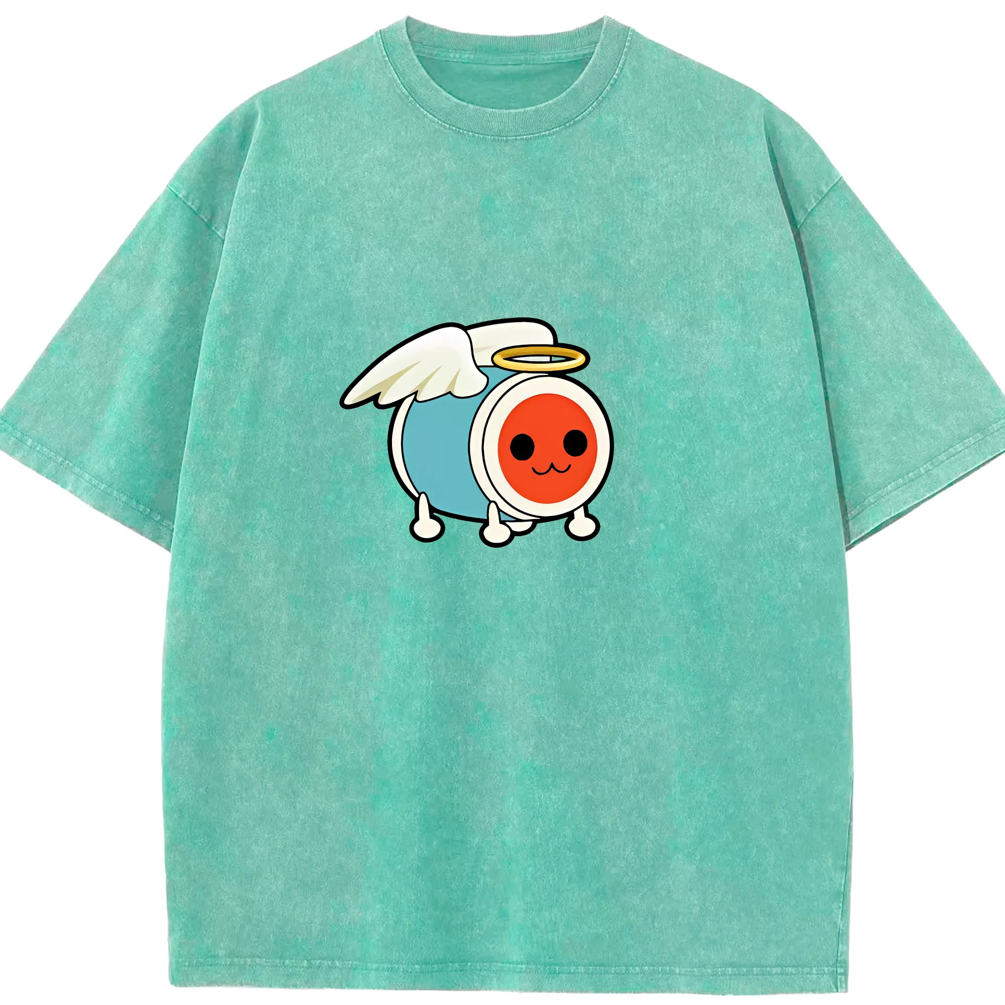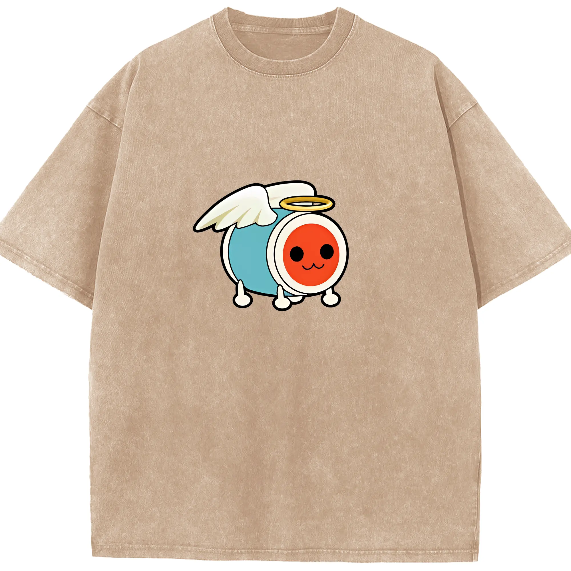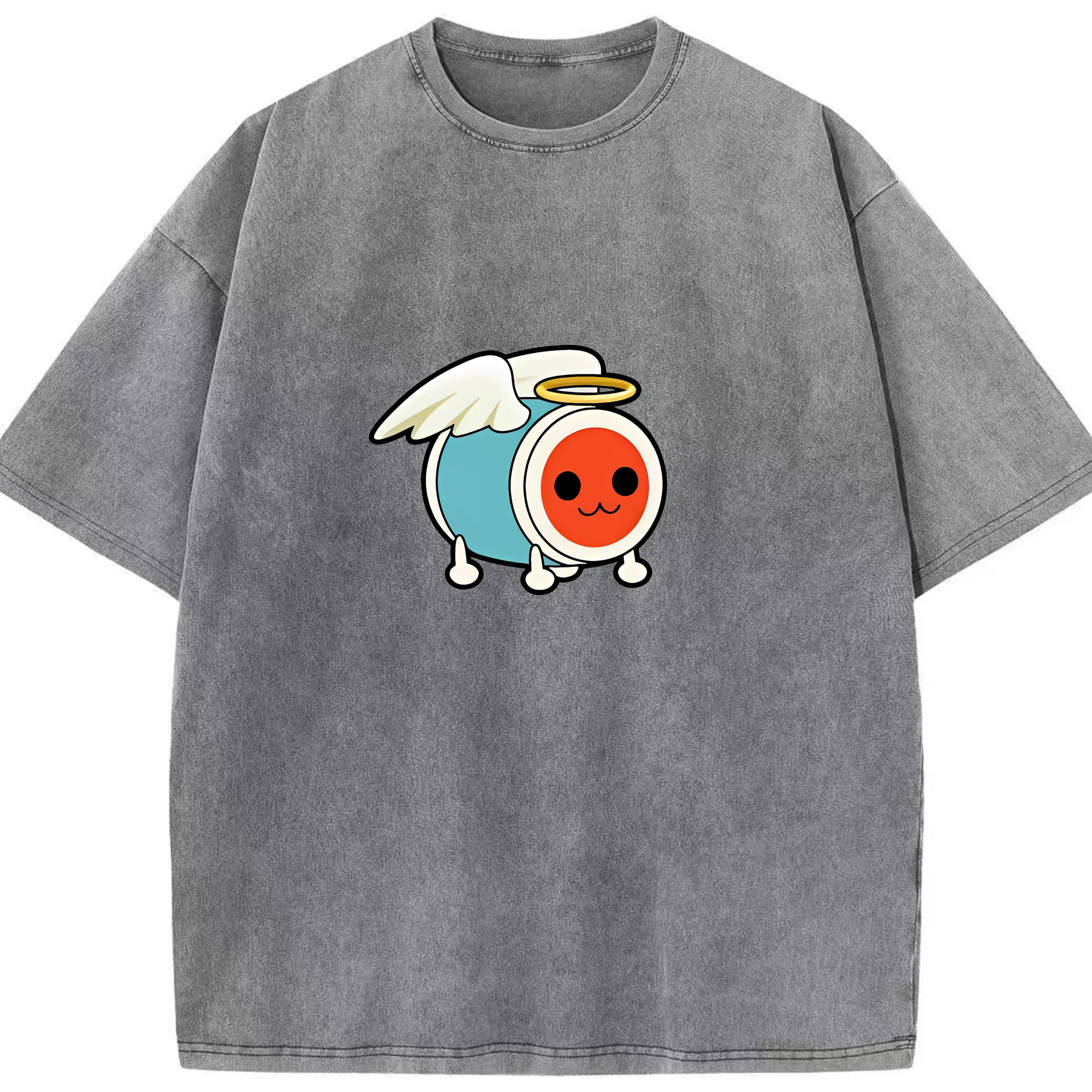 太鼓の達人 グッズ - 綿100% ヴィンテージ風 半袖Tシャツ ・ 背面プリント ・ 柔らか肌触り ・ 通気性 快適 ・ スポーツ カジュアル 外出用