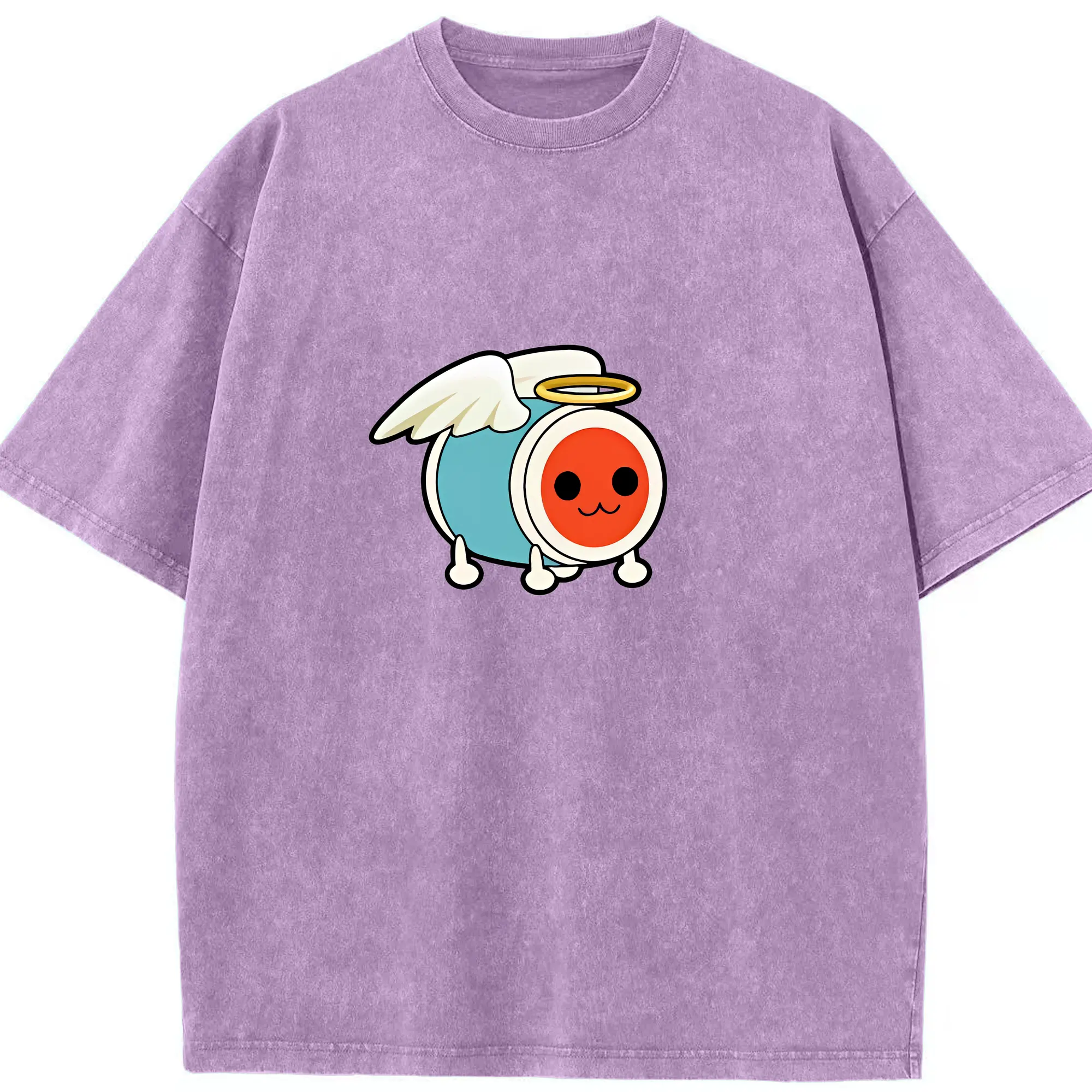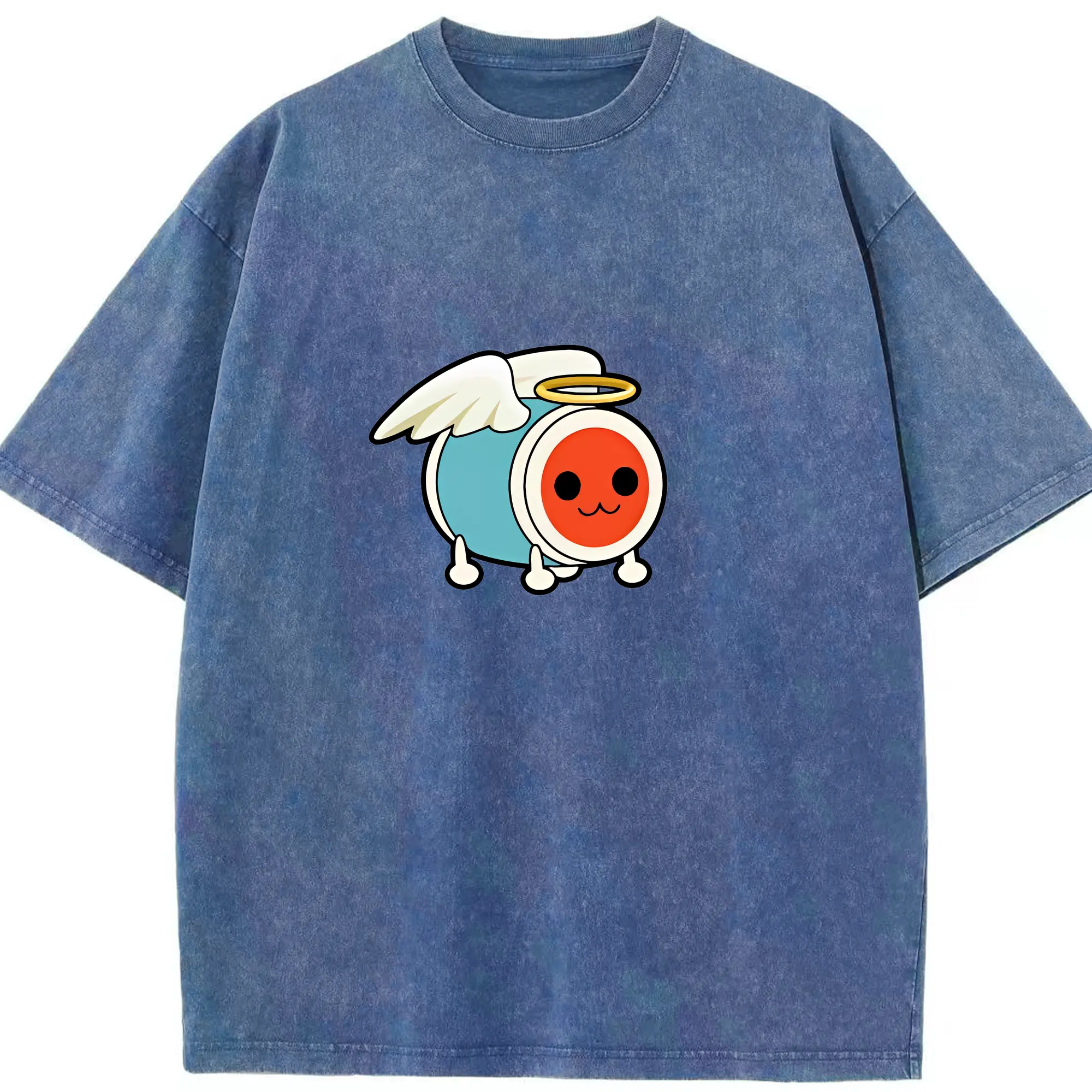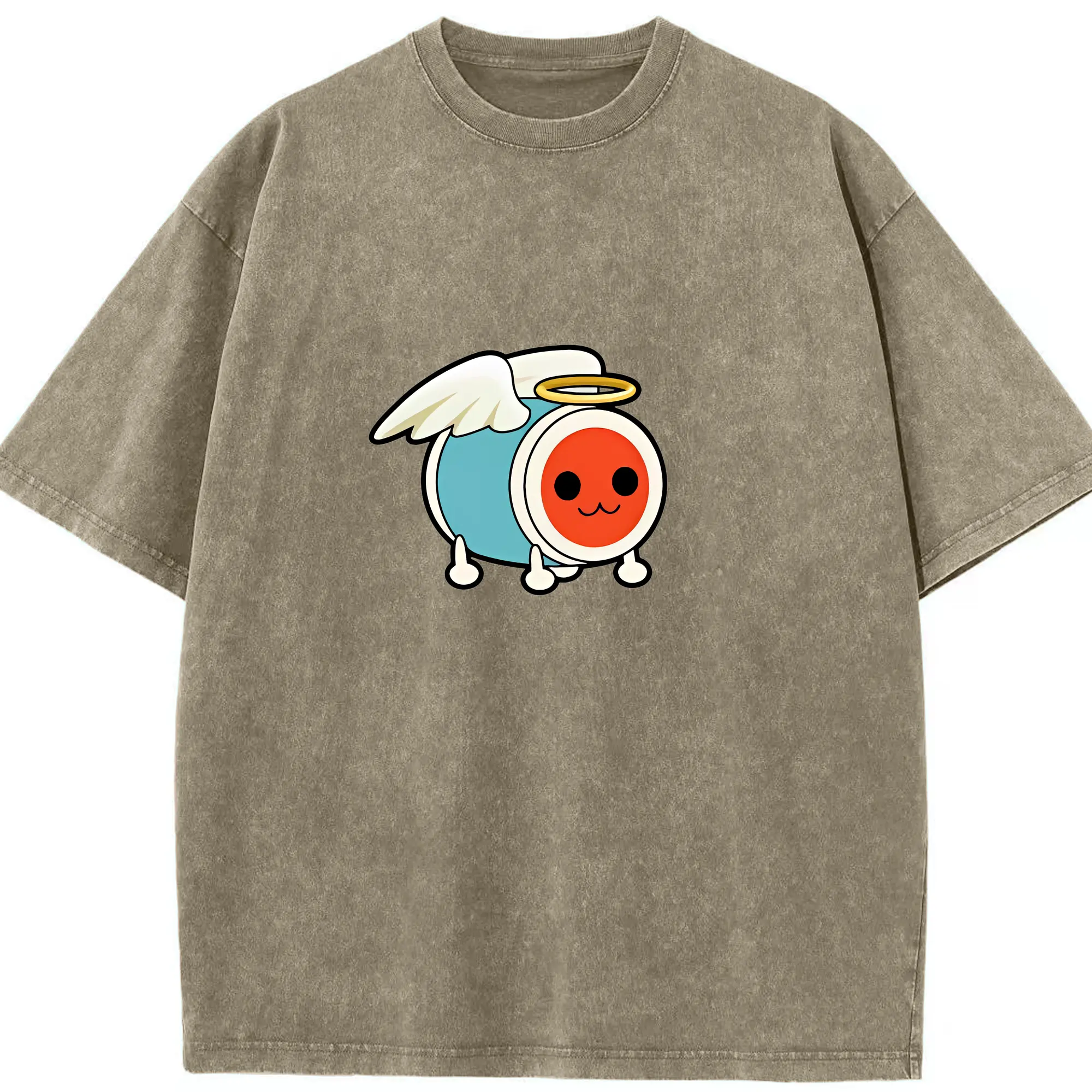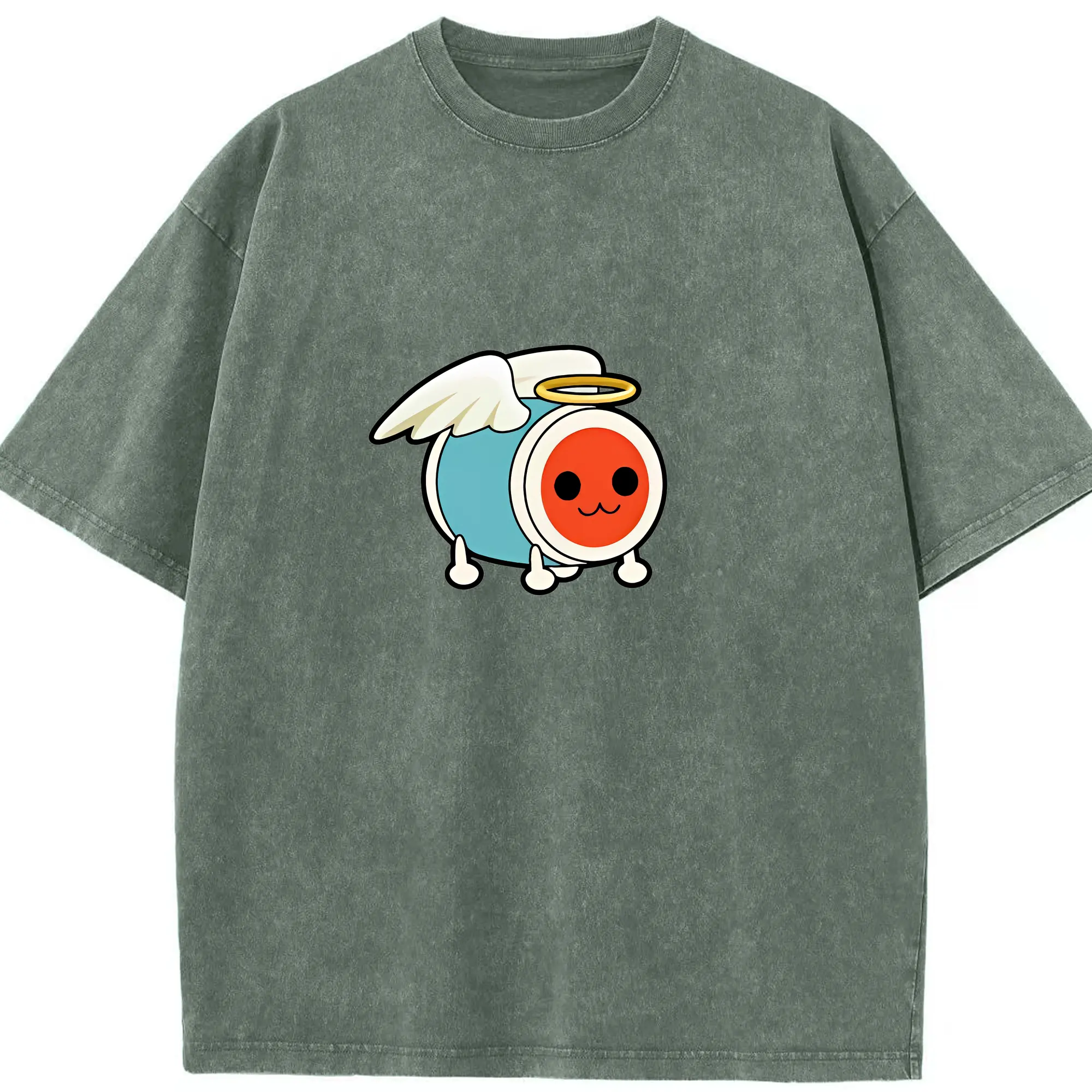 太鼓の達人 グッズ - 綿100% ヴィンテージ風 半袖Tシャツ ・ 背面プリント ・ 柔らか肌触り ・ 通気性 快適 ・ スポーツ カジュアル 外出用