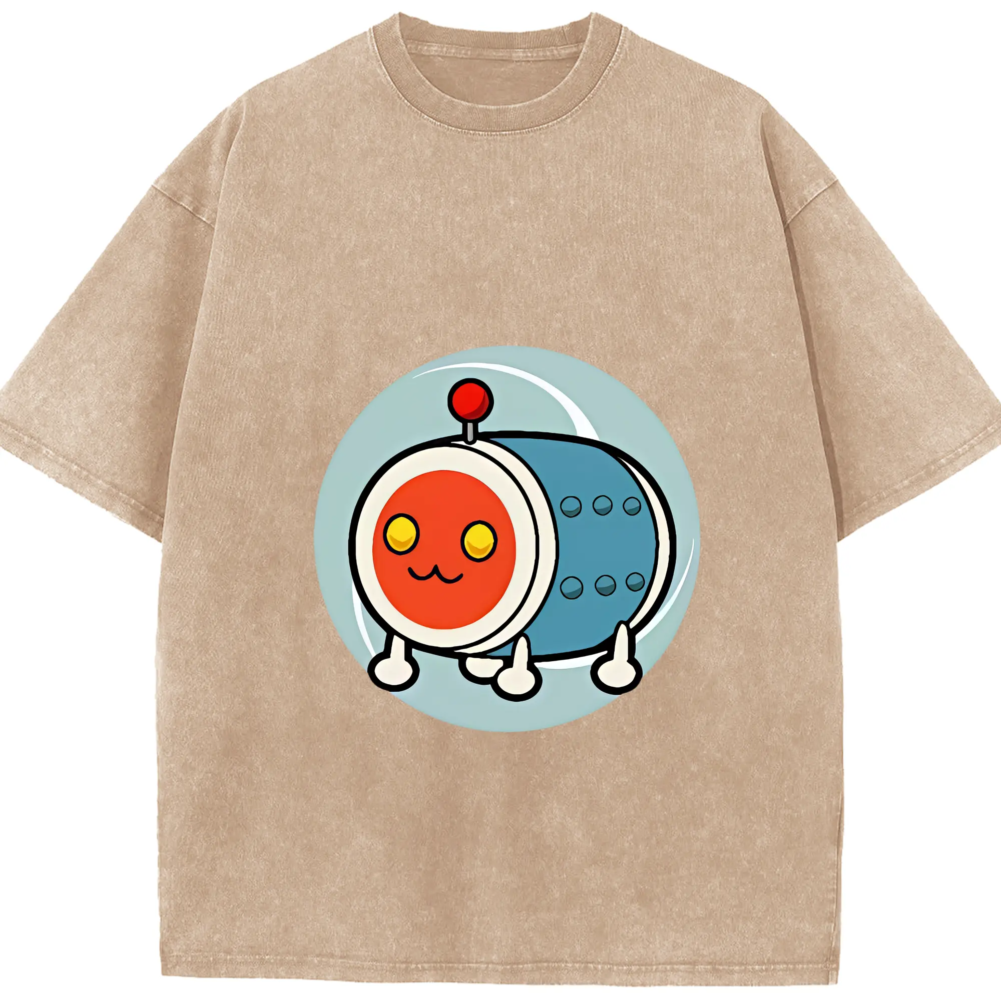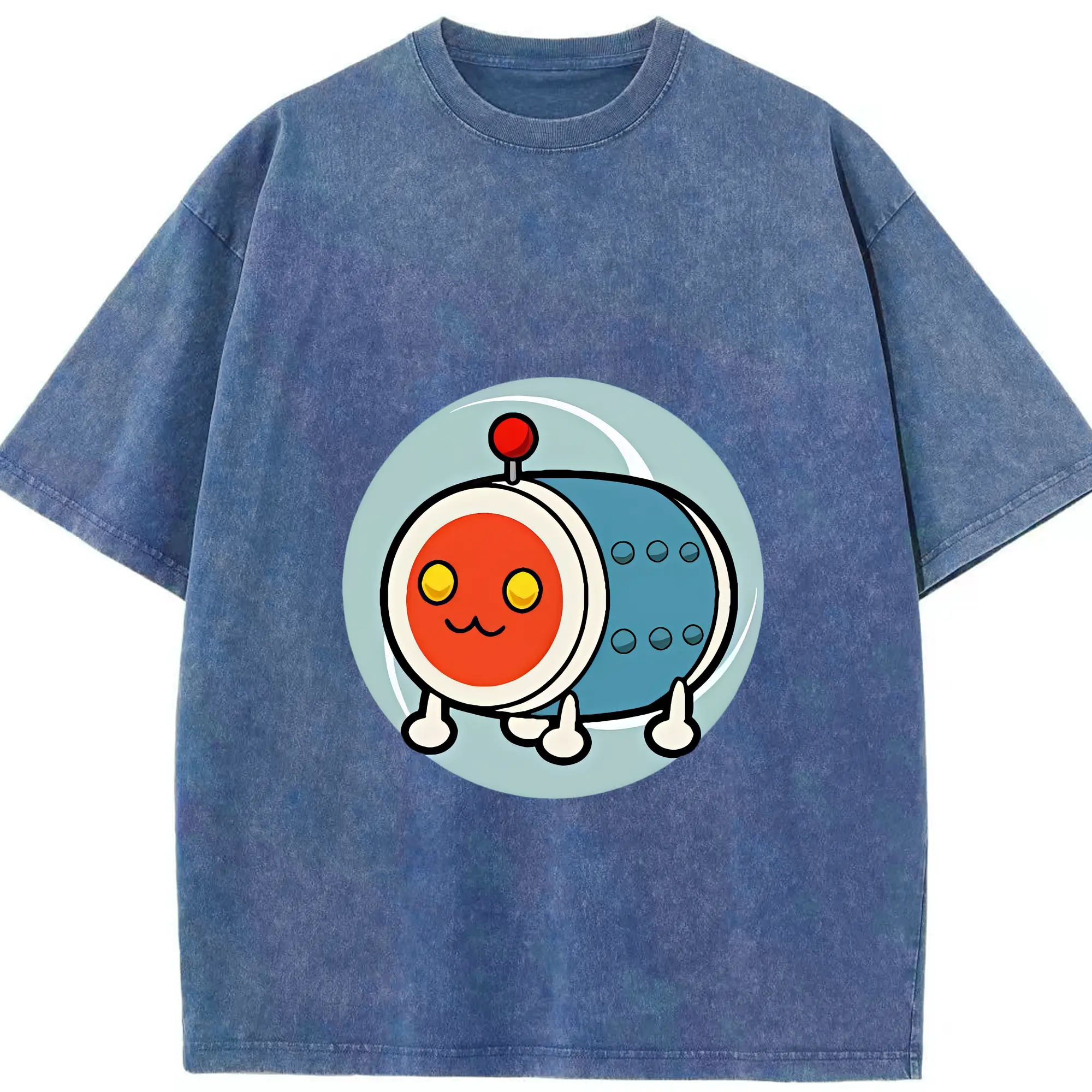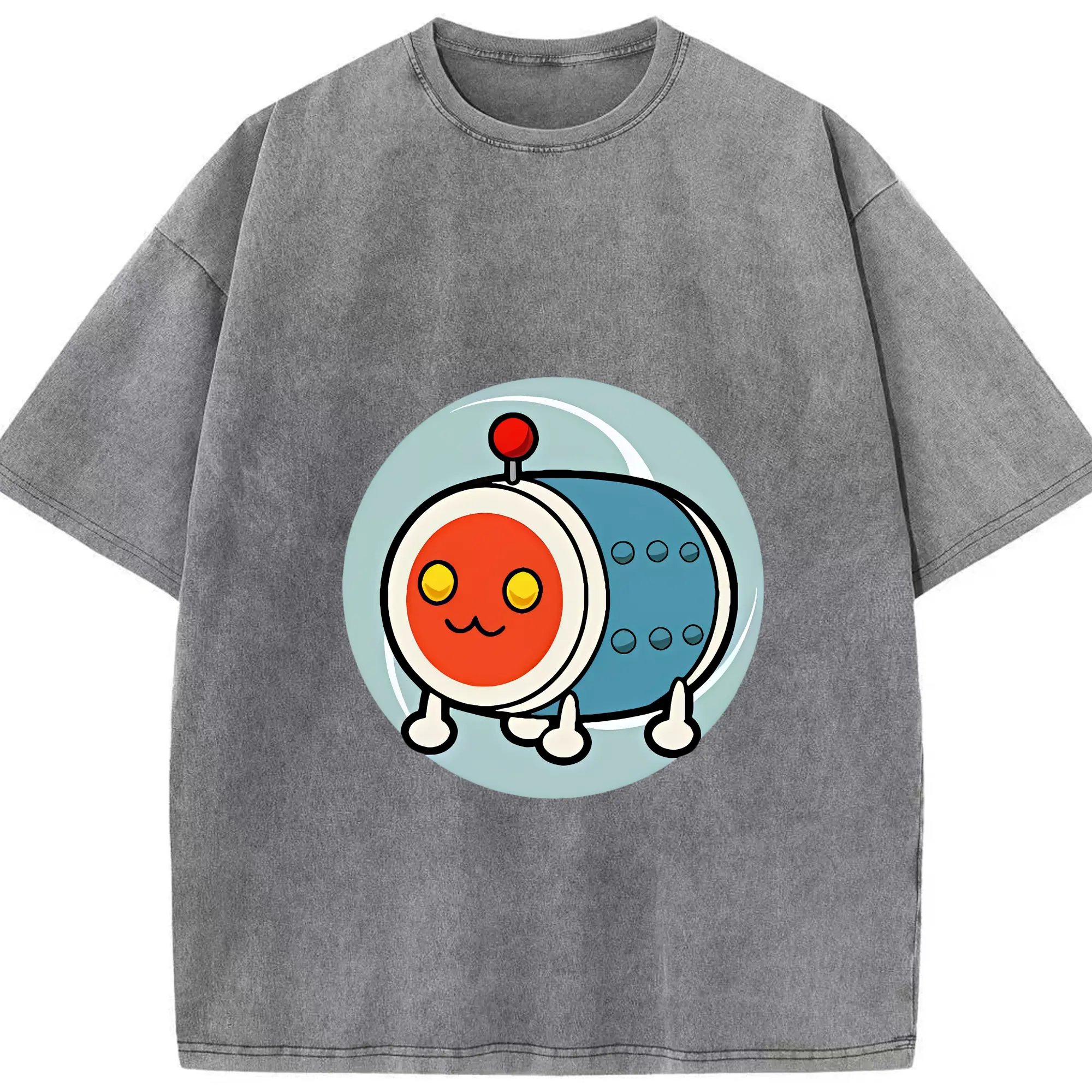 太鼓の達人 グッズ - 綿100% ヴィンテージ風 半袖Tシャツ ・ 背面プリント ・ 柔らか肌触り ・ 通気性 快適 ・ スポーツ カジュアル 外出用