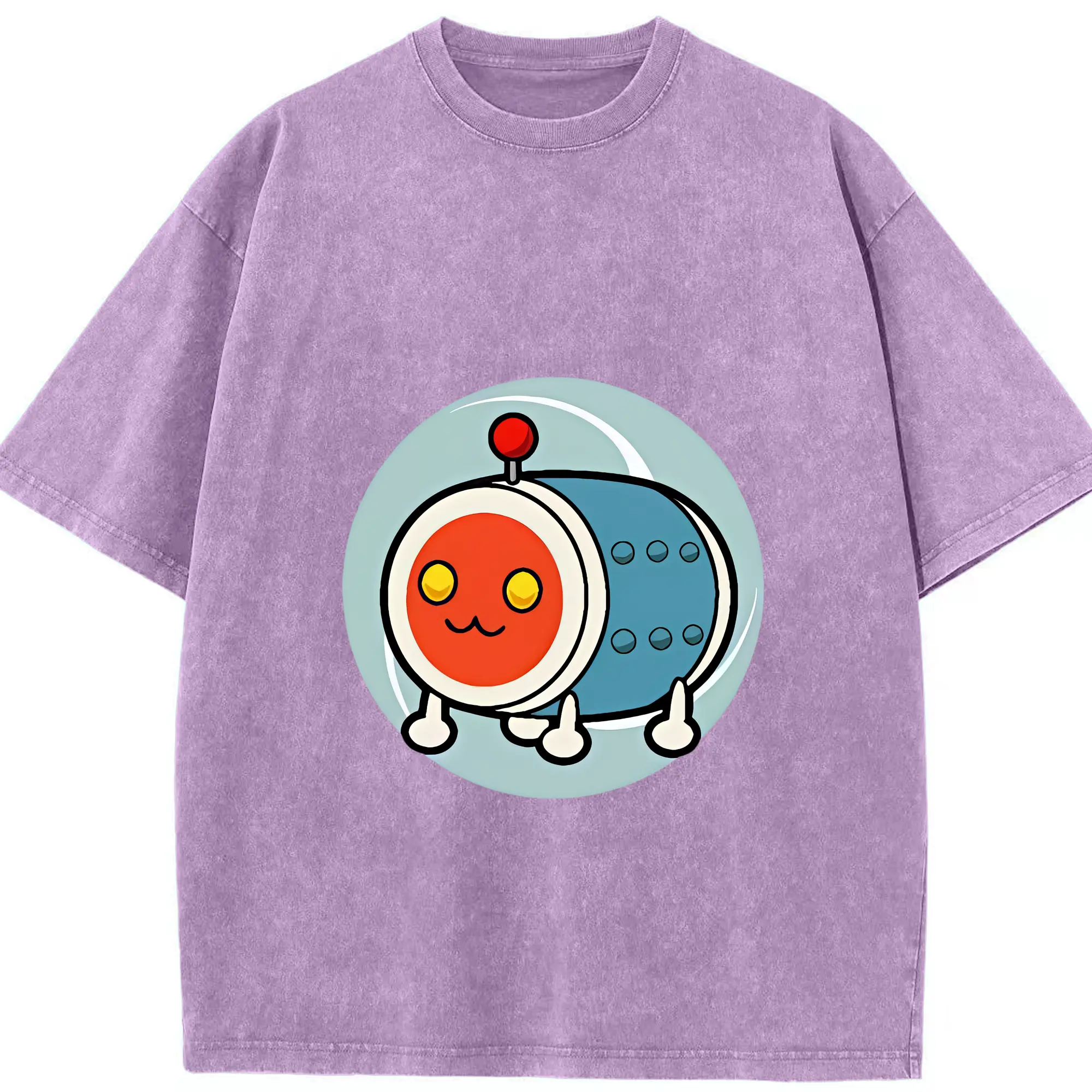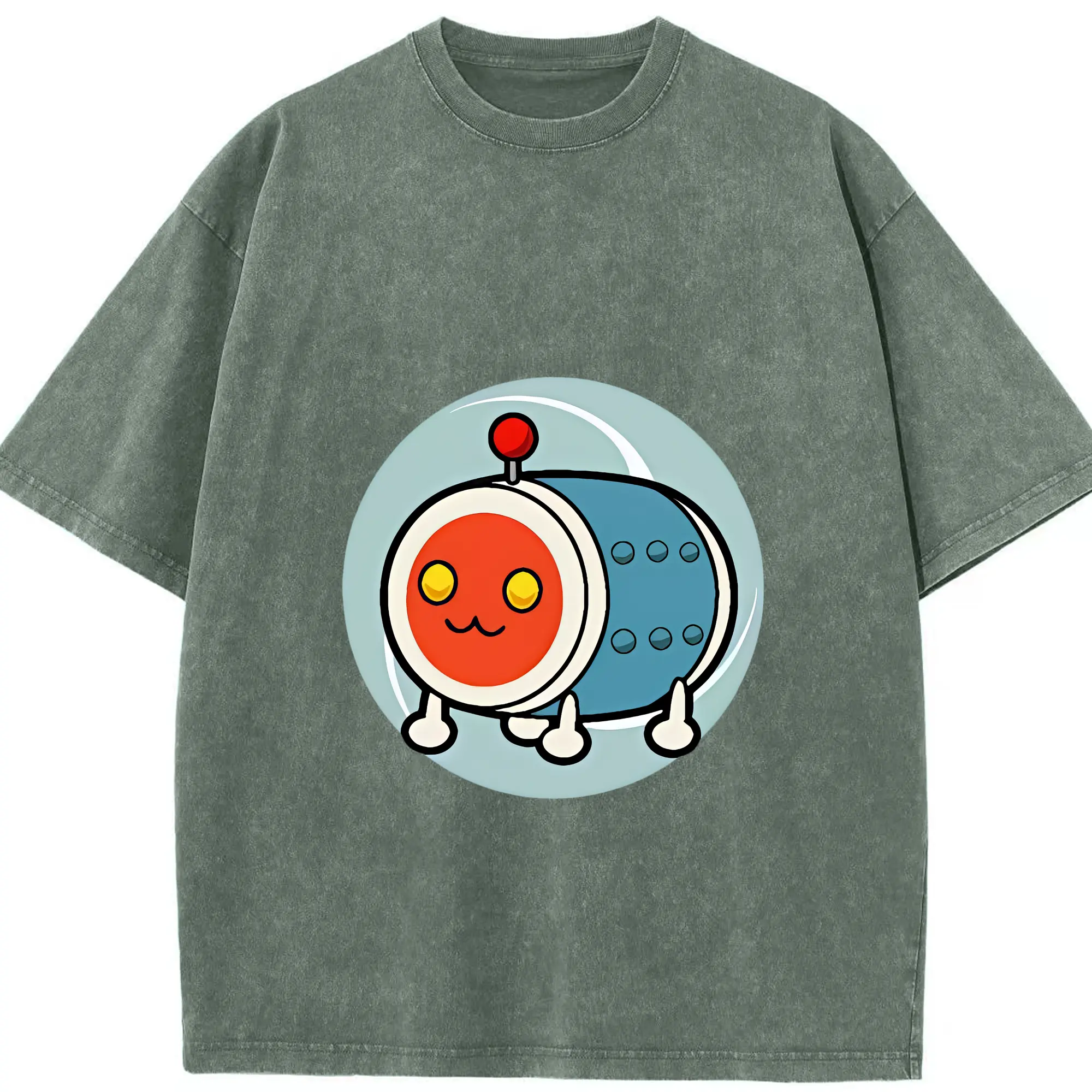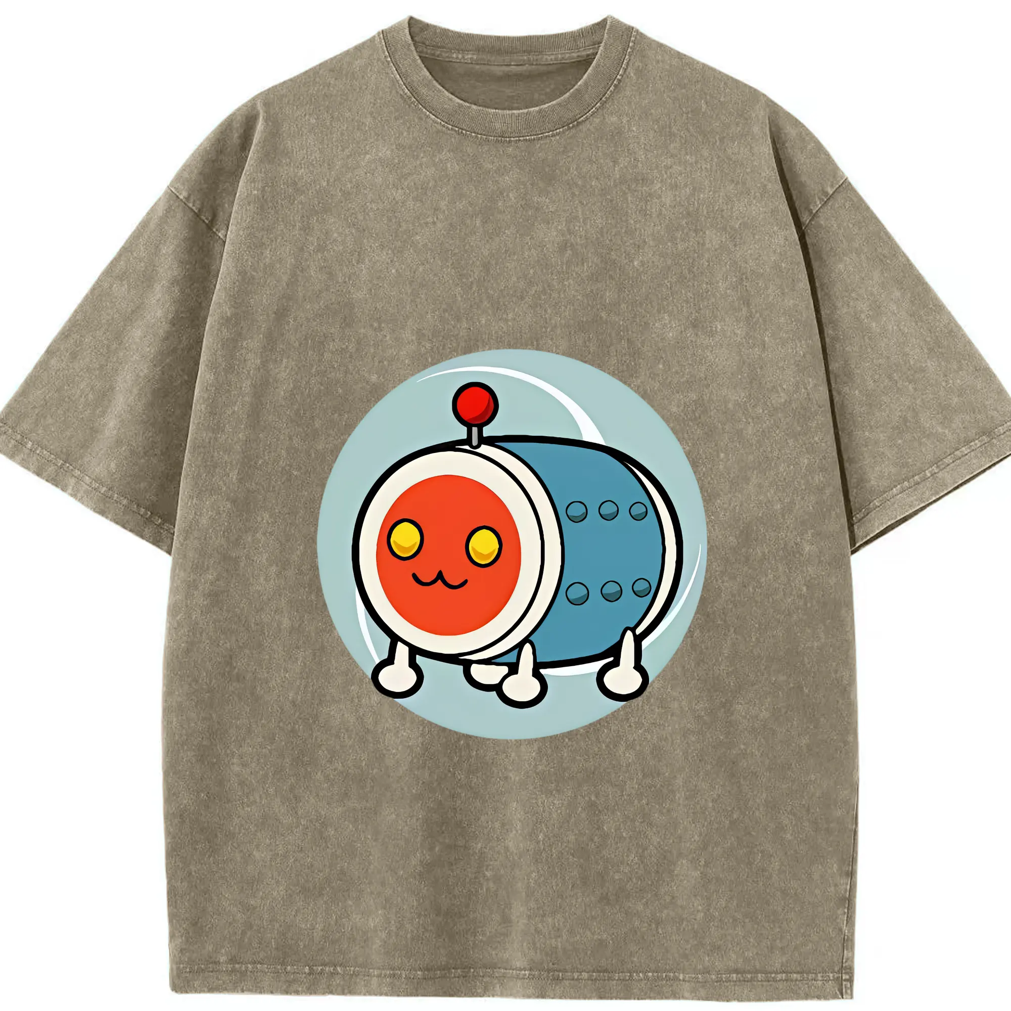 太鼓の達人 グッズ - 綿100% ヴィンテージ風 半袖Tシャツ ・ 背面プリント ・ 柔らか肌触り ・ 通気性 快適 ・ スポーツ カジュアル 外出用
