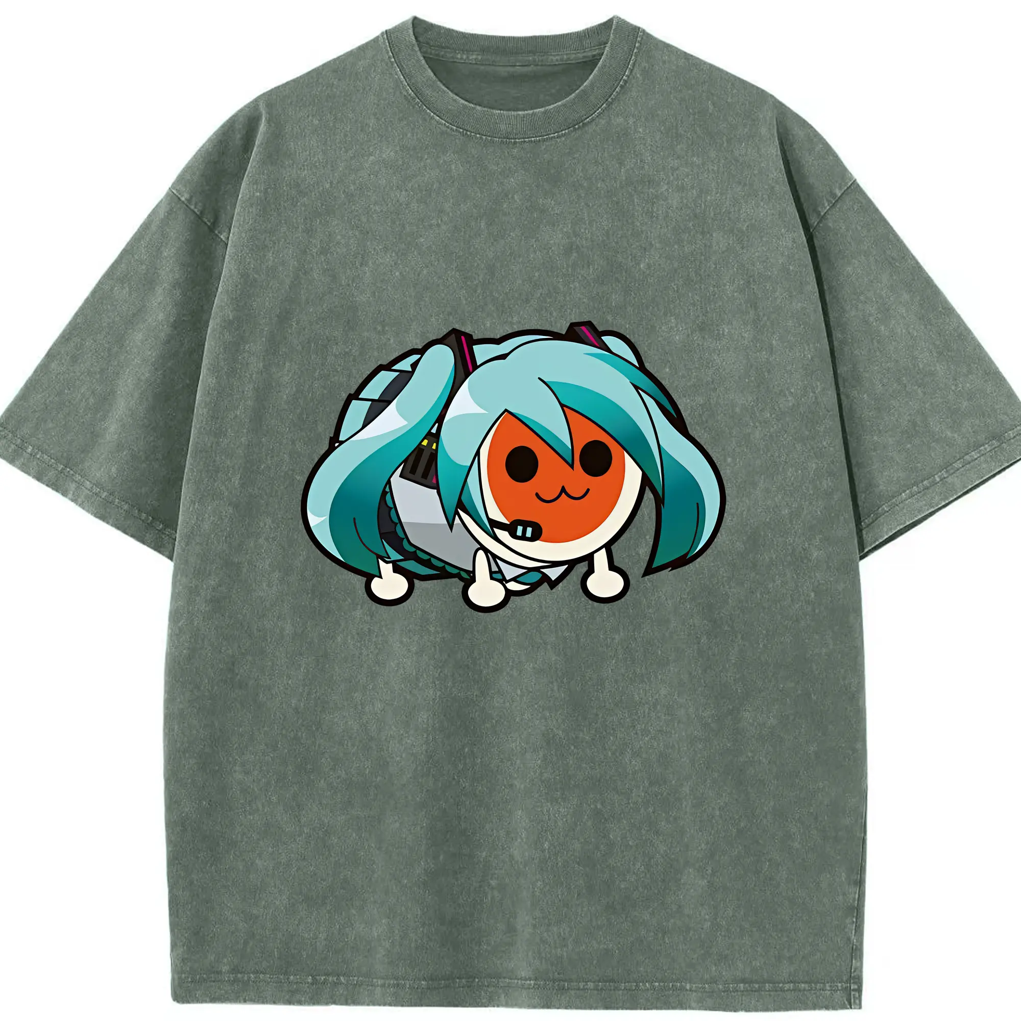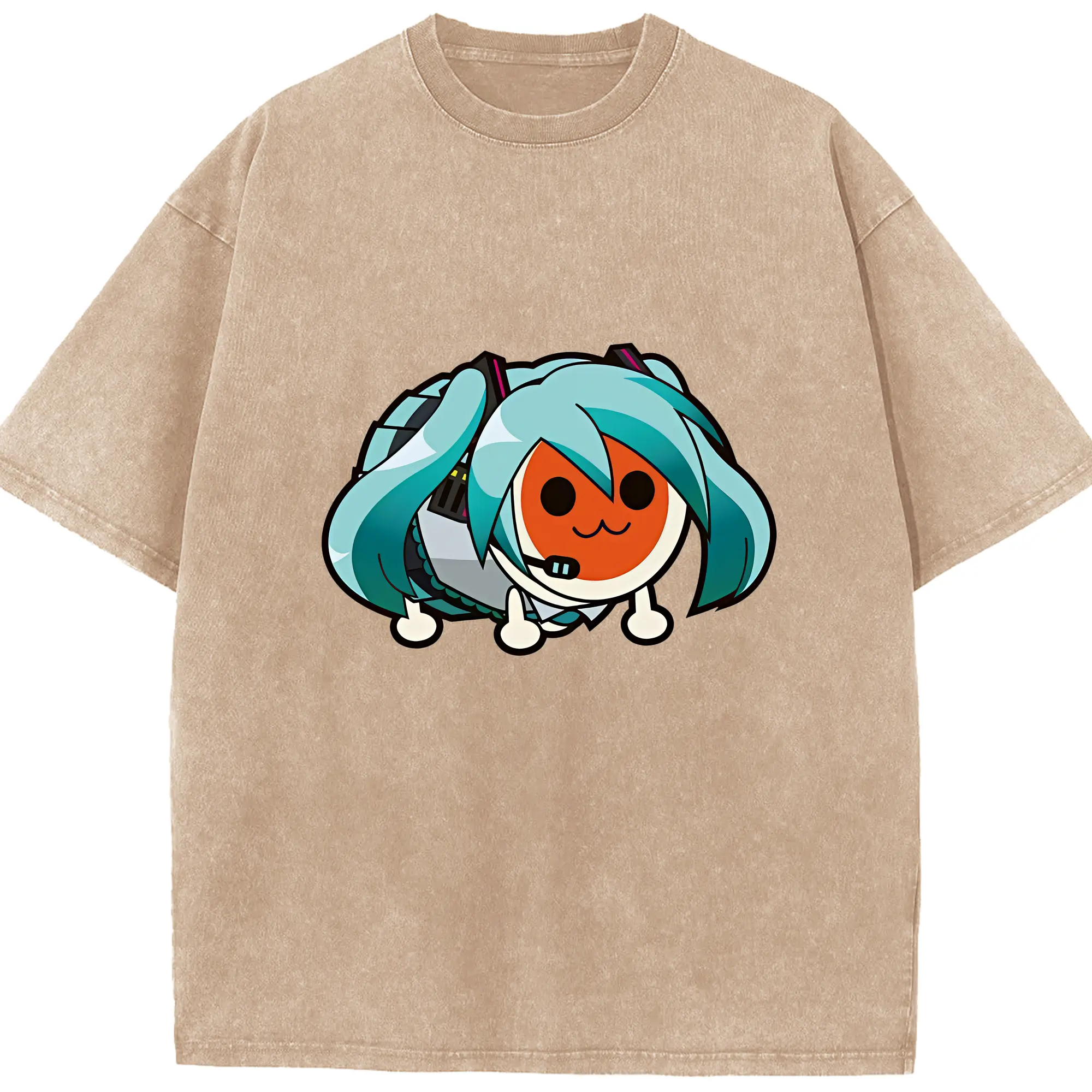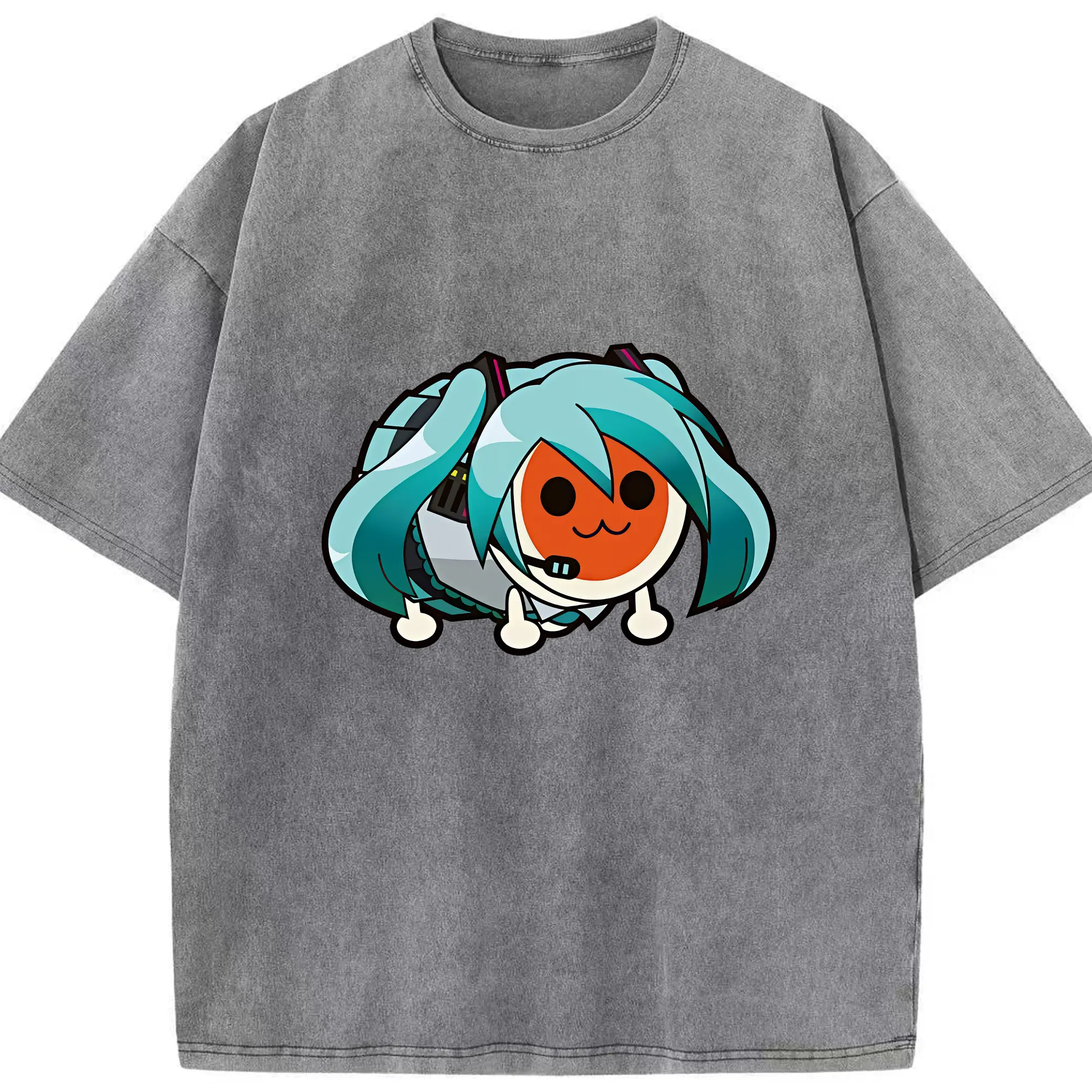 太鼓の達人 グッズ - 綿100% ヴィンテージ風 半袖Tシャツ ・ 背面プリント ・ 柔らか肌触り ・ 通気性 快適 ・ スポーツ カジュアル 外出用
