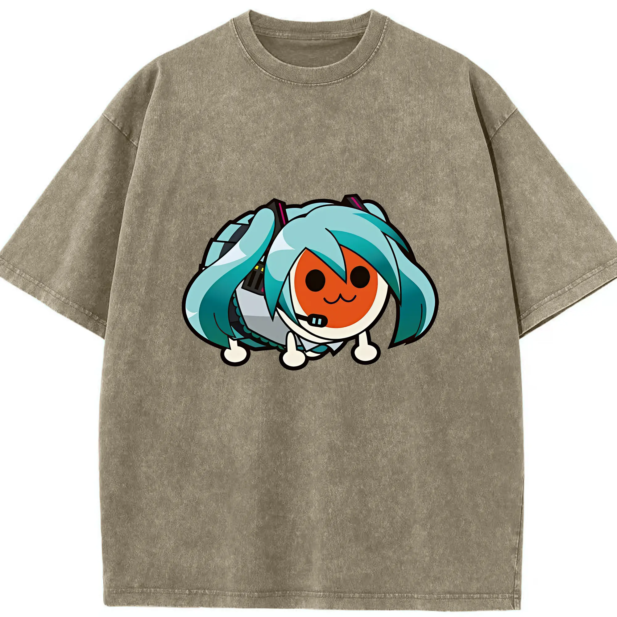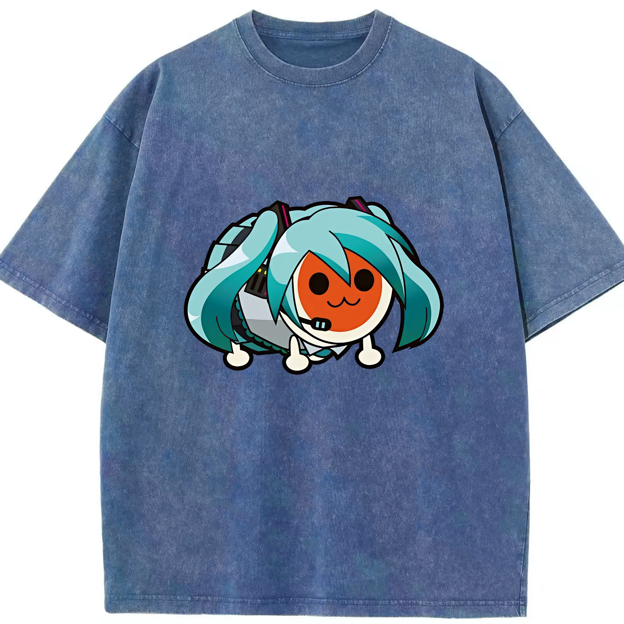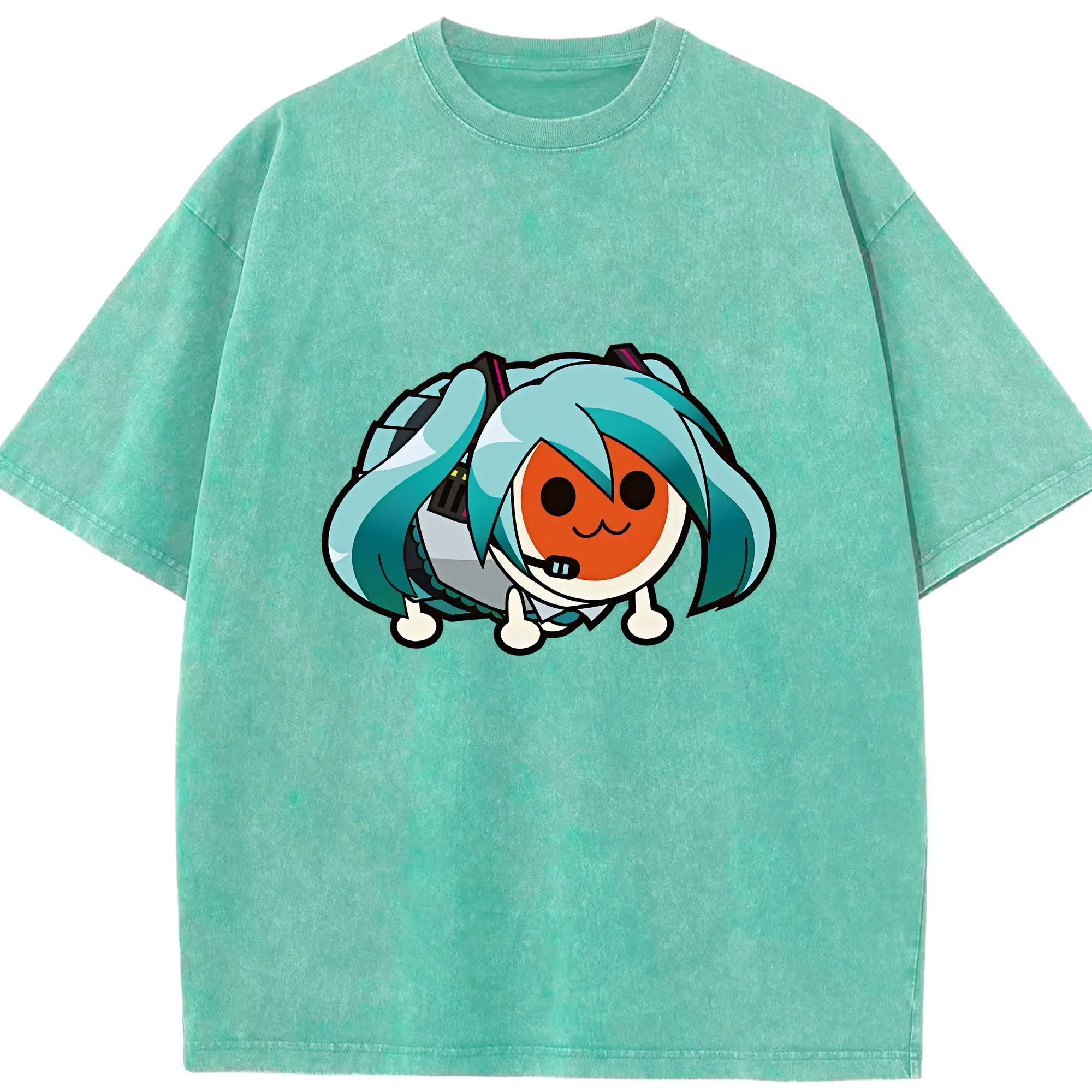 太鼓の達人 グッズ - 綿100% ヴィンテージ風 半袖Tシャツ ・ 背面プリント ・ 柔らか肌触り ・ 通気性 快適 ・ スポーツ カジュアル 外出用