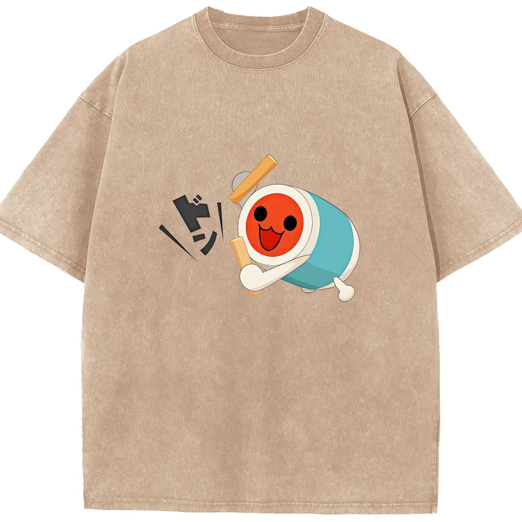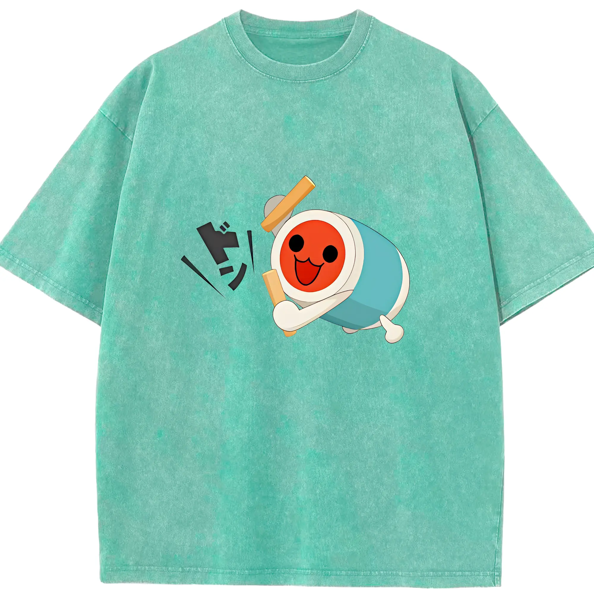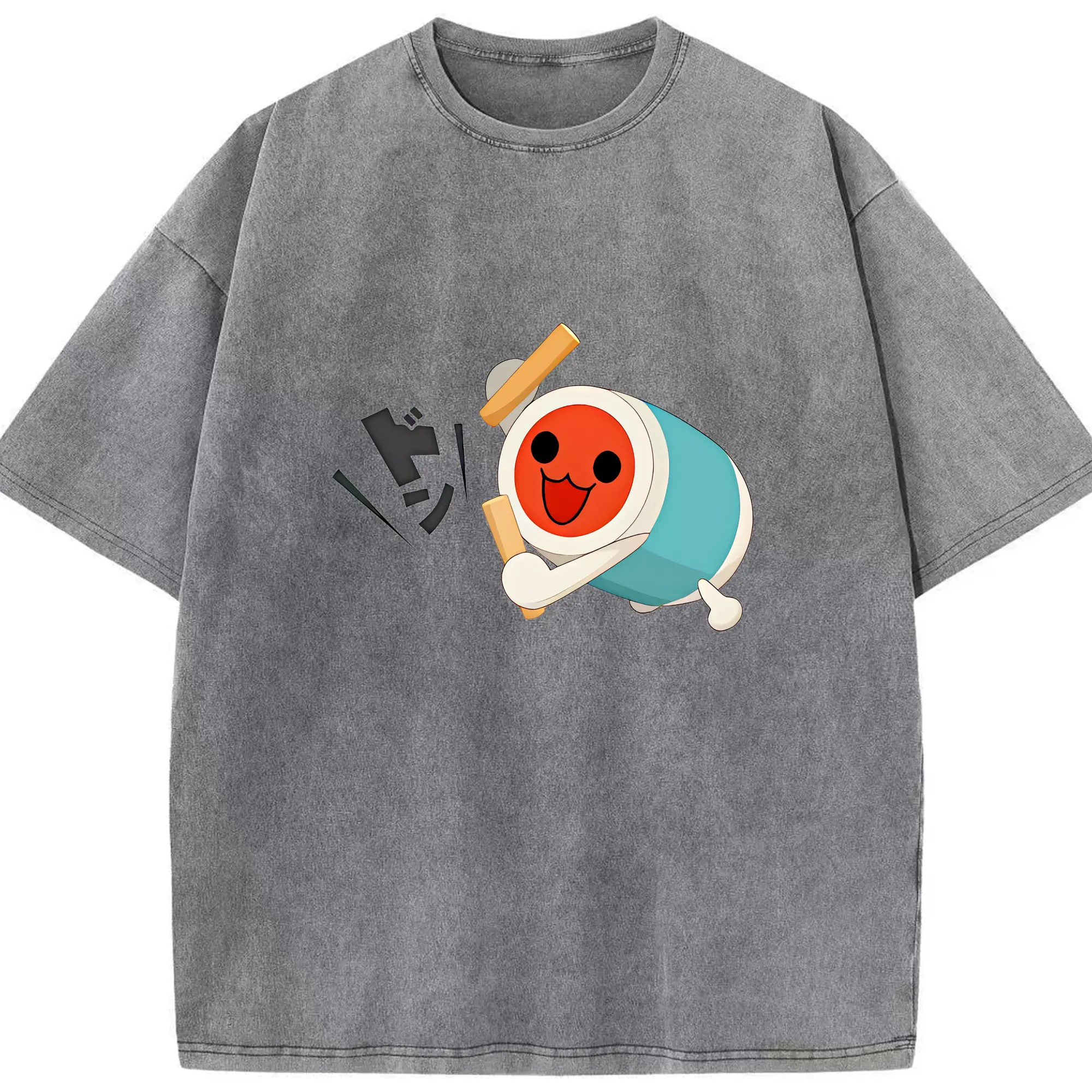 太鼓の達人 グッズ - 綿100% ヴィンテージ風 半袖Tシャツ ・ 背面プリント ・ 柔らか肌触り ・ 通気性 快適 ・ スポーツ カジュアル 外出用