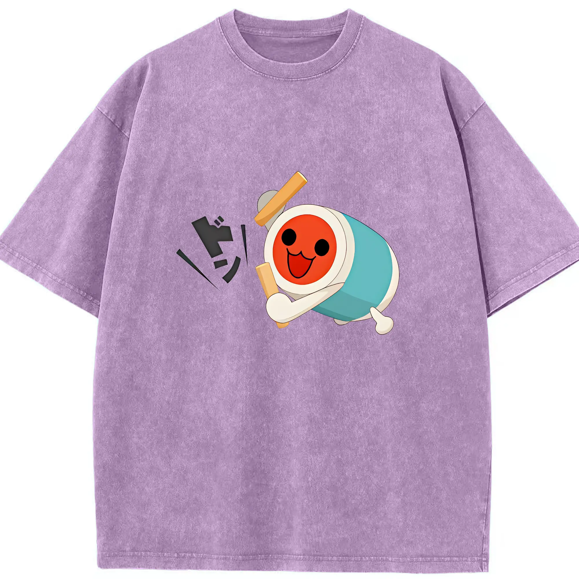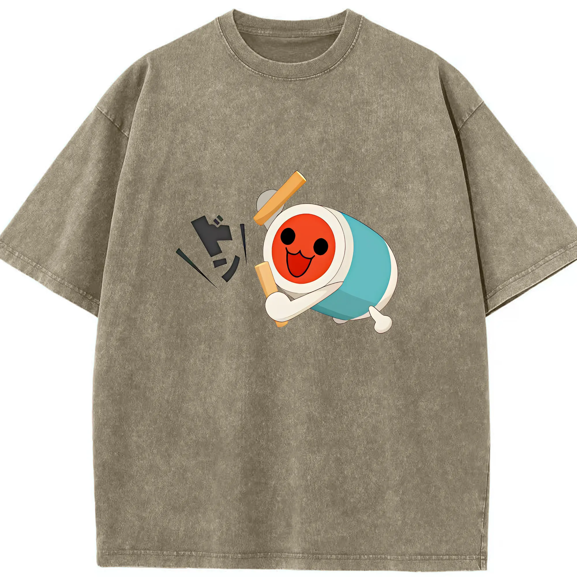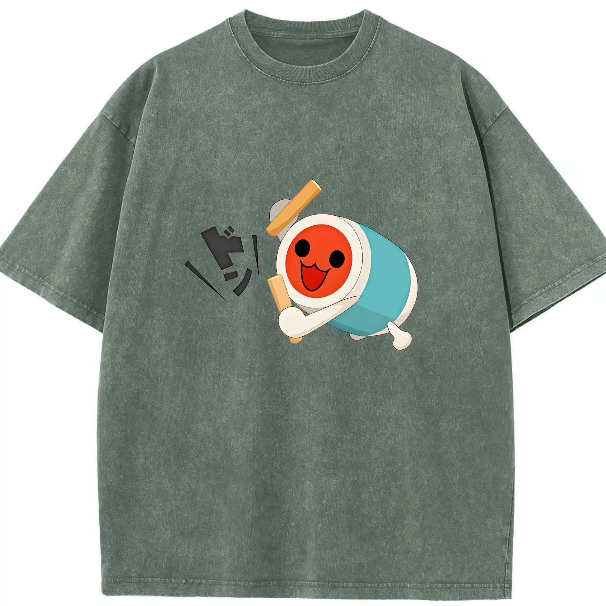 太鼓の達人 グッズ - 綿100% ヴィンテージ風 半袖Tシャツ ・ 背面プリント ・ 柔らか肌触り ・ 通気性 快適 ・ スポーツ カジュアル 外出用