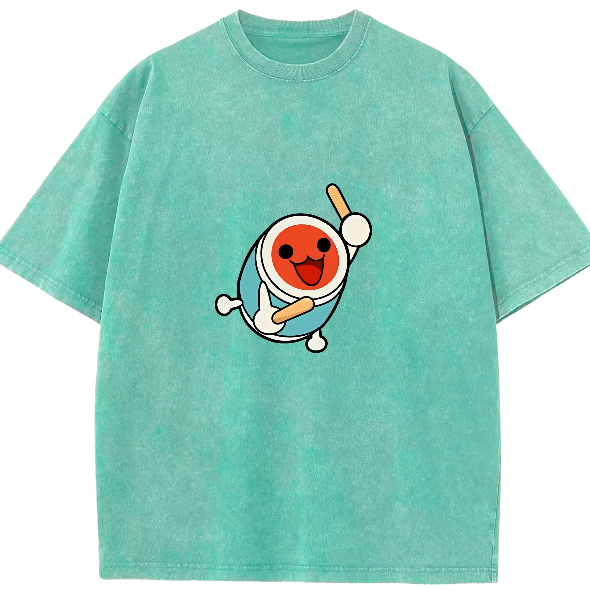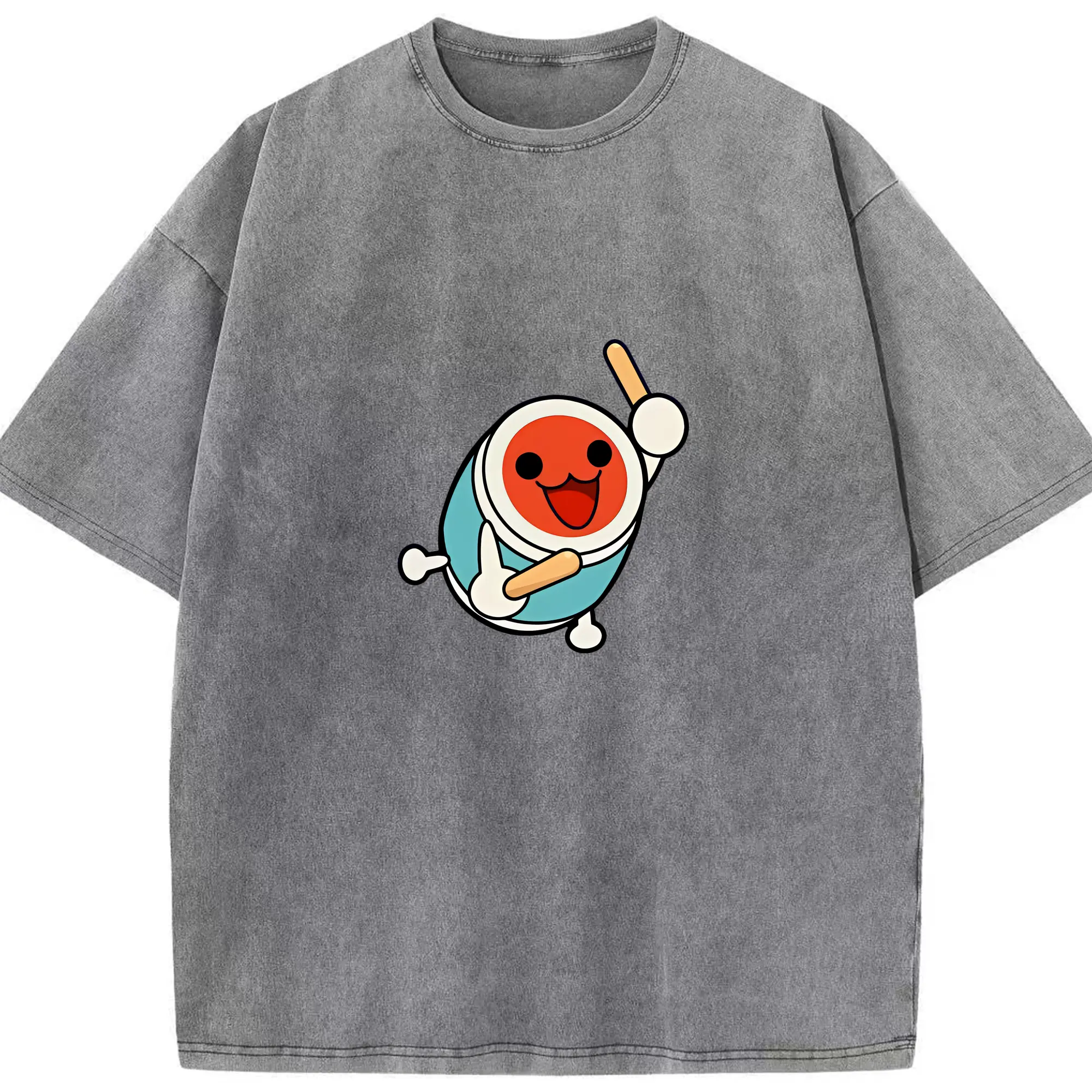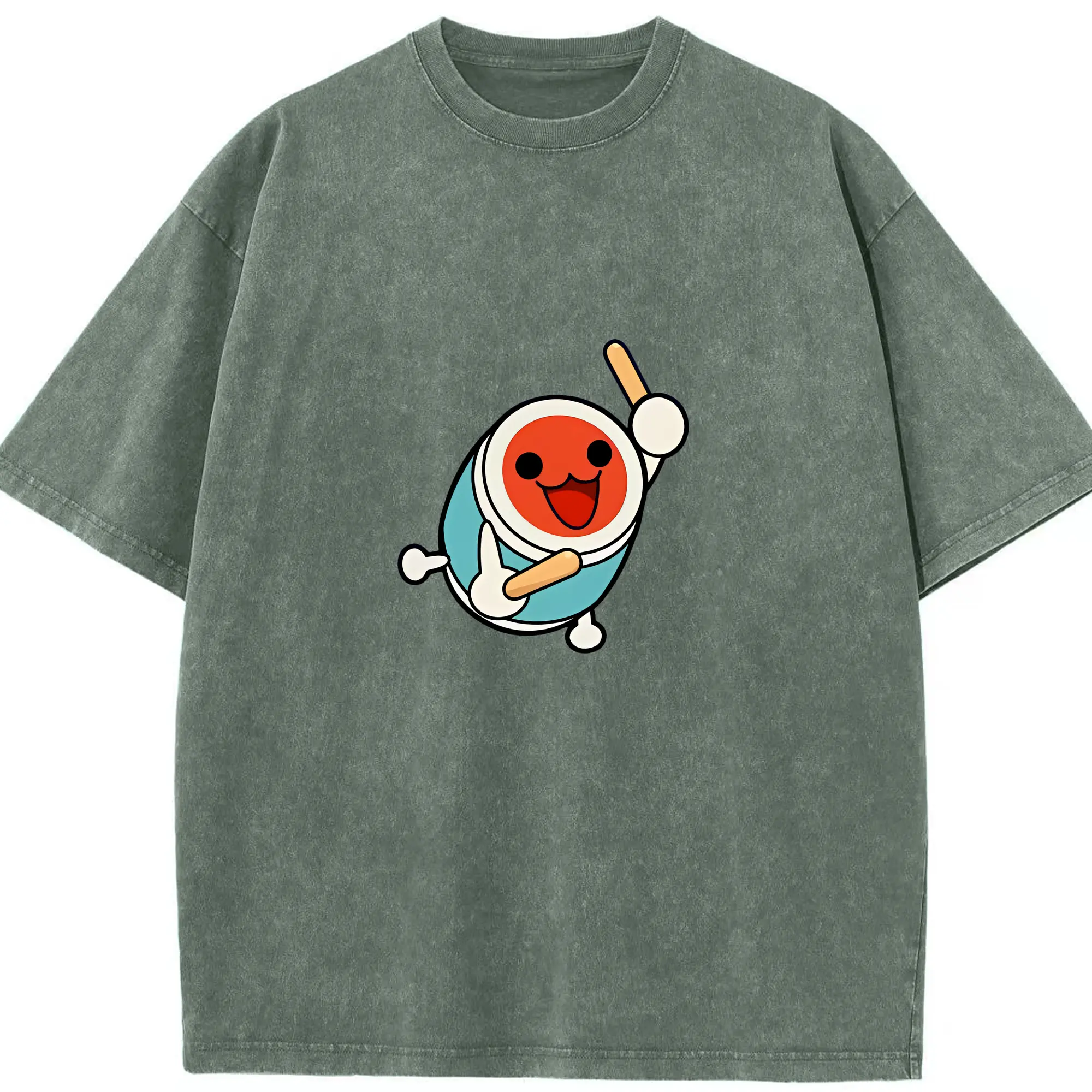 太鼓の達人 グッズ - 綿100% ヴィンテージ風 半袖Tシャツ ・ 背面プリント ・ 柔らか肌触り ・ 通気性 快適 ・ スポーツ カジュアル 外出用