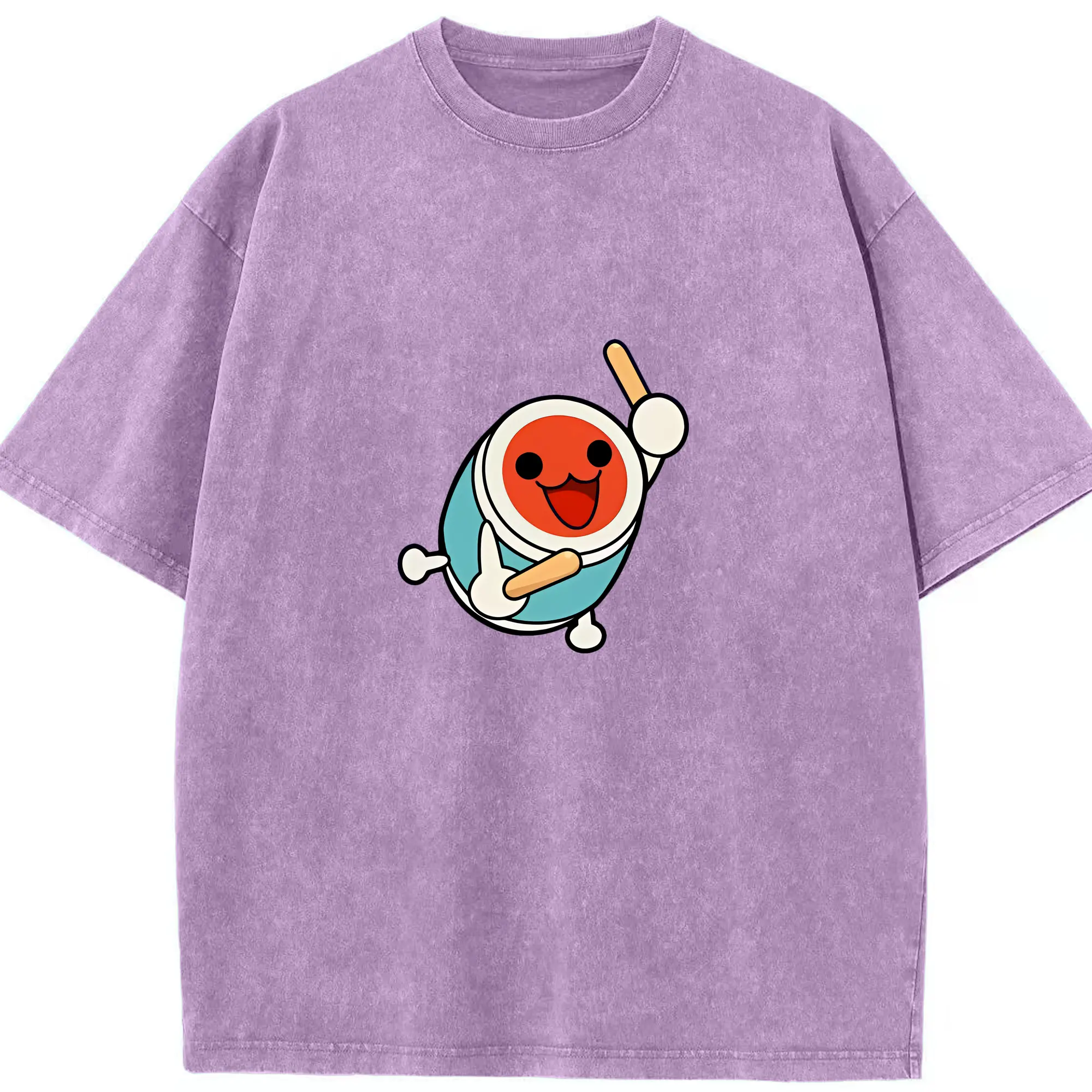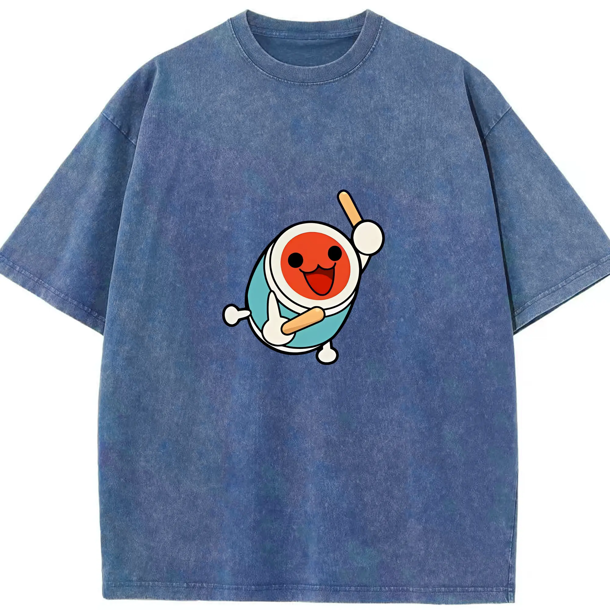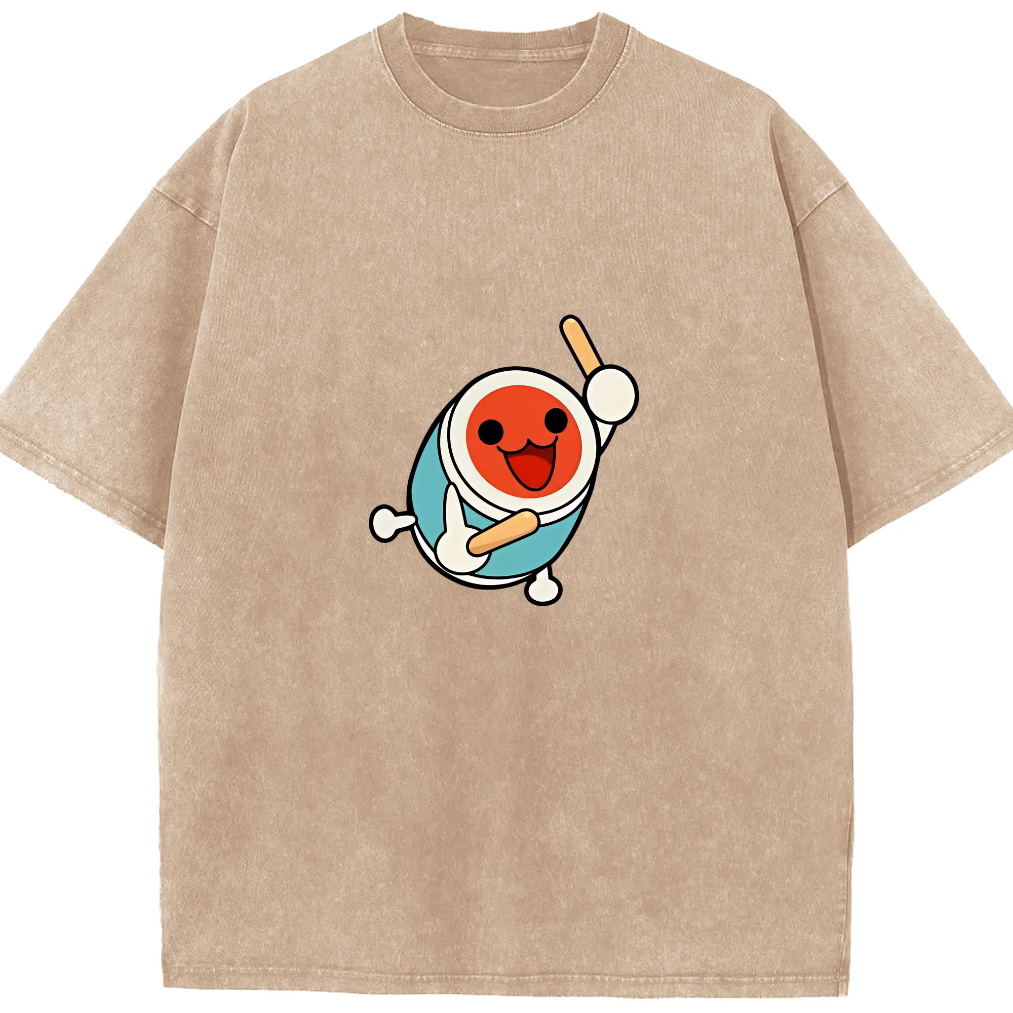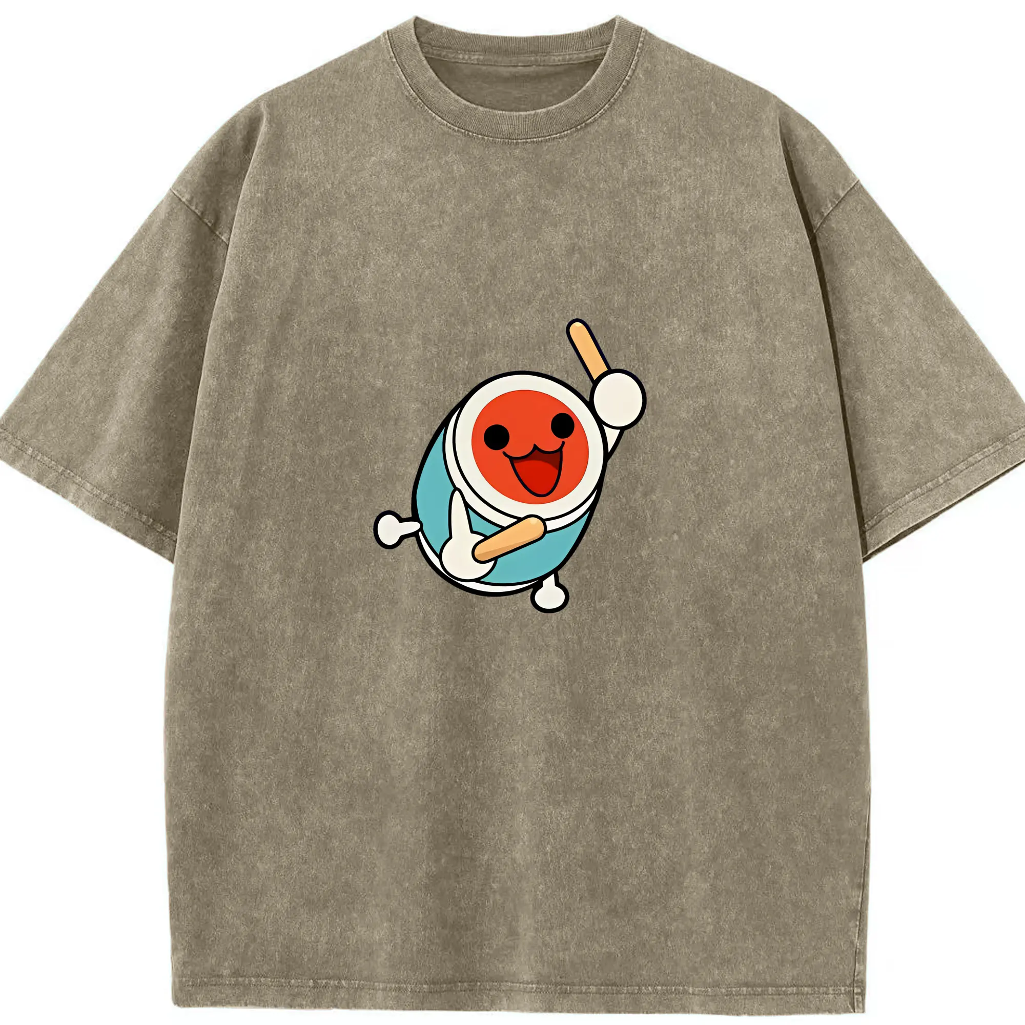 太鼓の達人 グッズ - 綿100% ヴィンテージ風 半袖Tシャツ ・ 背面プリント ・ 柔らか肌触り ・ 通気性 快適 ・ スポーツ カジュアル 外出用