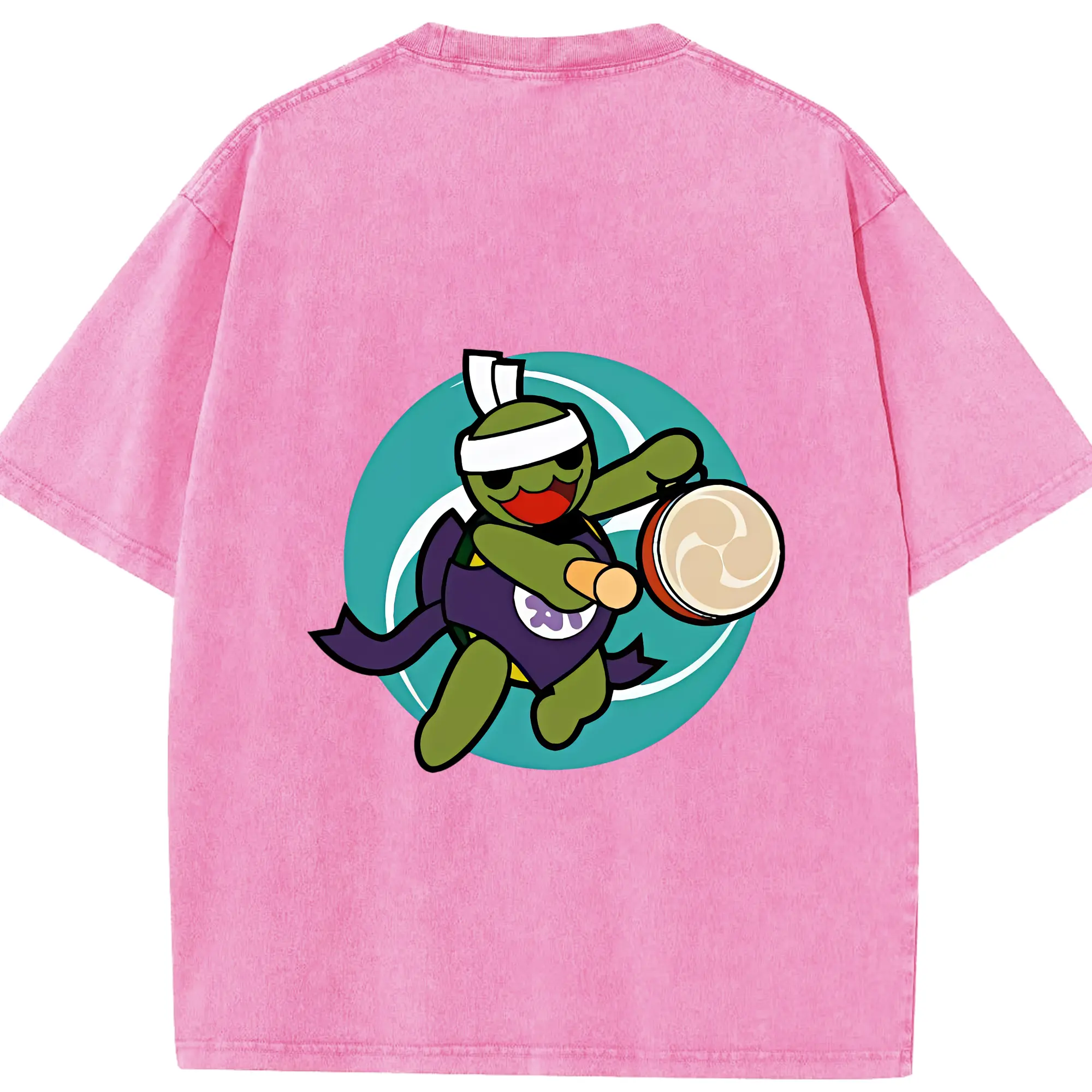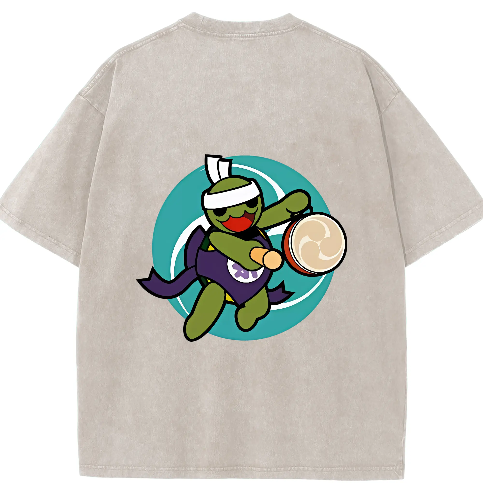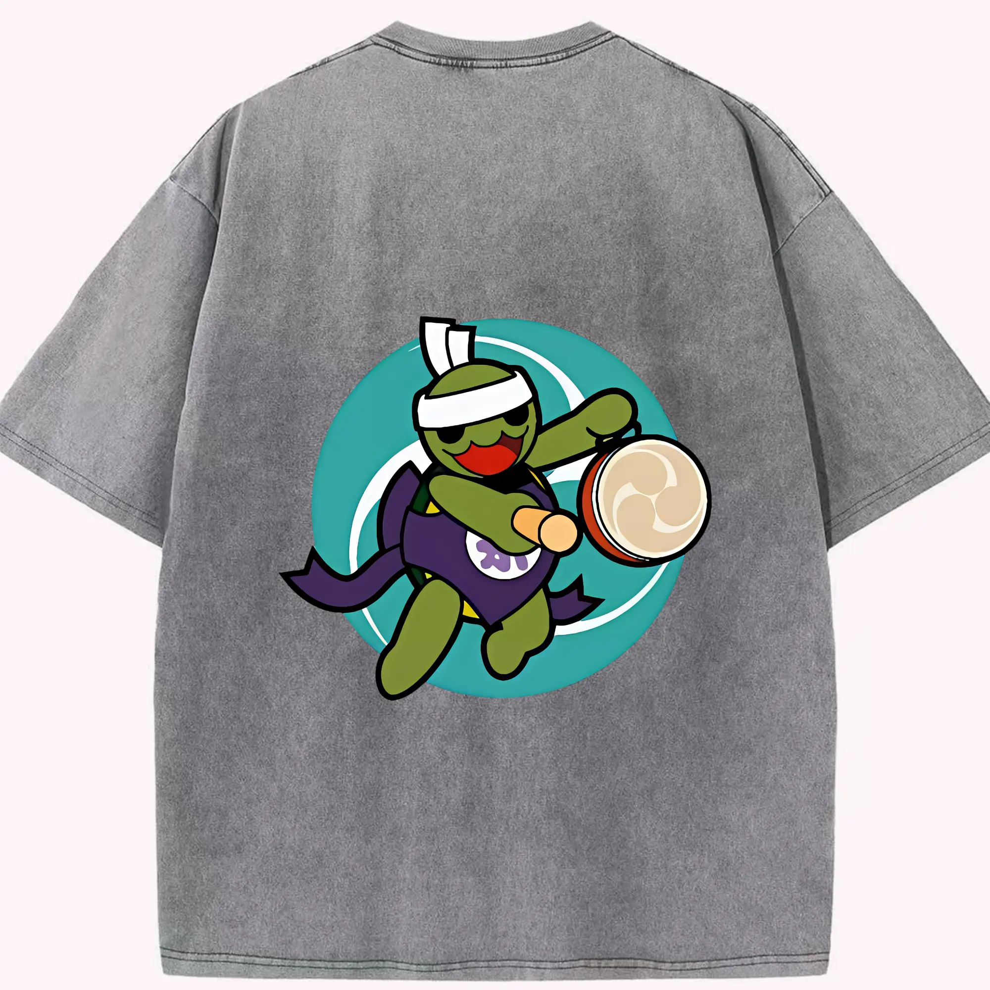 太鼓の達人 グッズ - 綿100% ヴィンテージ風 半袖Tシャツ ・ フロントプリント ・ 柔らか肌触り ・ 通気性 快適 ・ スポーツ カジュアル 外出用