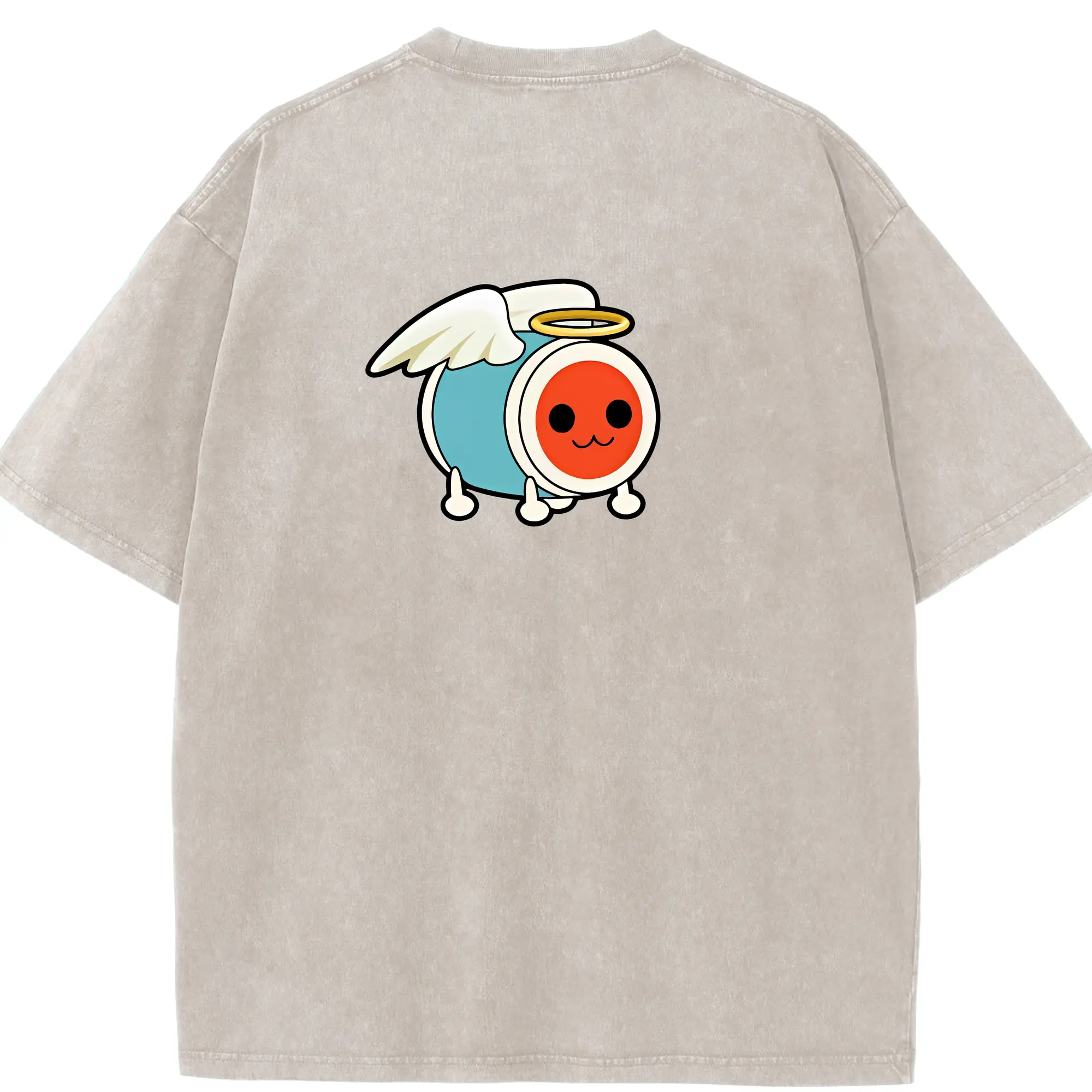 太鼓の達人 グッズ - 綿100% ヴィンテージ風 半袖Tシャツ ・ フロントプリント ・ 柔らか肌触り ・ 通気性 快適 ・ スポーツ カジュアル 外出用