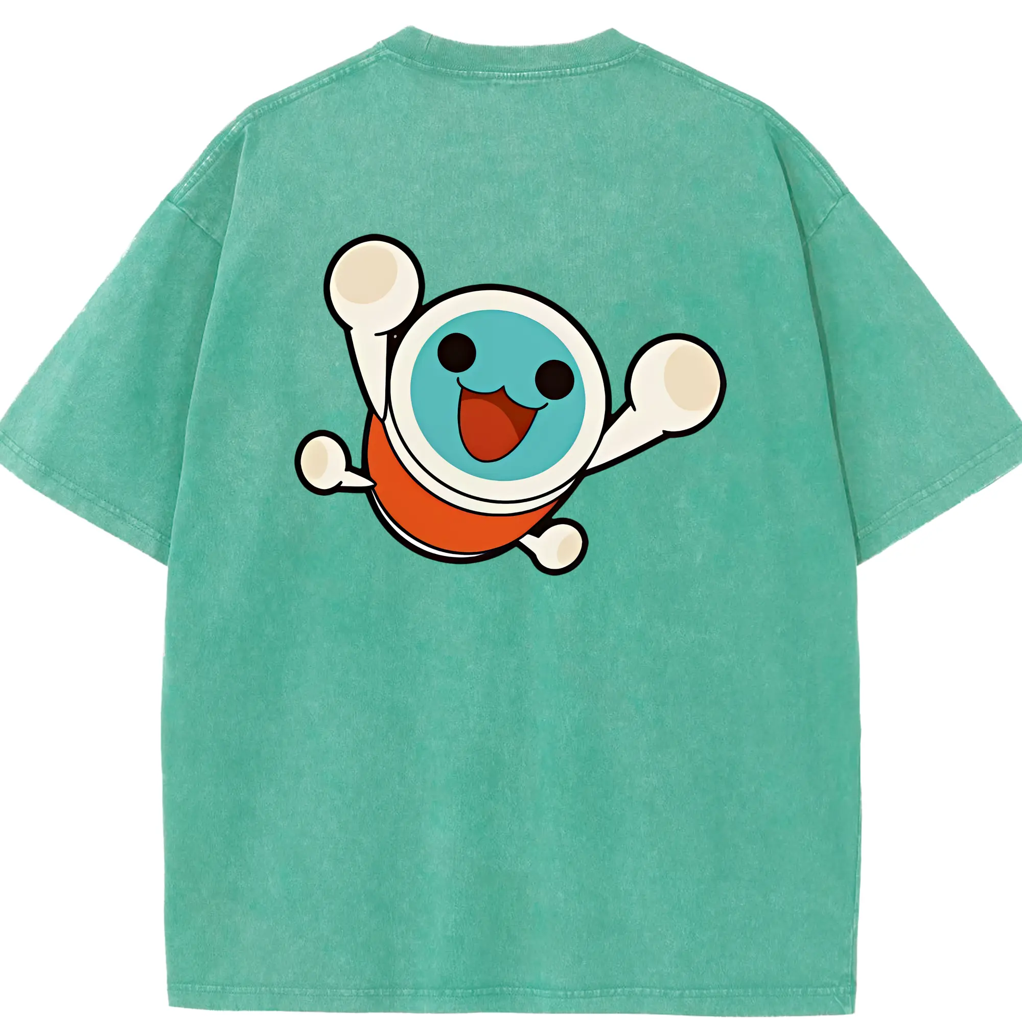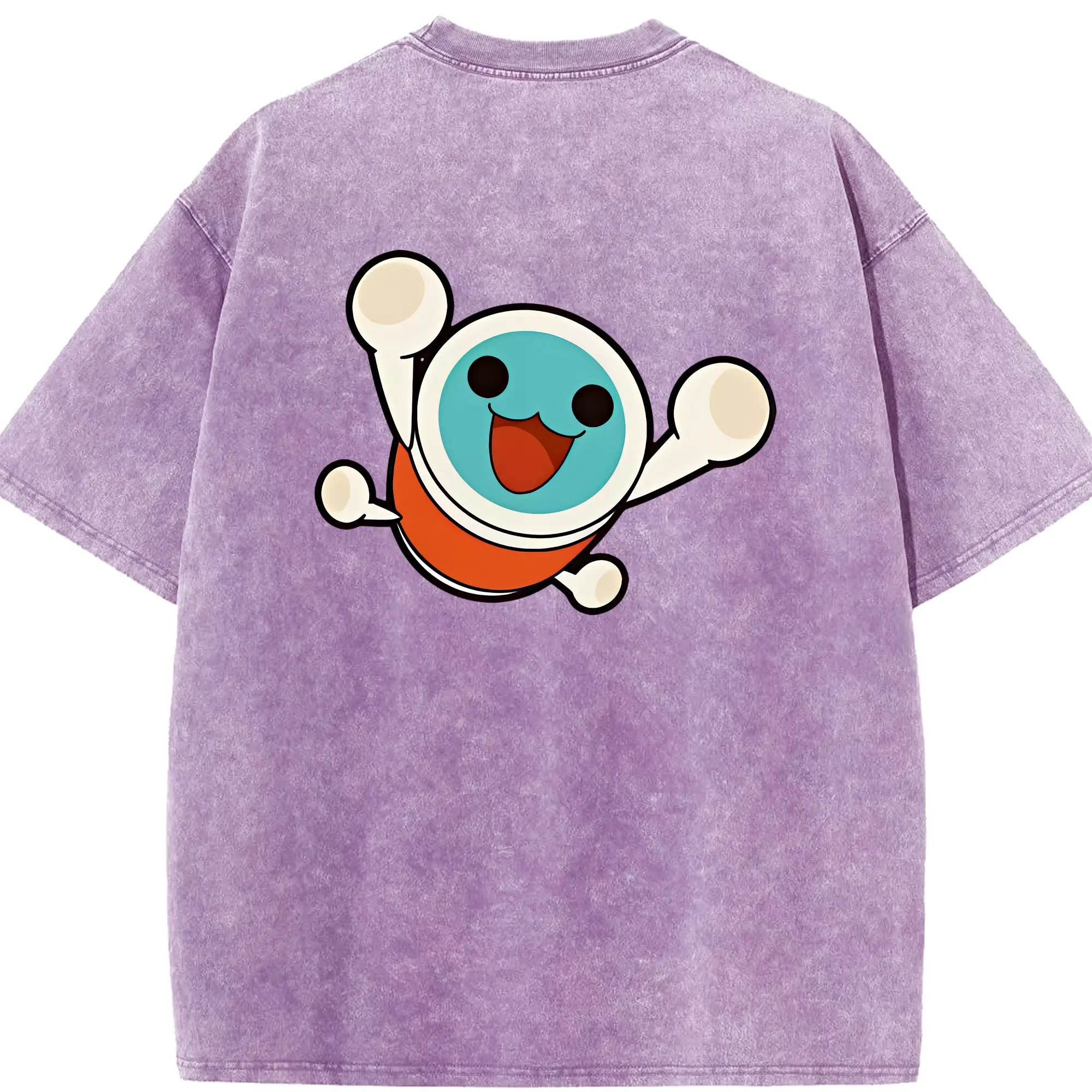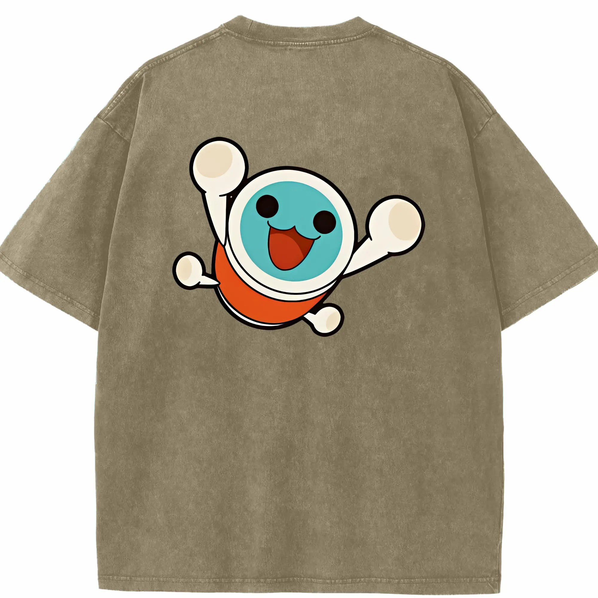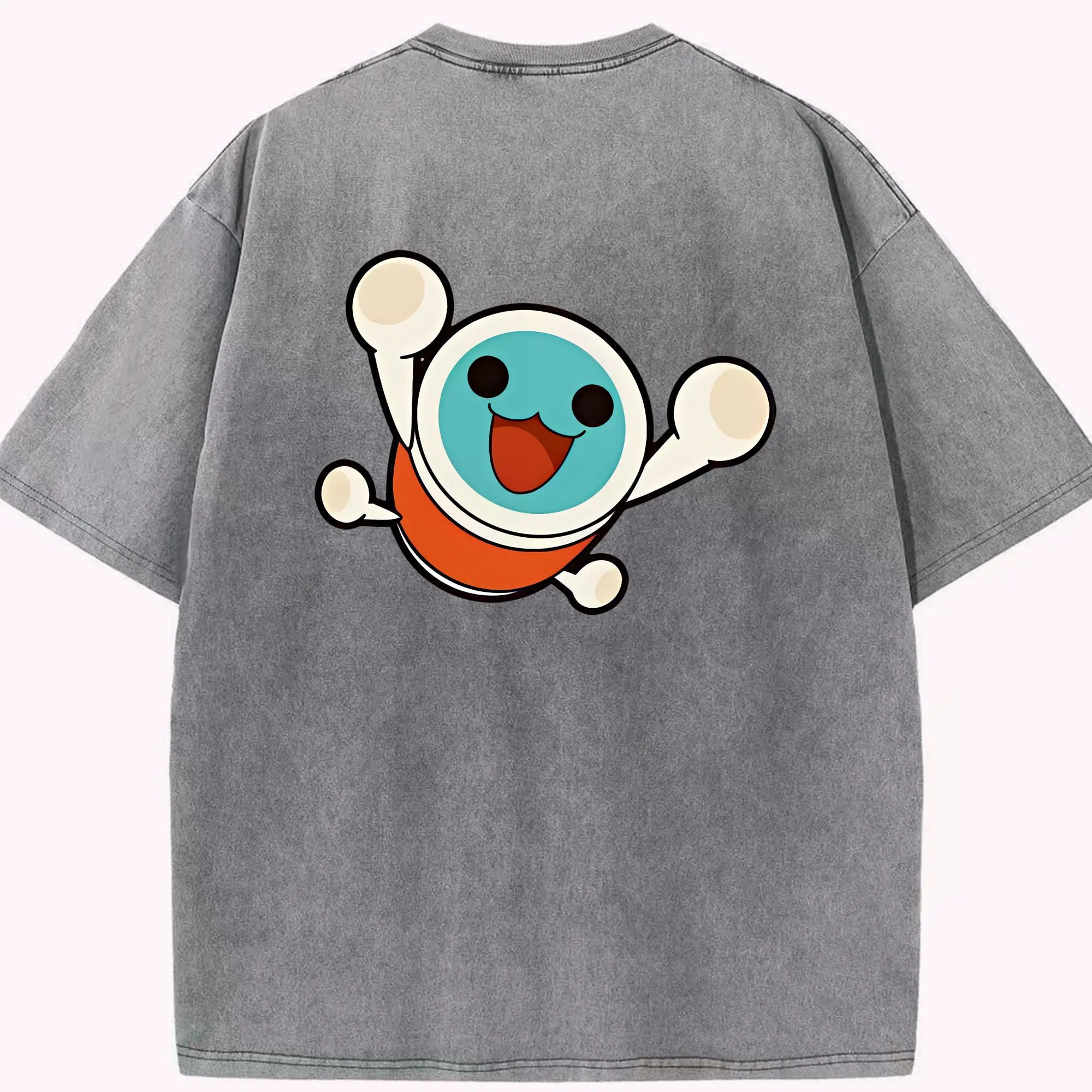 太鼓の達人 グッズ - 綿100% ヴィンテージ風 半袖Tシャツ ・ フロントプリント ・ 柔らか肌触り ・ 通気性 快適 ・ スポーツ カジュアル 外出用