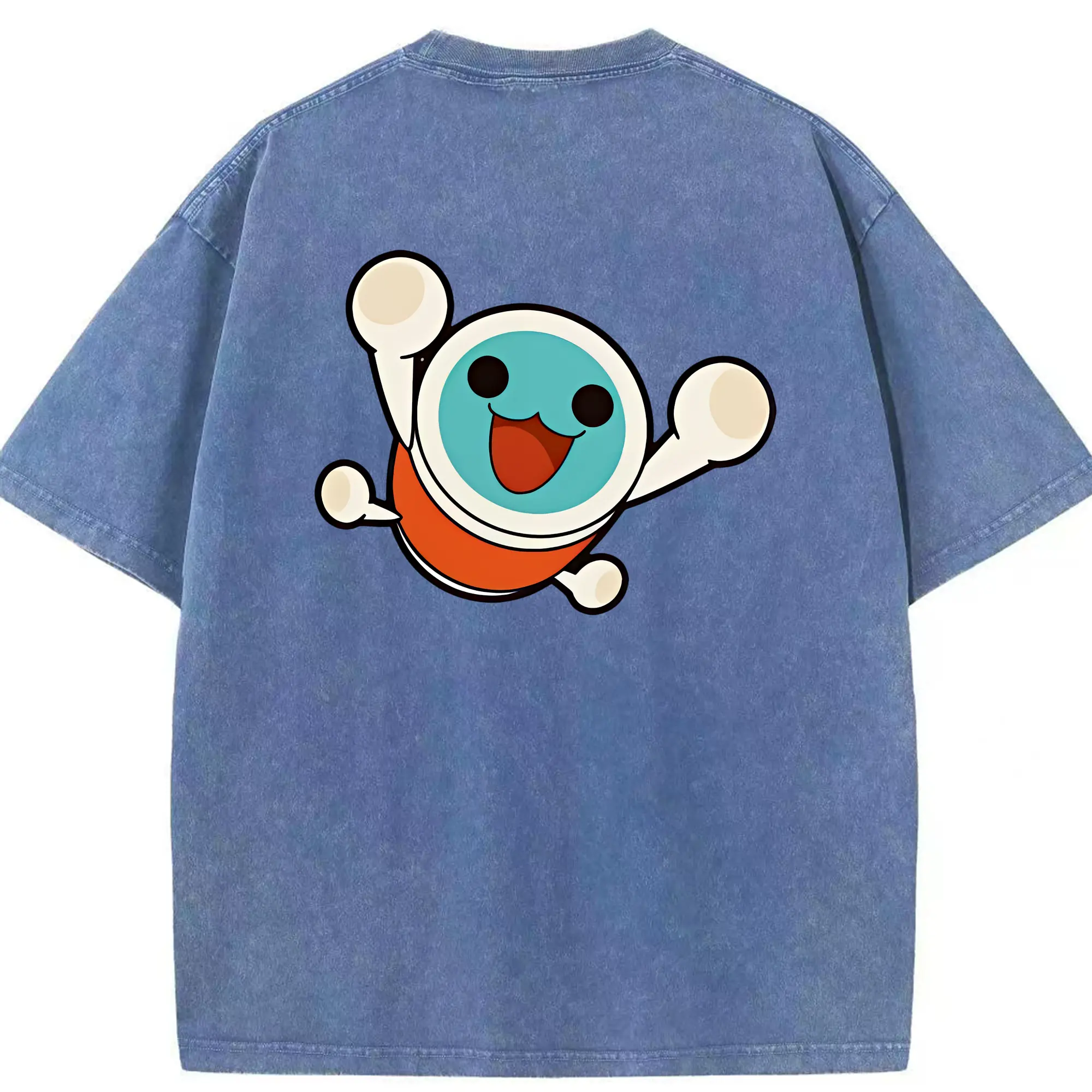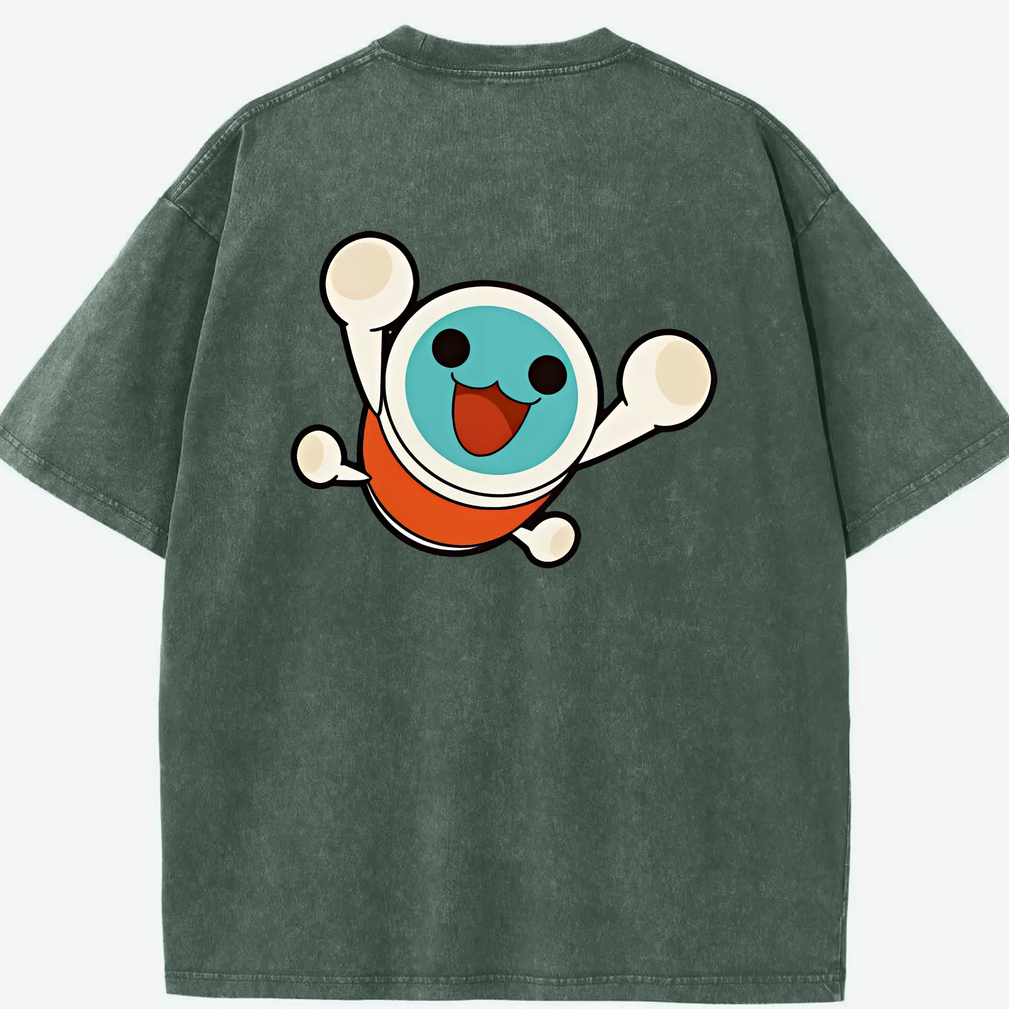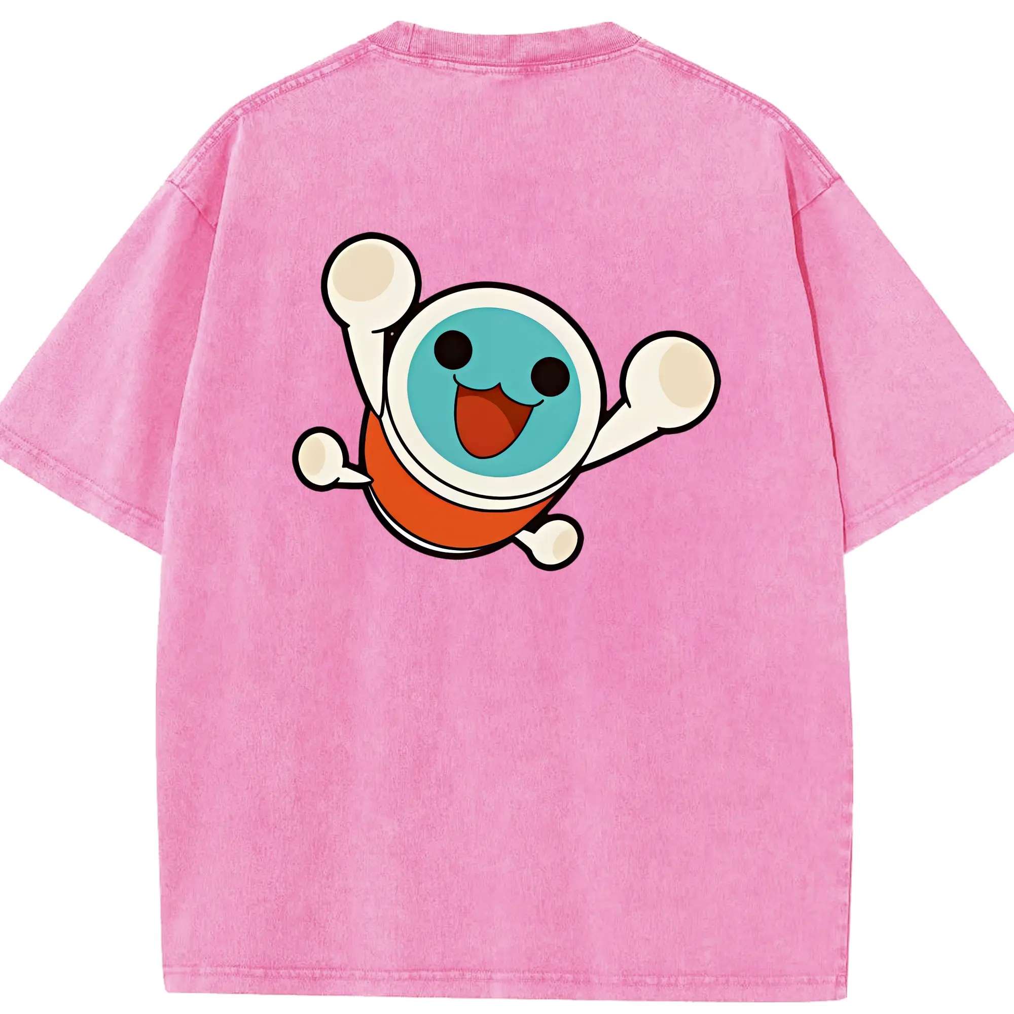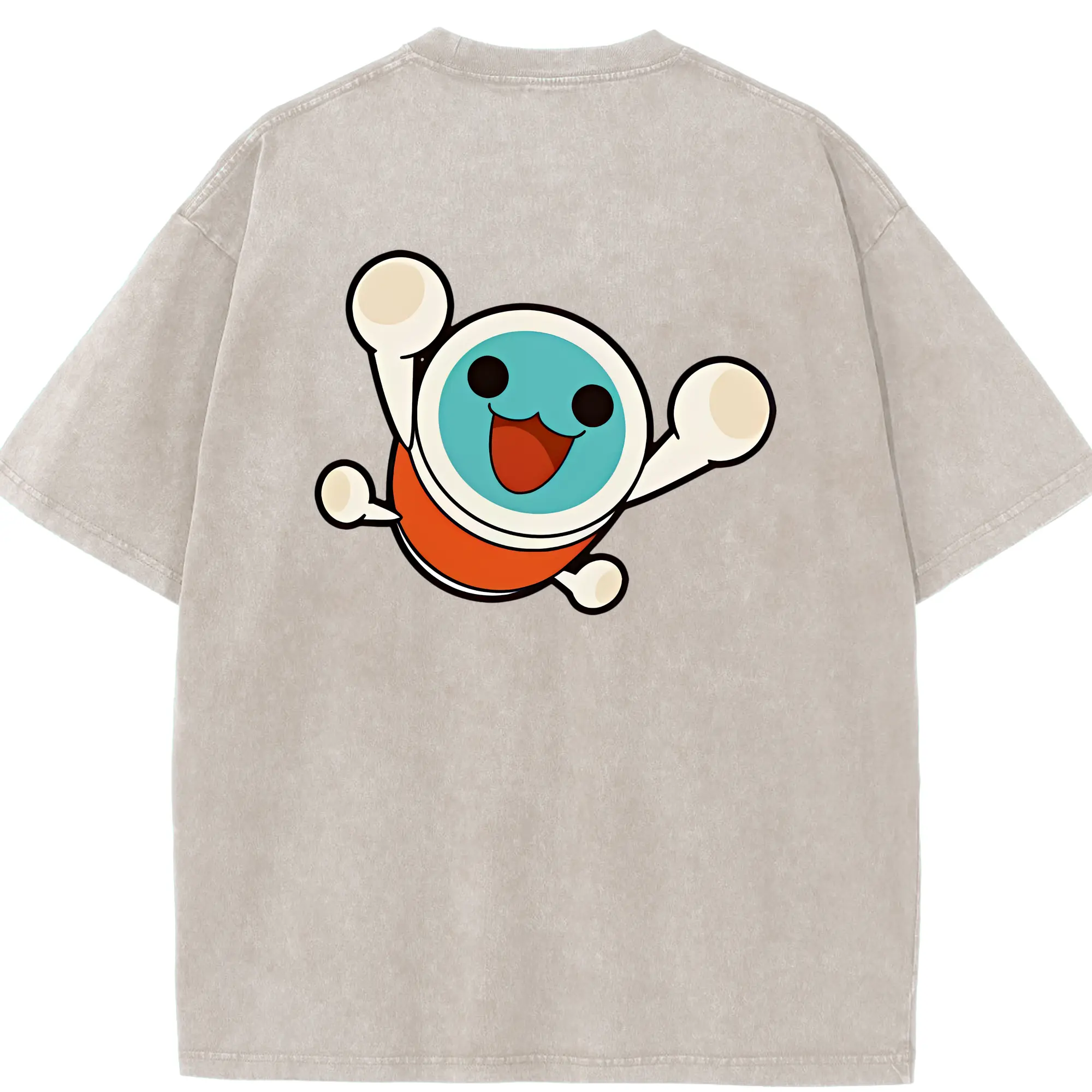 太鼓の達人 グッズ - 綿100% ヴィンテージ風 半袖Tシャツ ・ フロントプリント ・ 柔らか肌触り ・ 通気性 快適 ・ スポーツ カジュアル 外出用
