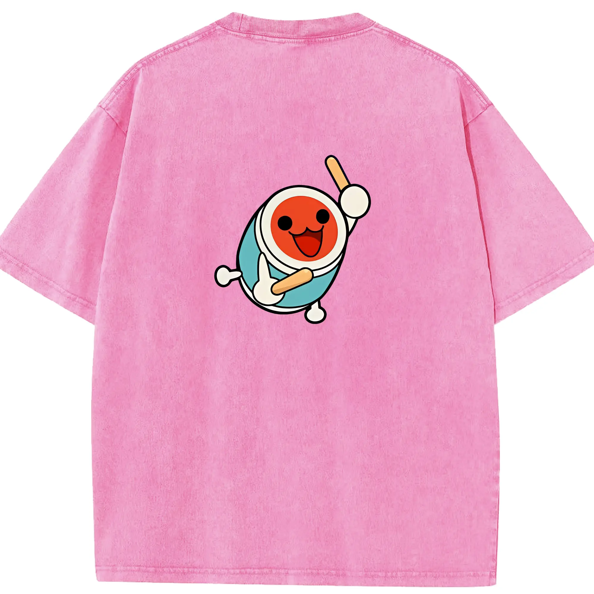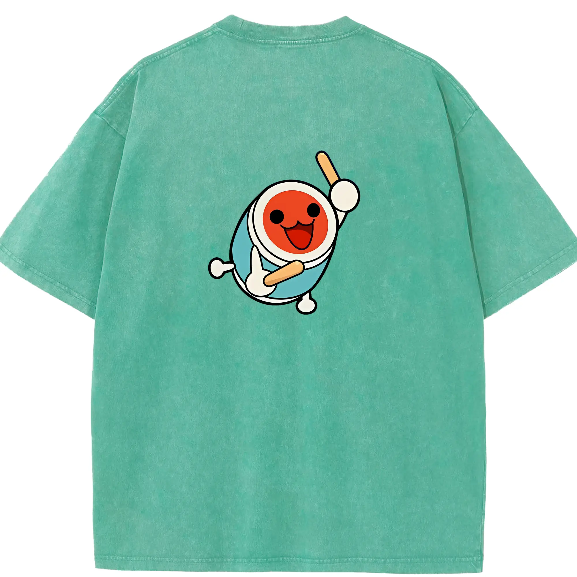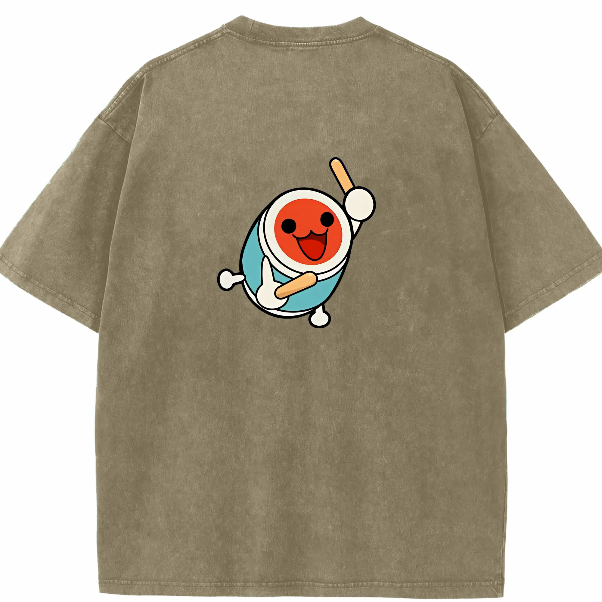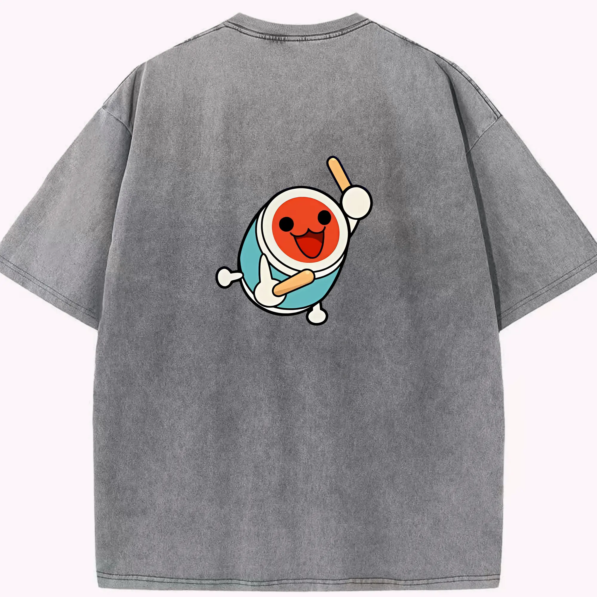 太鼓の達人 グッズ - 綿100% ヴィンテージ風 半袖Tシャツ ・ フロントプリント ・ 柔らか肌触り ・ 通気性 快適 ・ スポーツ カジュアル 外出用
