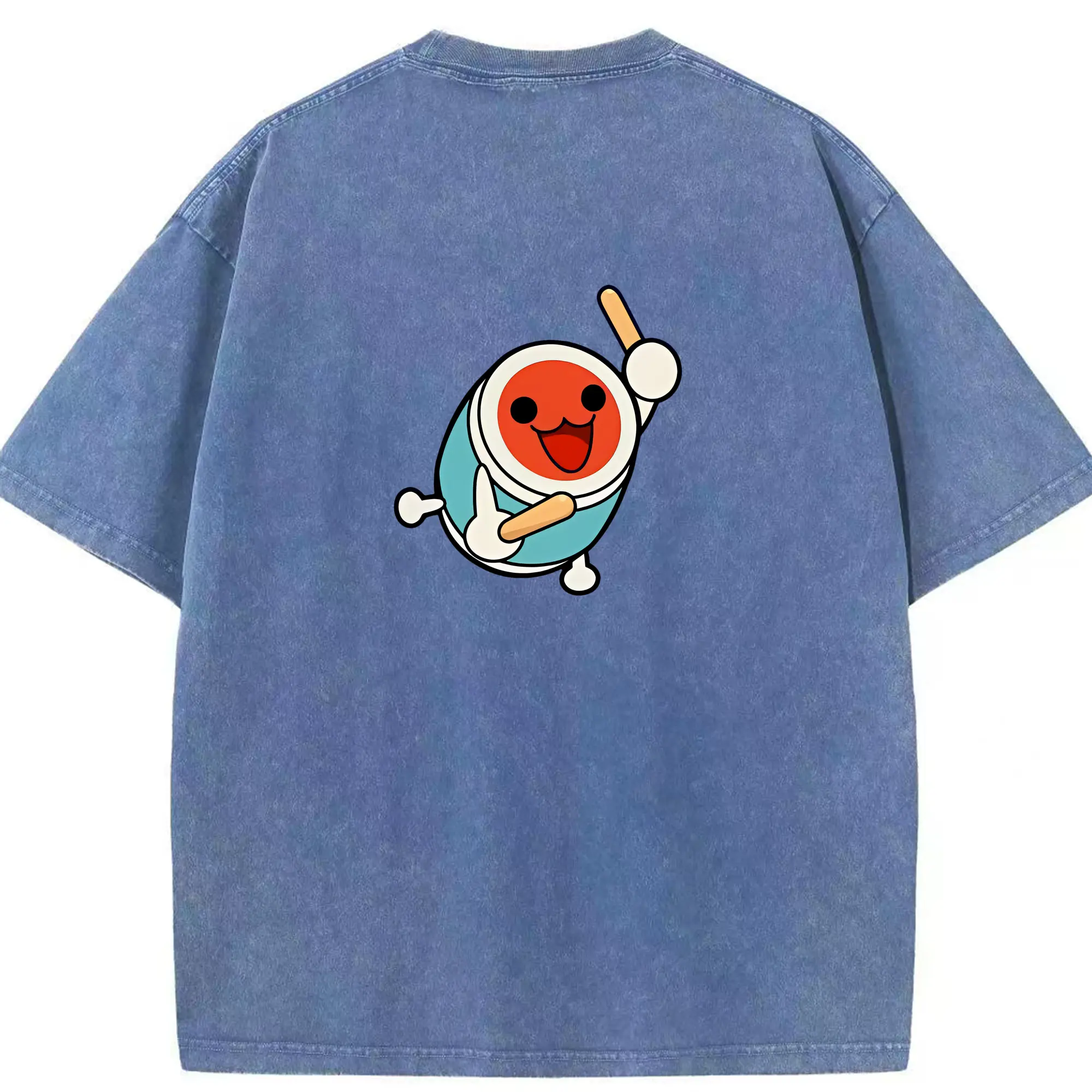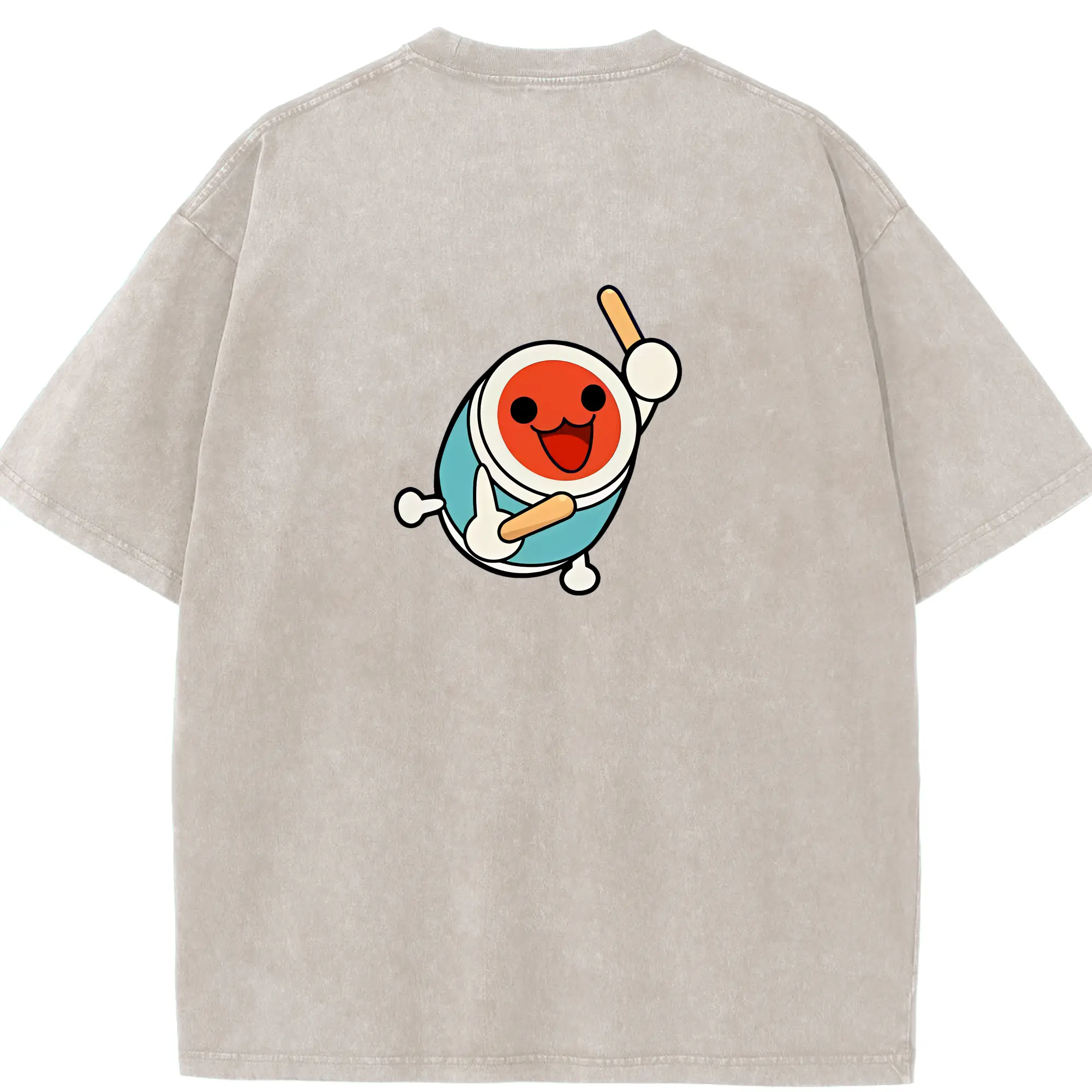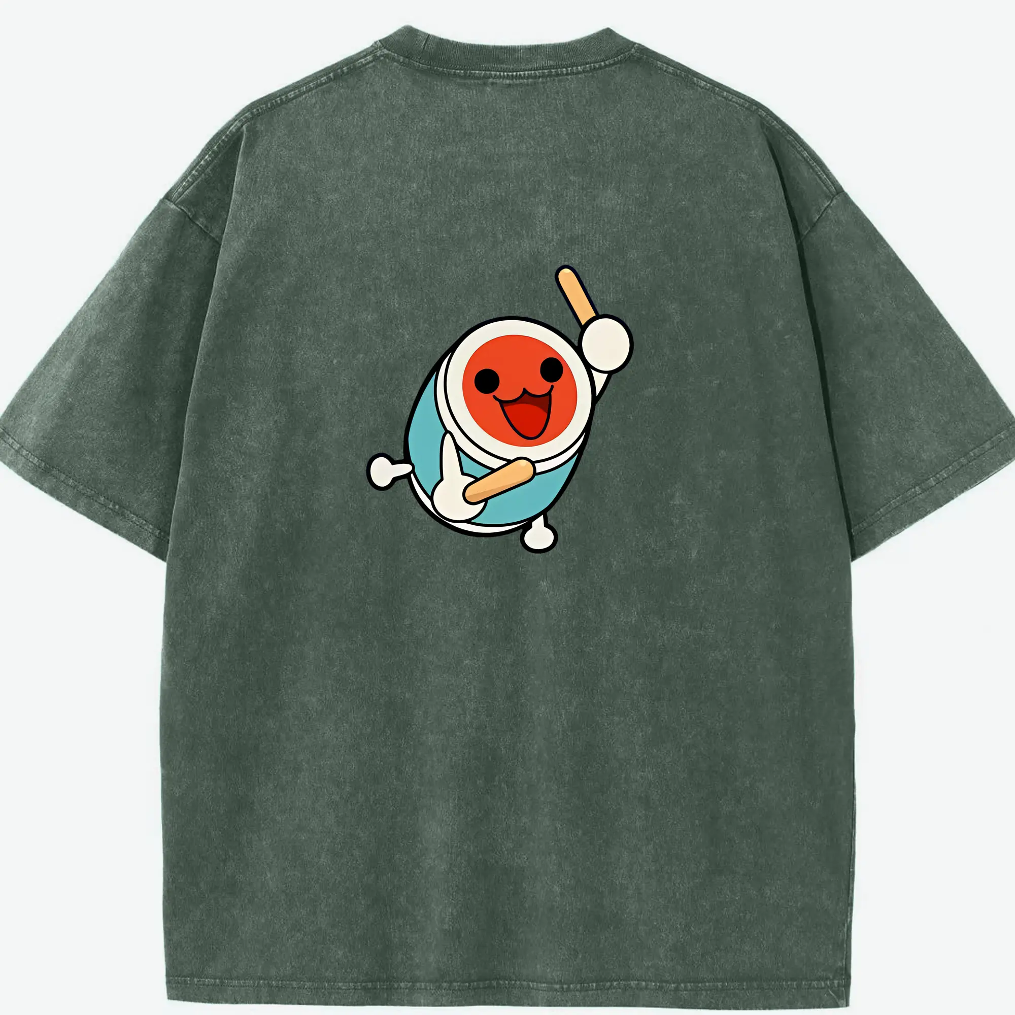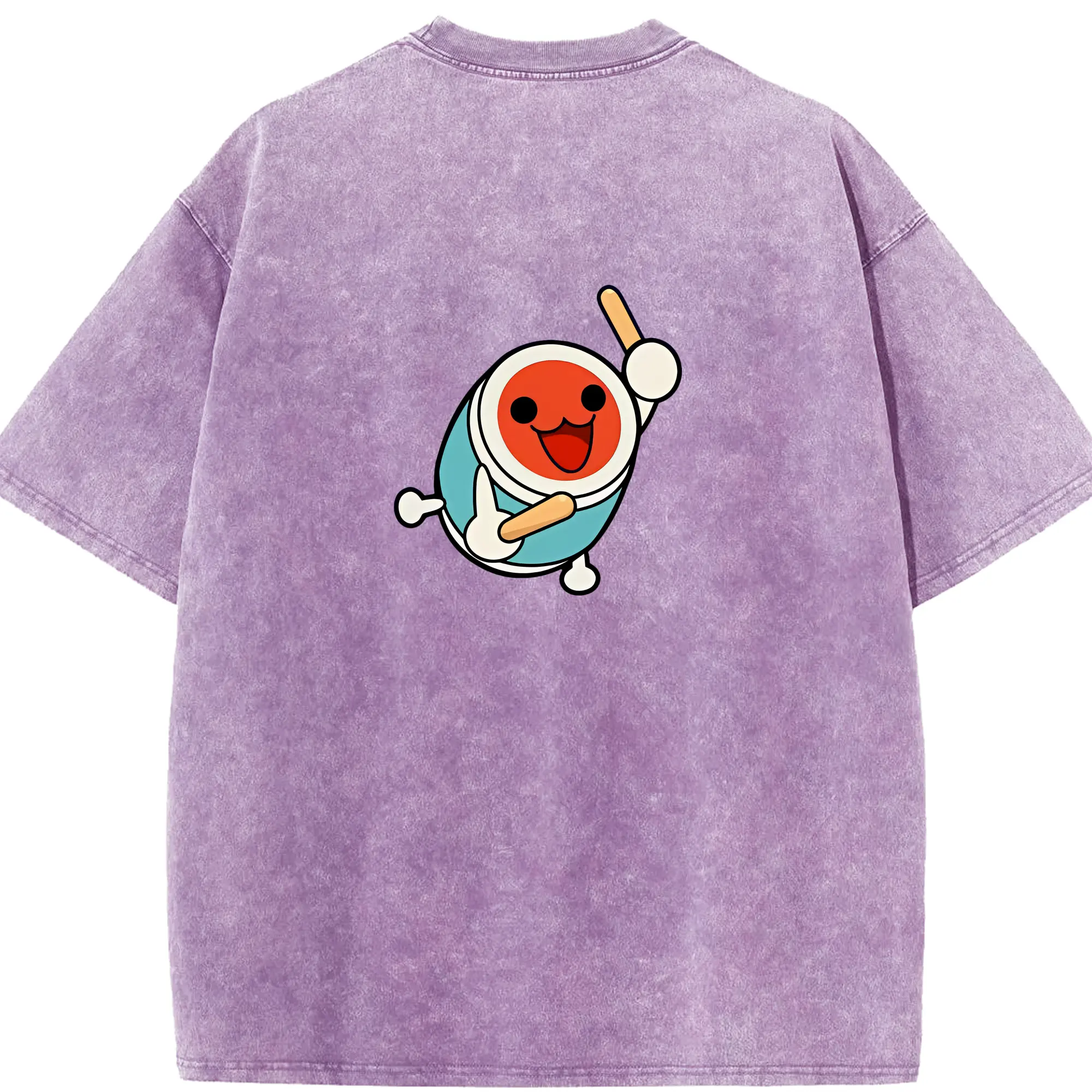 太鼓の達人 グッズ - 綿100% ヴィンテージ風 半袖Tシャツ ・ フロントプリント ・ 柔らか肌触り ・ 通気性 快適 ・ スポーツ カジュアル 外出用