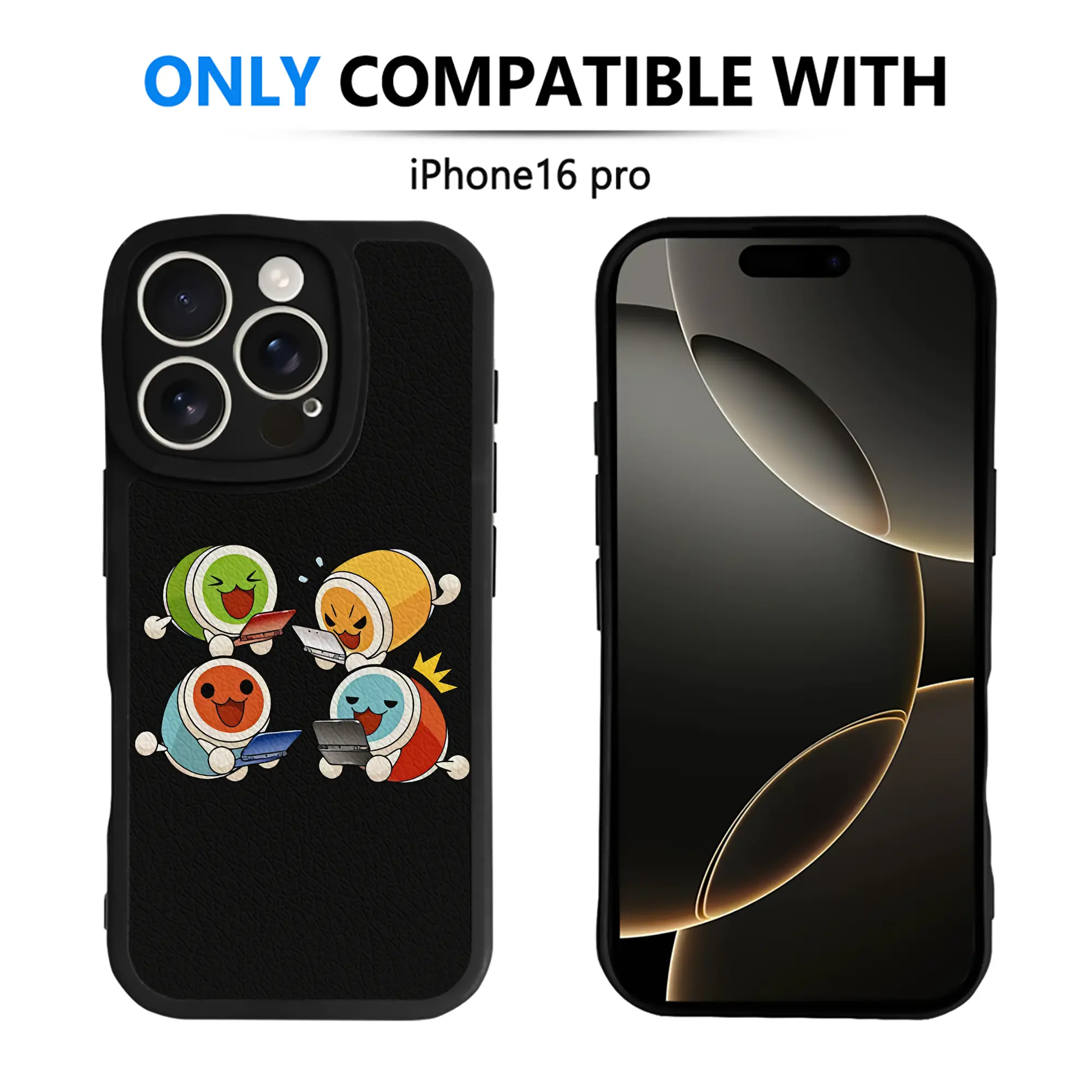 太鼓の達人 グッズ - IPhone 16シリーズ対応 ・ シリコンスマホケース ・ レザー調 ・ 高精度フィット ・ 耐衝撃 ・ ワイヤレス充電対応 ・ 精密カット