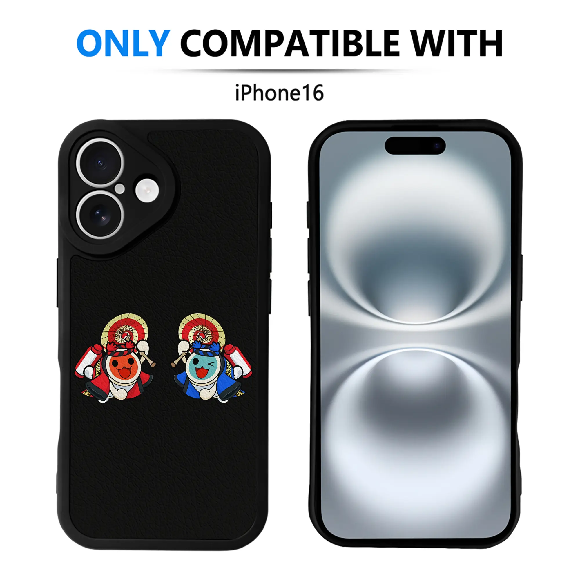 太鼓の達人 グッズ - IPhone 16シリーズ対応 ・ シリコンスマホケース ・ レザー調 ・ 高精度フィット ・ 耐衝撃 ・ ワイヤレス充電対応 ・ 精密カット