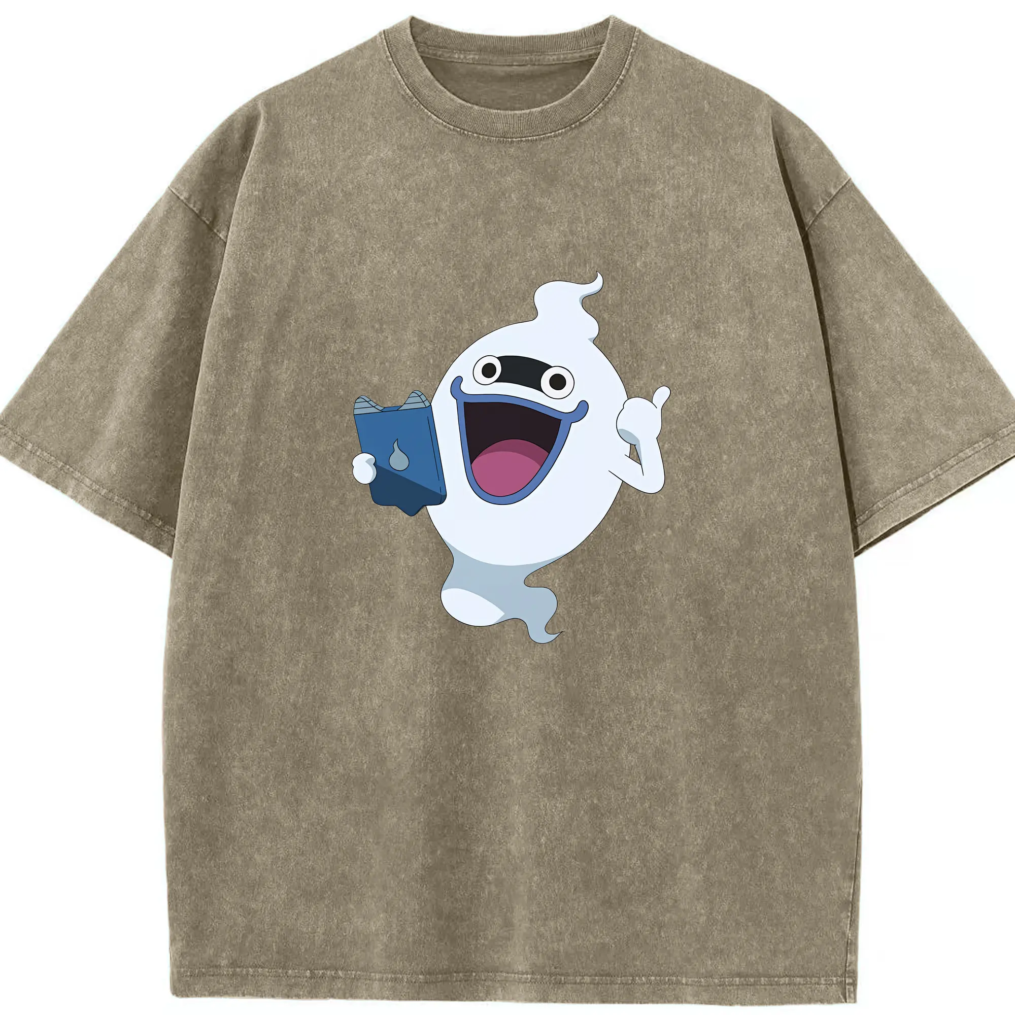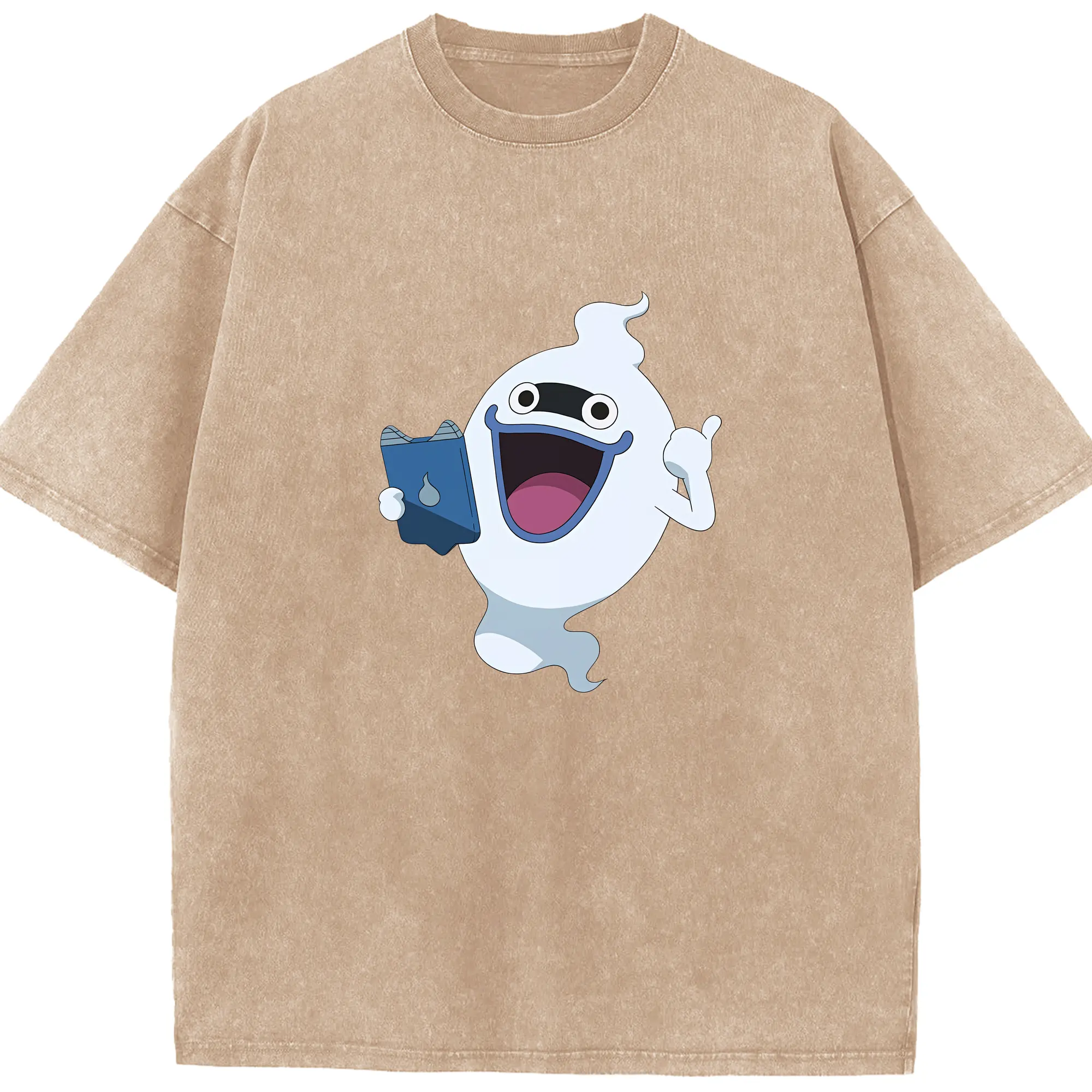 妖怪ウォッチ グッズ,ウィスパー - 綿100% ヴィンテージ風 半袖Tシャツ ・ 背面プリント ・ 柔らか肌触り ・ 通気性 快適 ・ スポーツ カジュアル 外出用