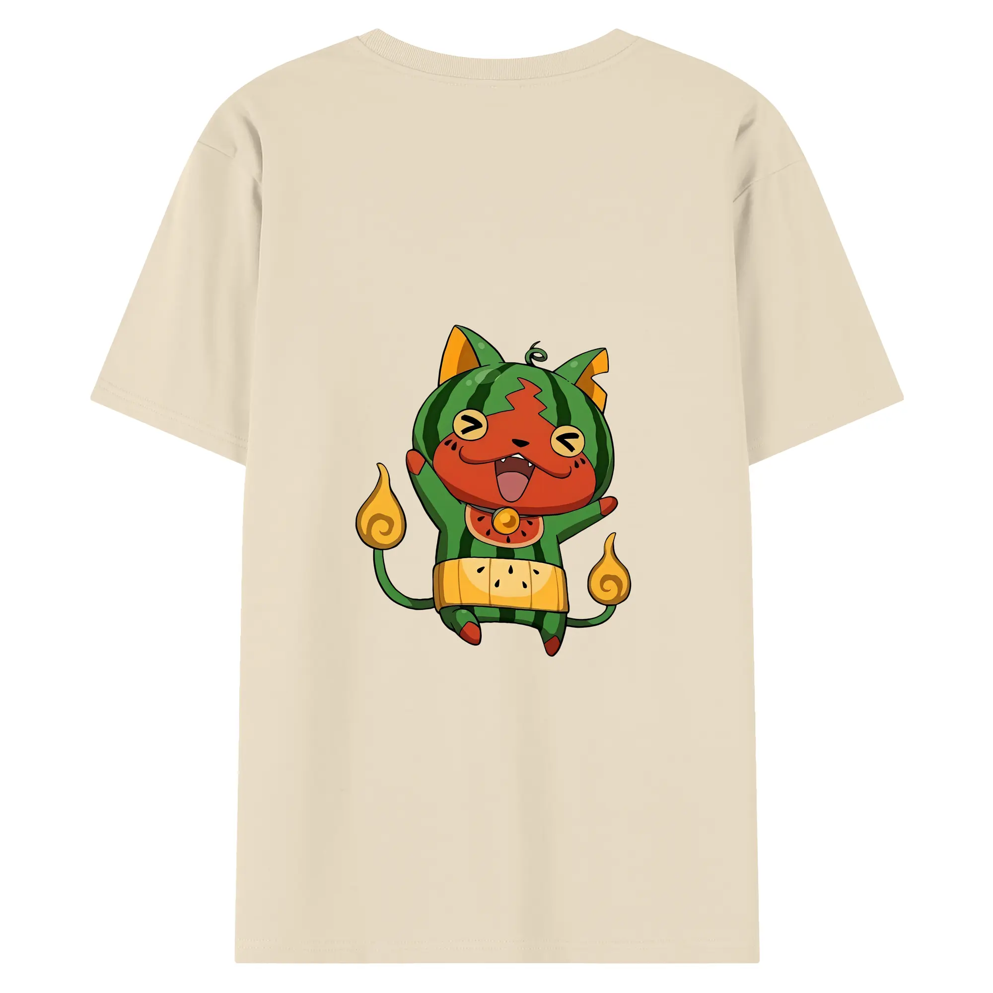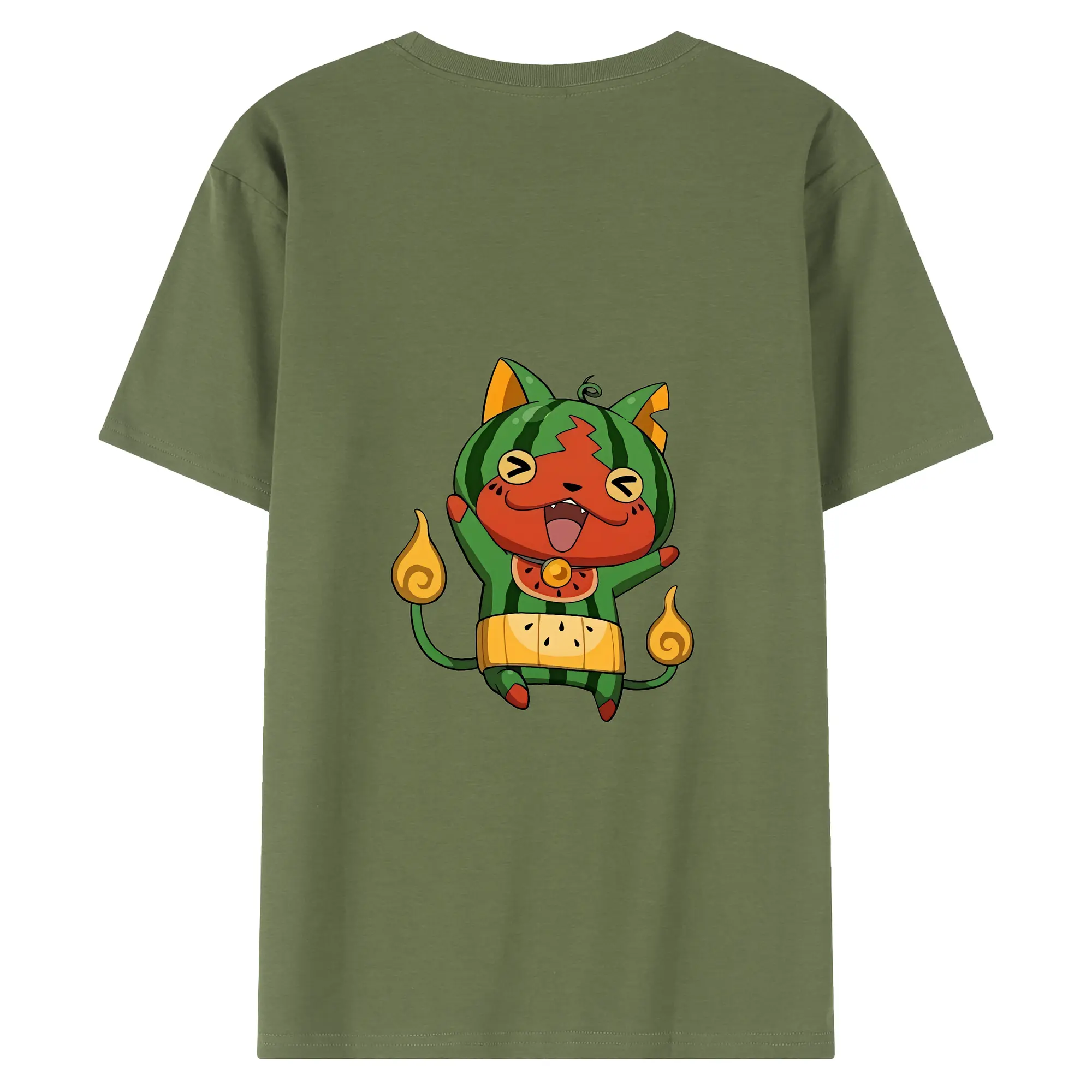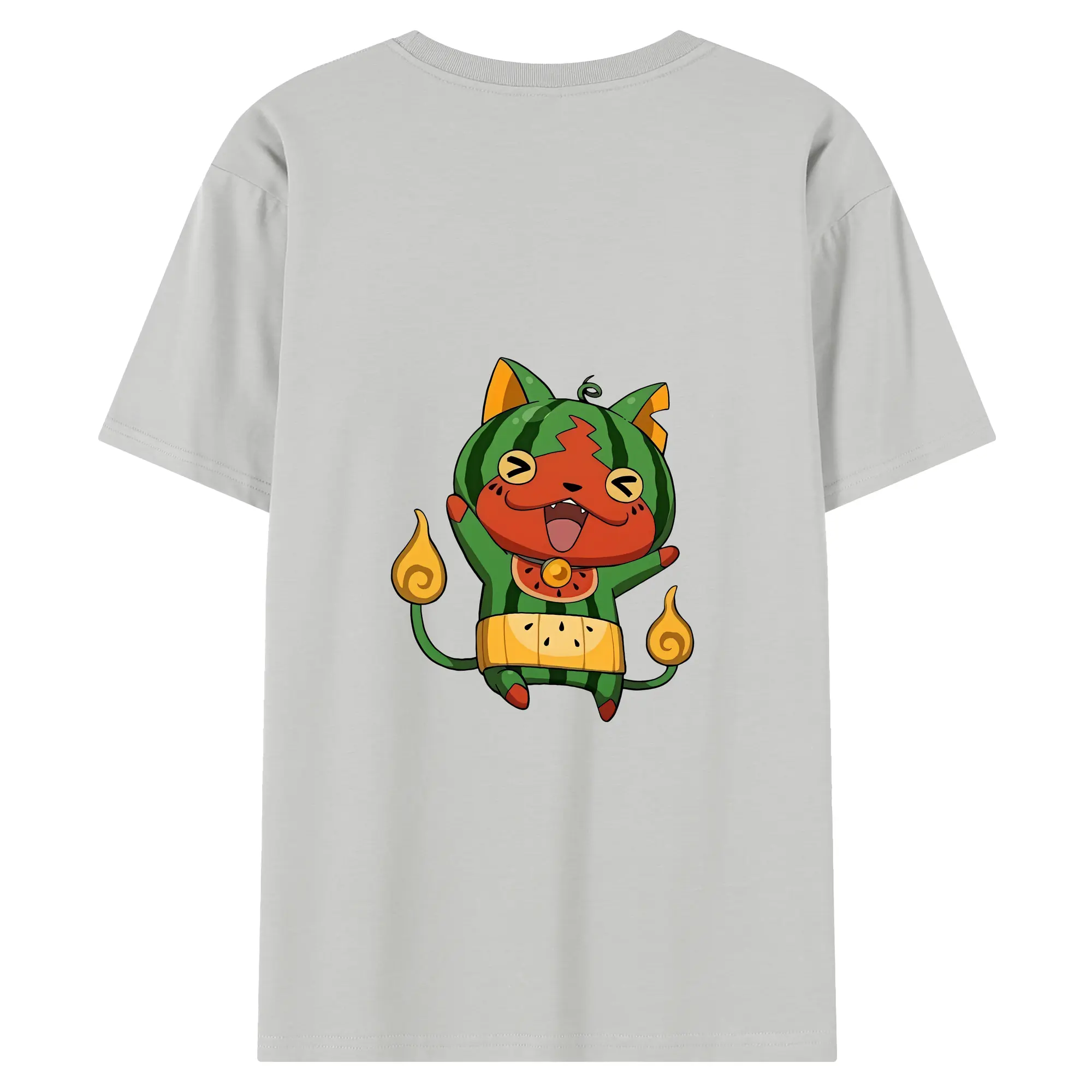 妖怪ウォッチ グッズ,ジバニャン - 綿100% ヴィンテージ風 半袖Tシャツ ・ 背面プリント ・ 柔らか肌触り ・ 通気性 快適 ・ スポーツ カジュアル 外出用