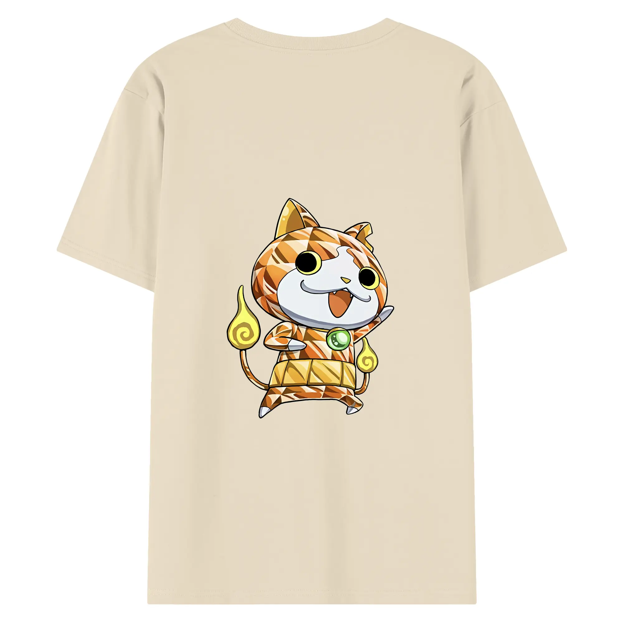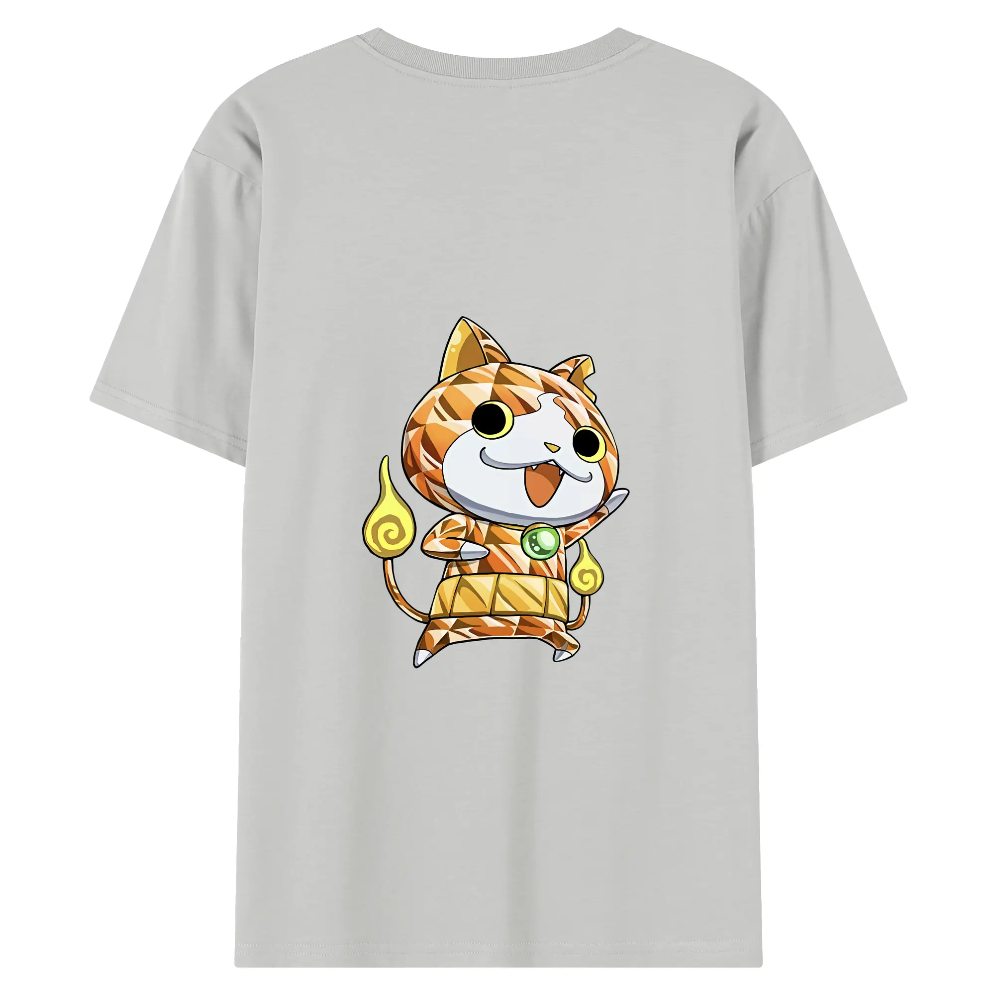 妖怪ウォッチ グッズ,ジバニャン - 綿100% ヴィンテージ風 半袖Tシャツ ・ 背面プリント ・ 柔らか肌触り ・ 通気性 快適 ・ スポーツ カジュアル 外出用