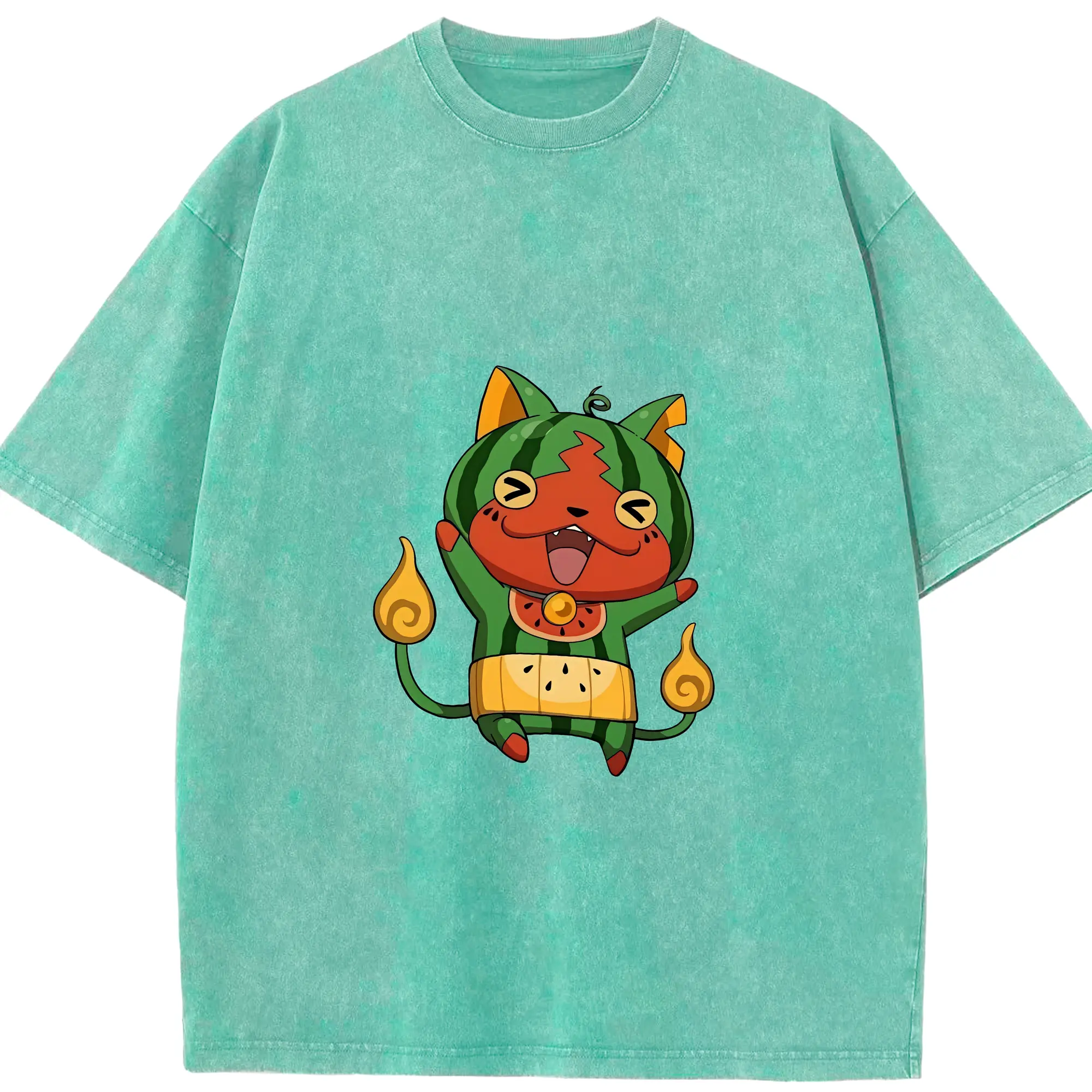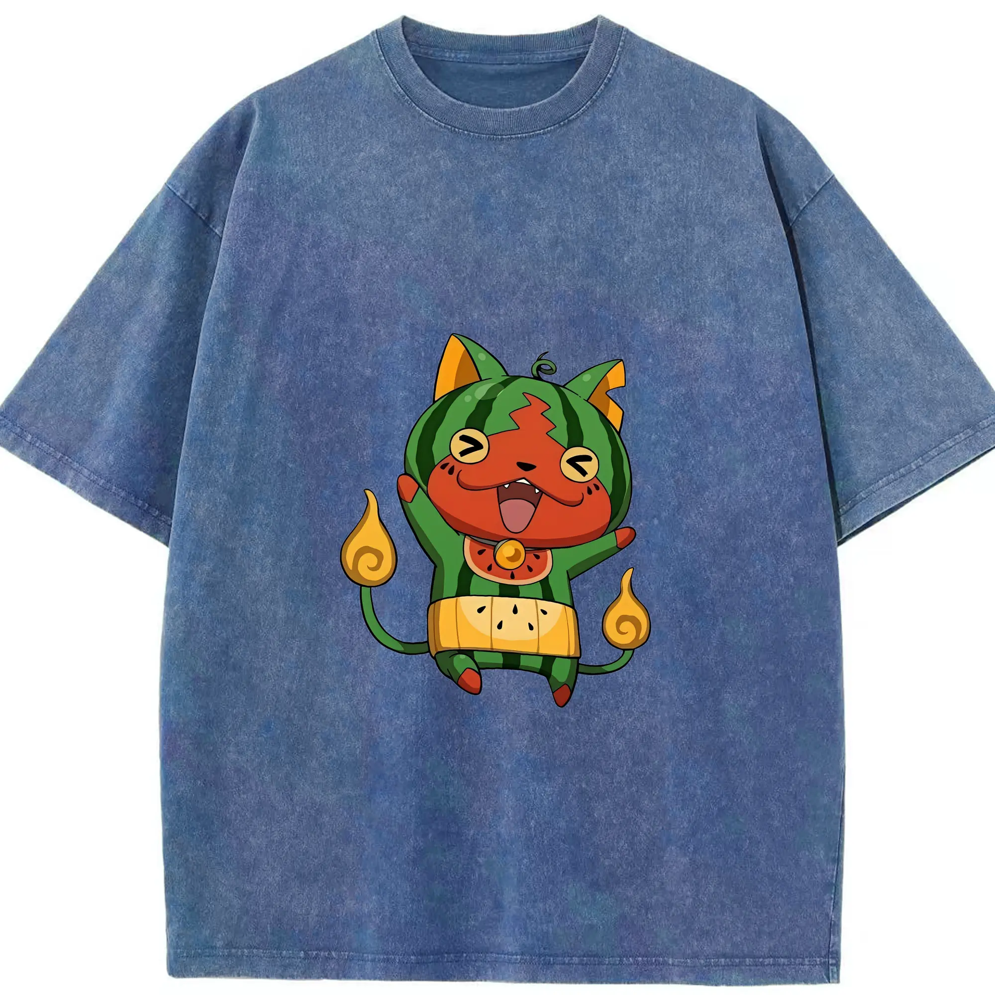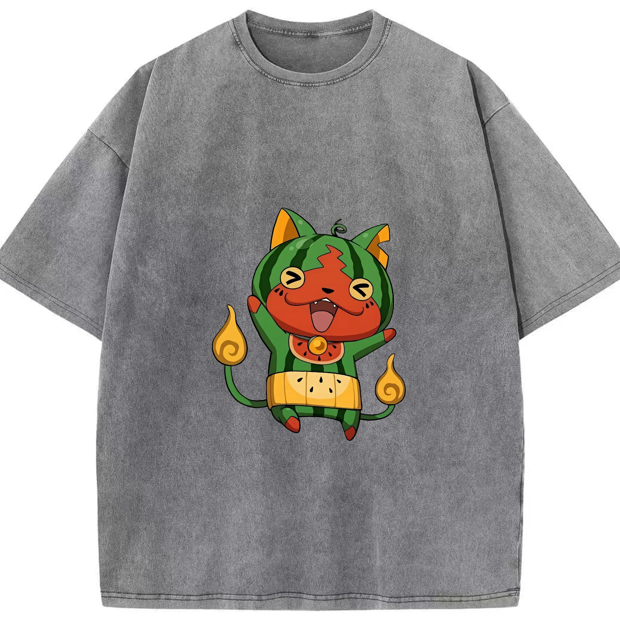 妖怪ウォッチ グッズ,ジバニャン - 綿100% ヴィンテージ風 半袖Tシャツ ・ 背面プリント ・ 柔らか肌触り ・ 通気性 快適 ・ スポーツ カジュアル 外出用
