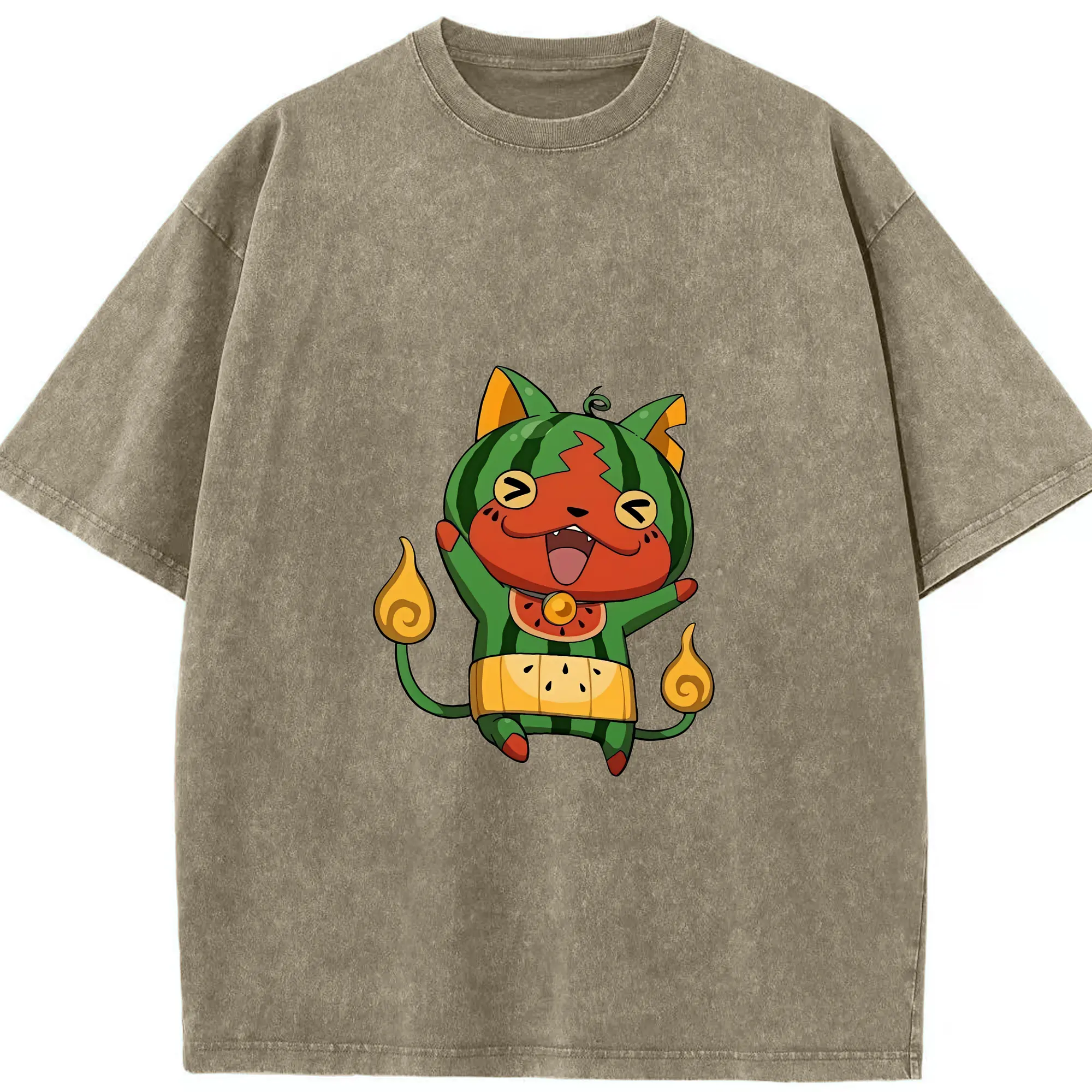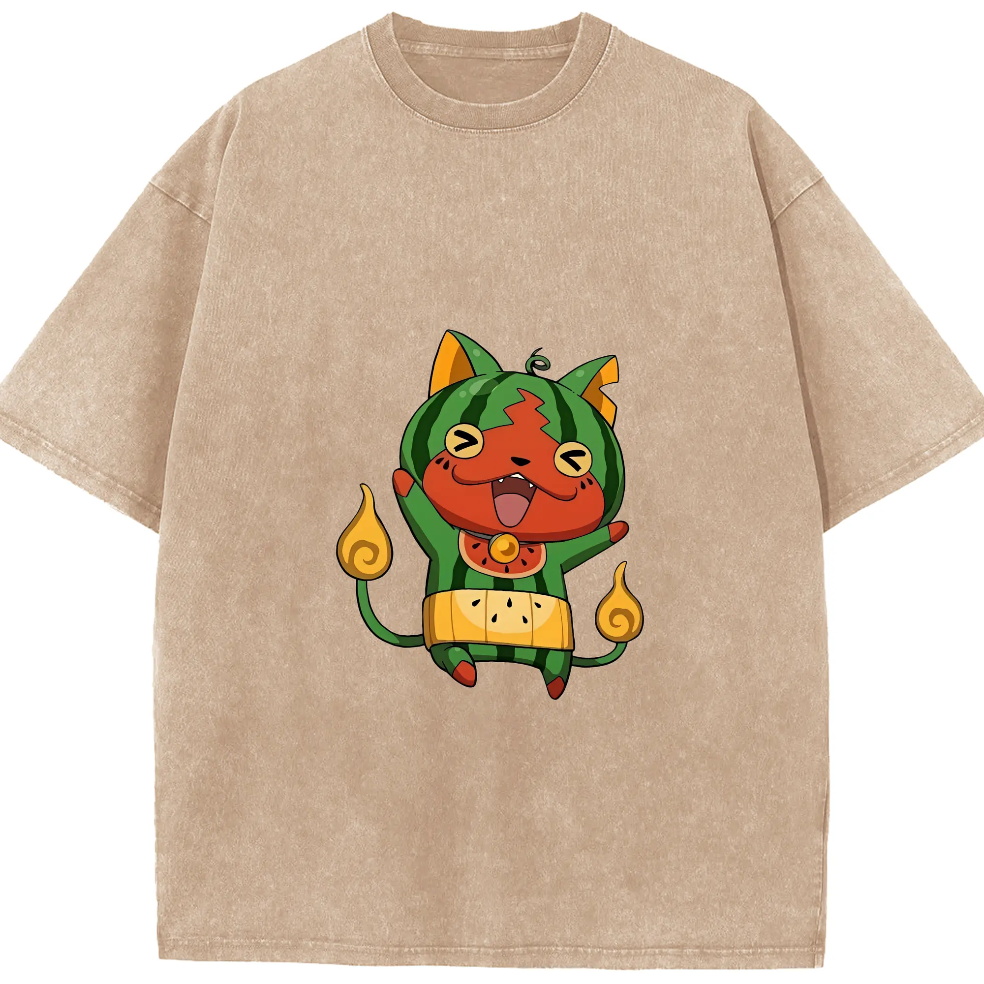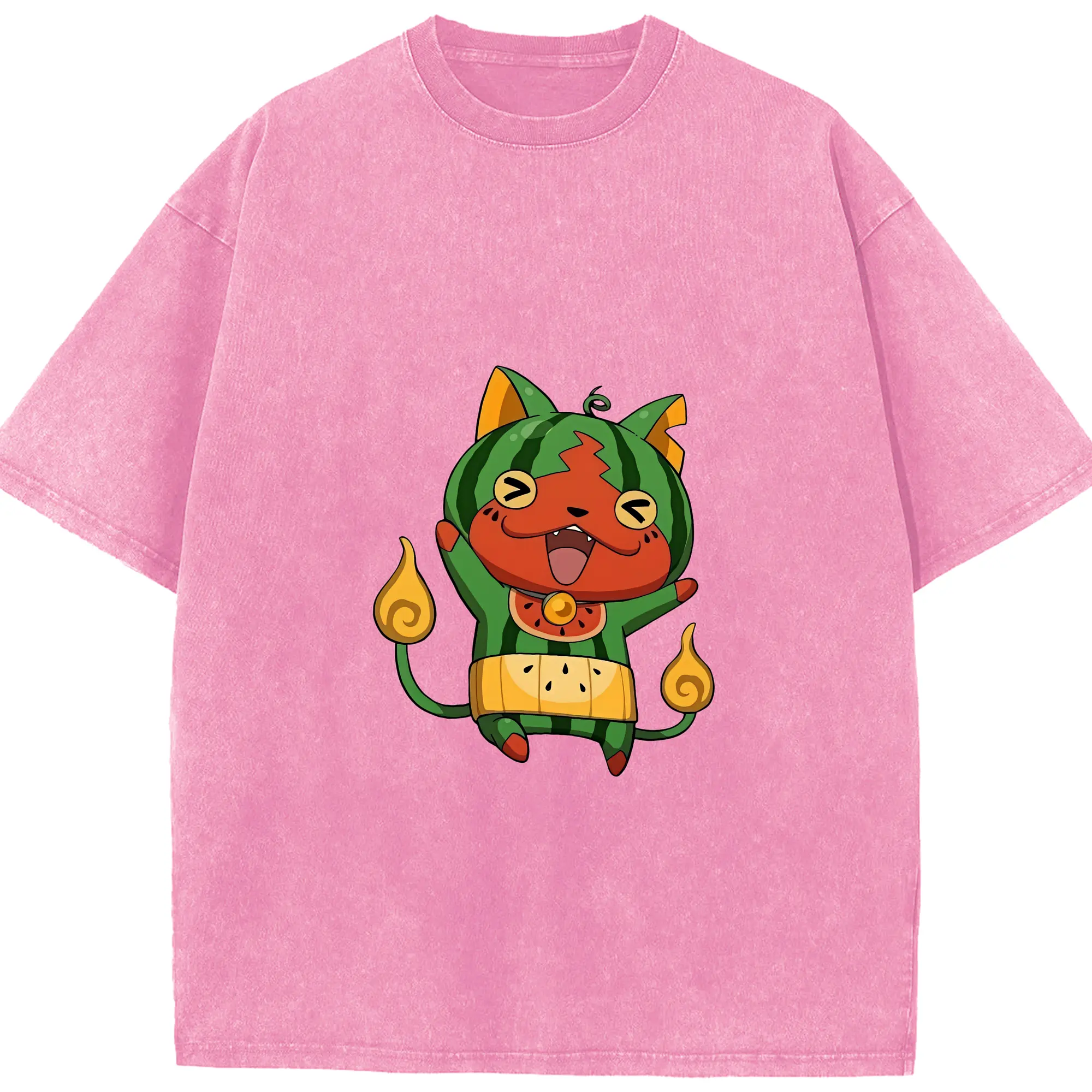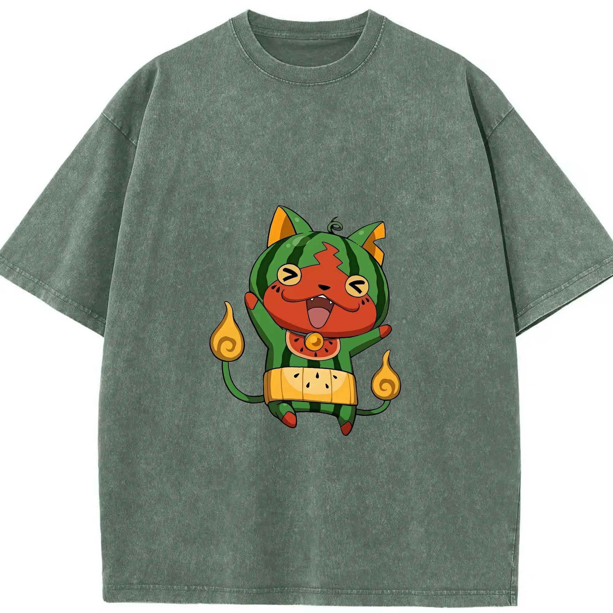 妖怪ウォッチ グッズ,ジバニャン - 綿100% ヴィンテージ風 半袖Tシャツ ・ 背面プリント ・ 柔らか肌触り ・ 通気性 快適 ・ スポーツ カジュアル 外出用